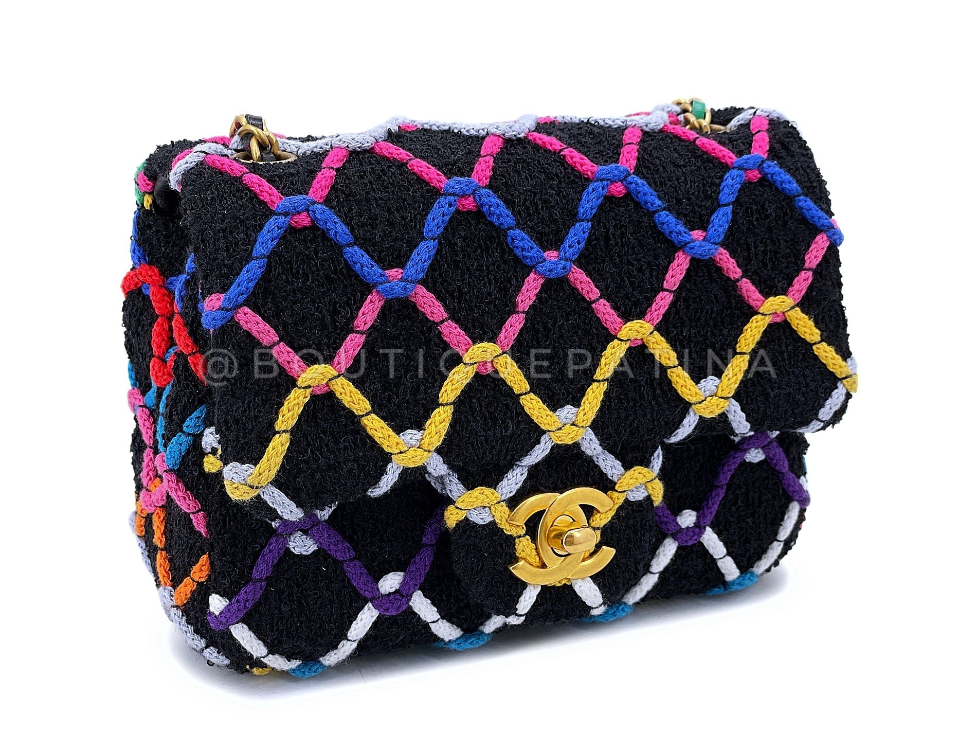 Chanel 2022 Rainbow Roped Square Mini Pearl Crush Flap Bag GHW