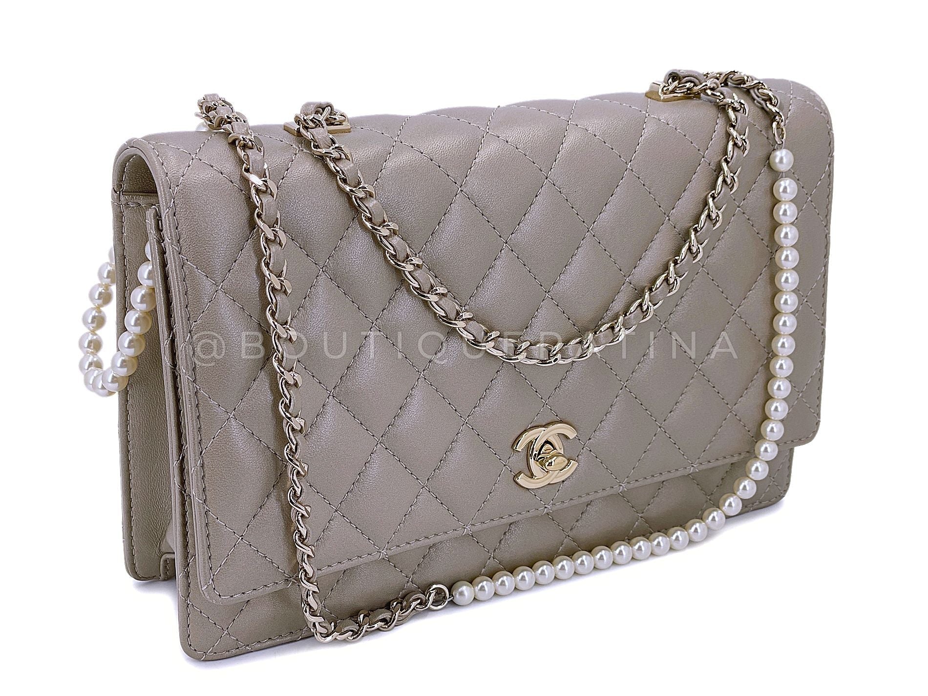 Chanel Metallic Taupe Fantasy Pearl Clutch on Chain Crossbody Flap Bag