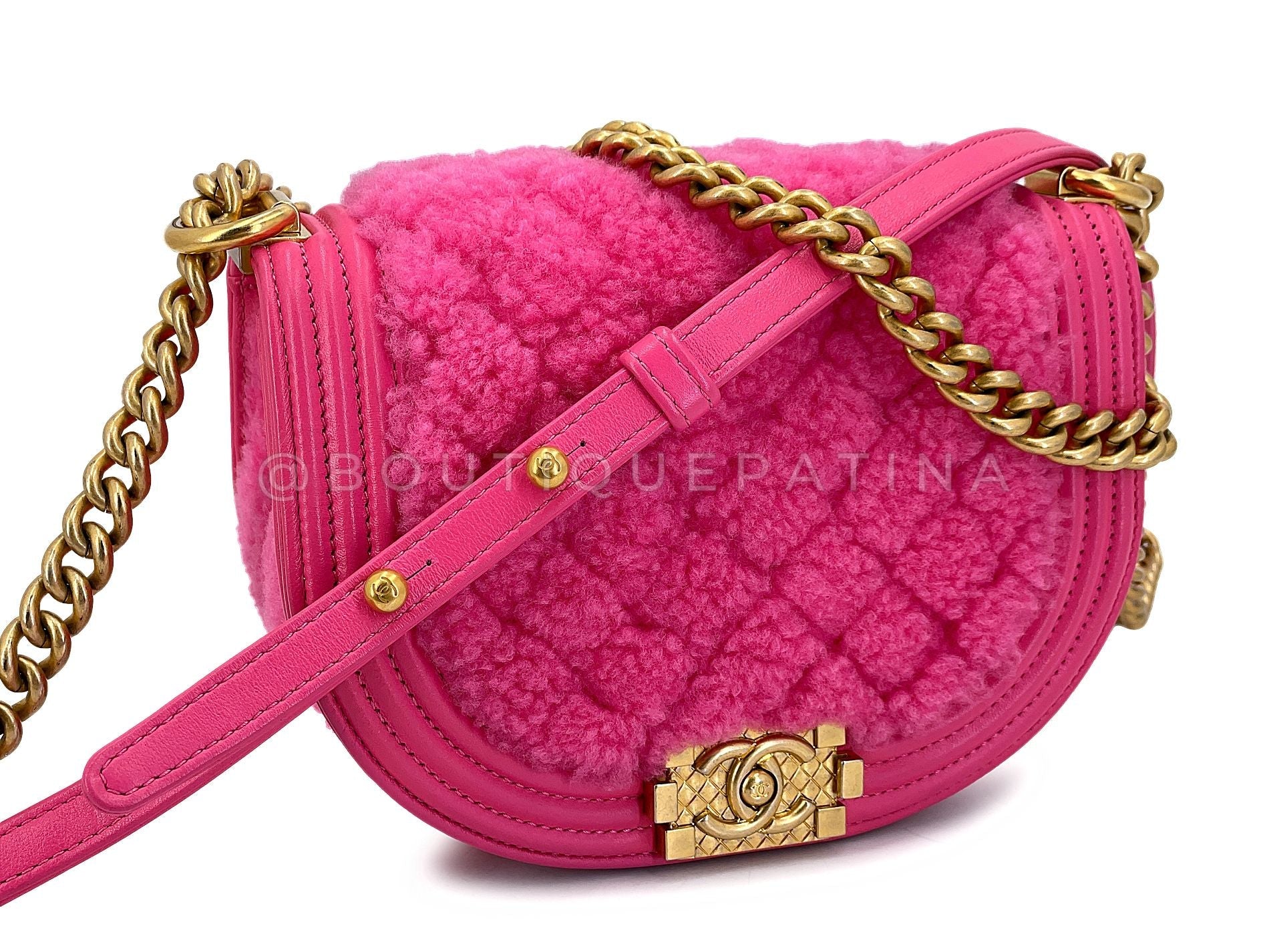 Chanel Fuchsia Pink Shearling Round Boy Flap Bag GHW EB1