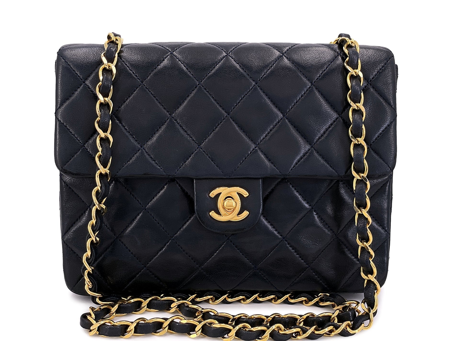 Chanel Vintage Black Mini Flap Bag Classic Lambskin 20cm 24k GHW