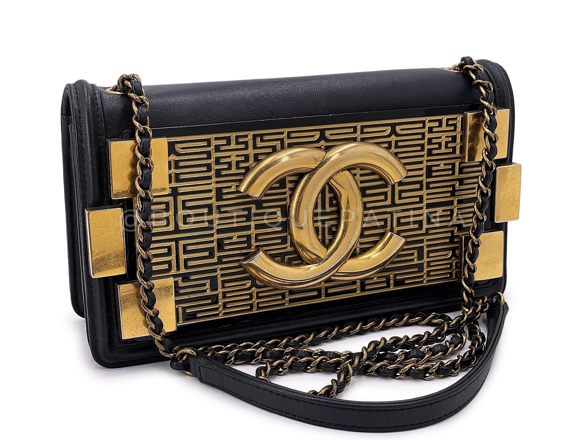 In Black lambskin leather and aged gold hardware. For 20 years, Boutique Patina has specialized in sourcing and curating the most pristine vintage and collectible accessories by searching closets around the world.