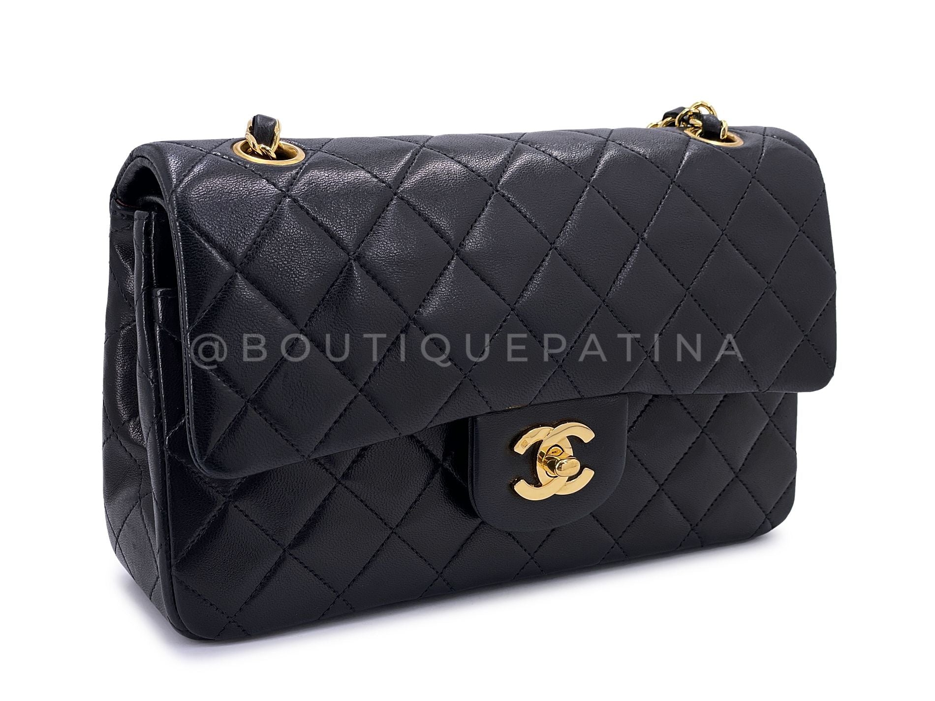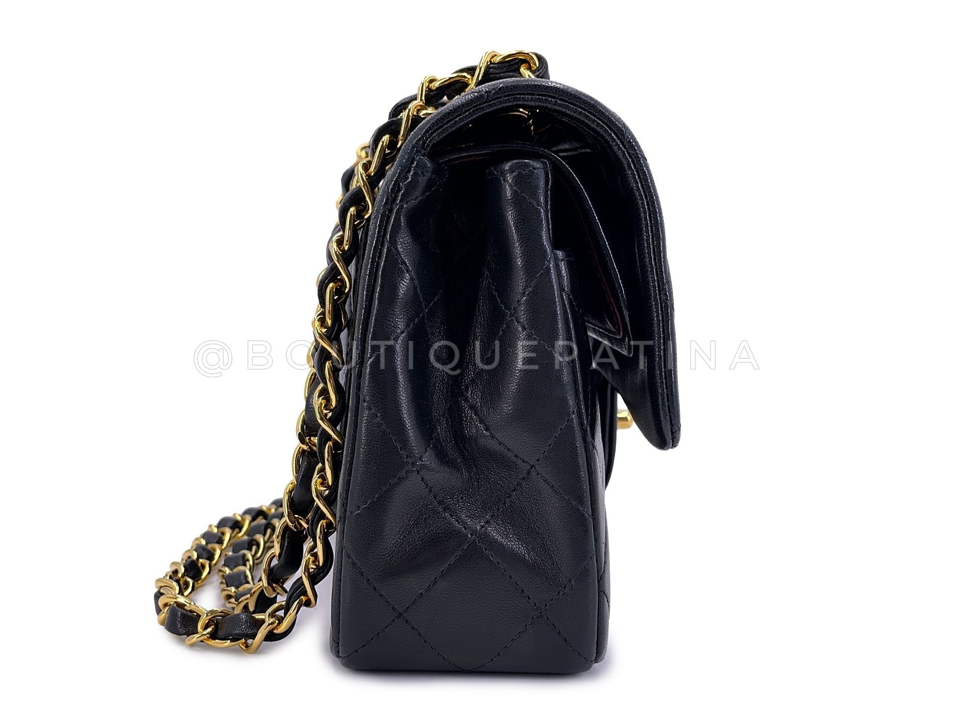 Chanel 1991 Vintage Black Small Classic Double Flap Bag 24k GHW Lambskin AGE