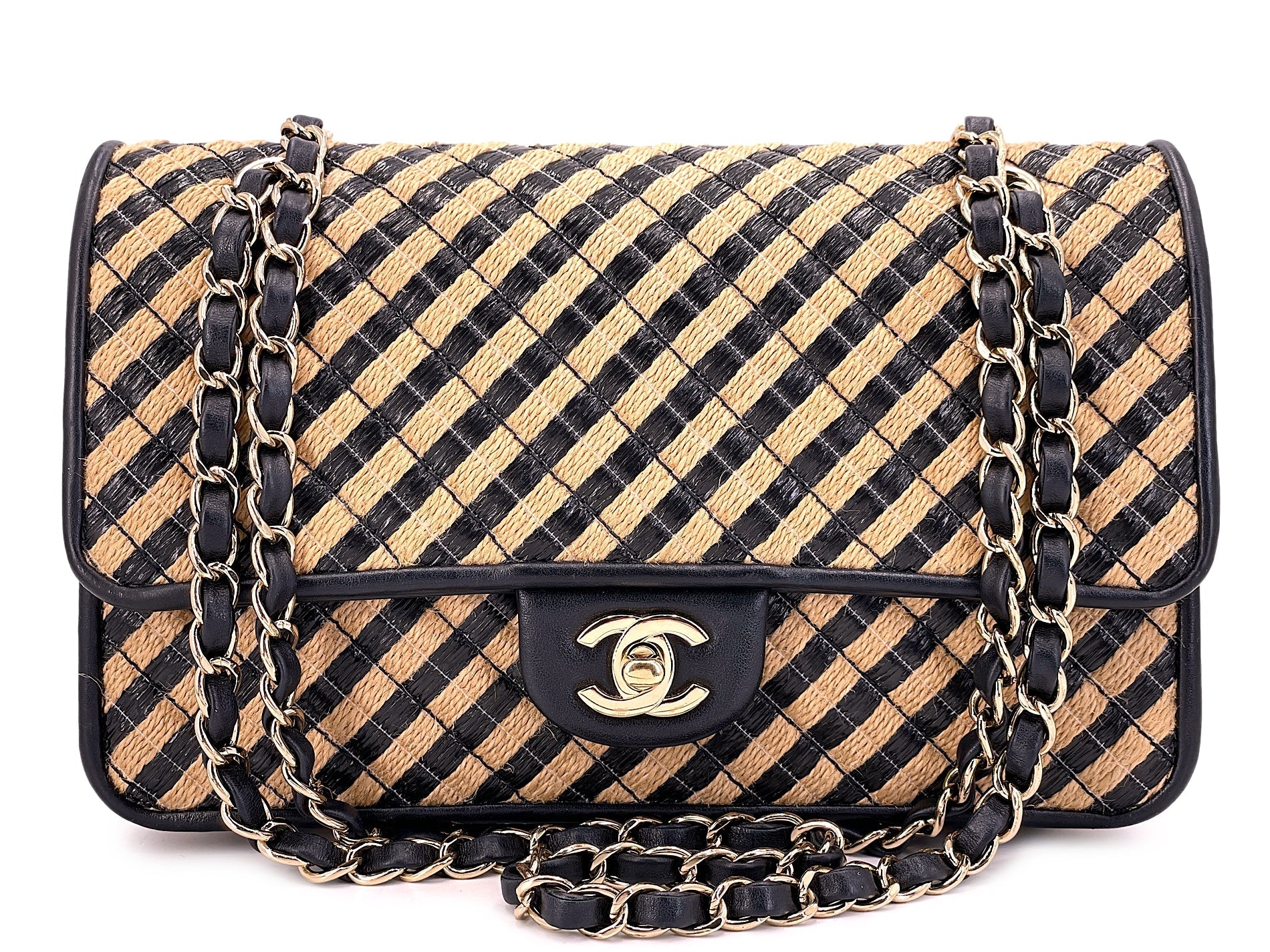 Chanel Straw Raffia Medium Urban Jungle Classic Flap Bag Black Beige GHW