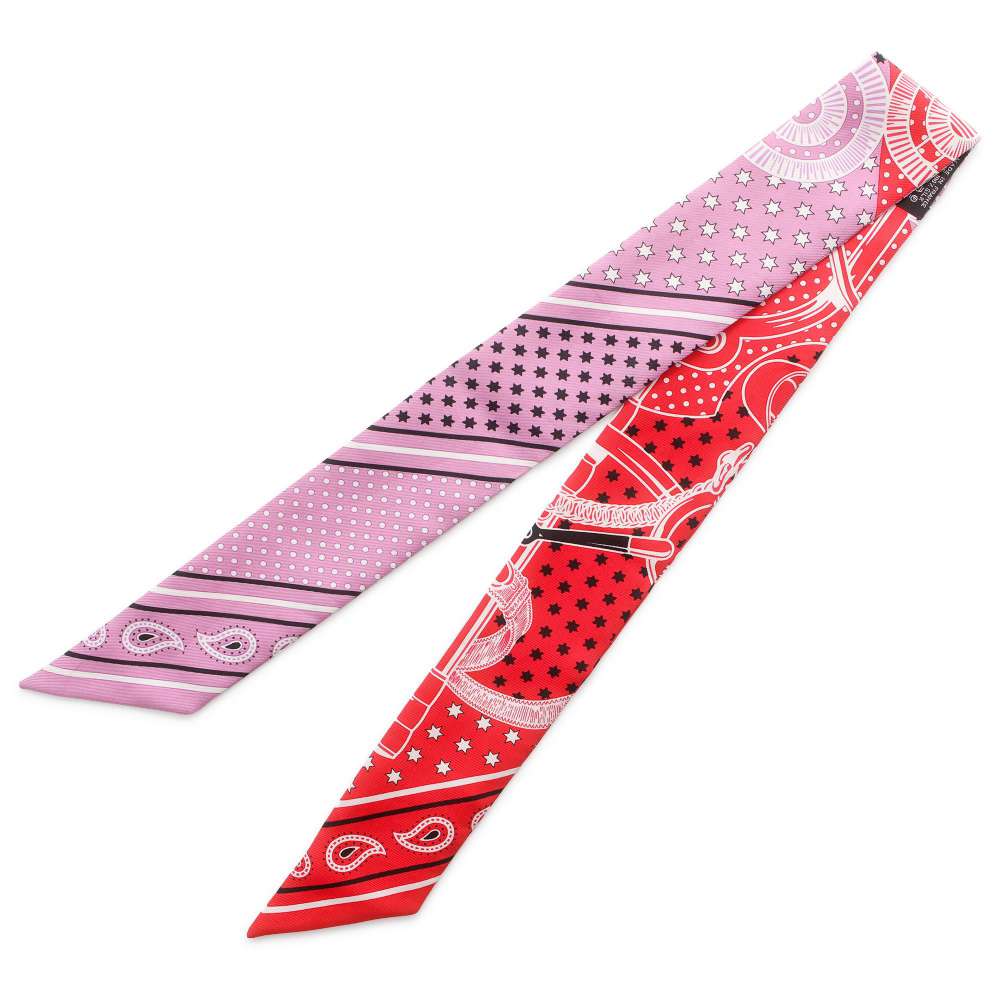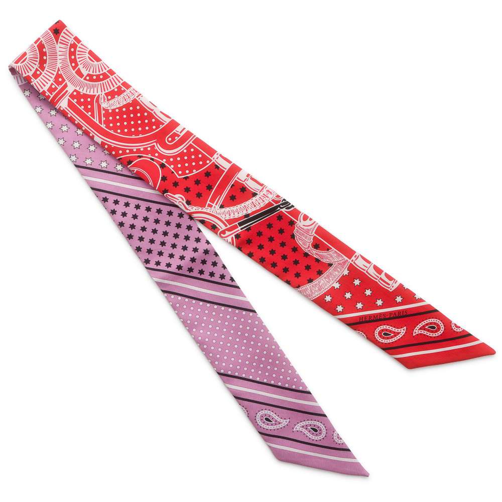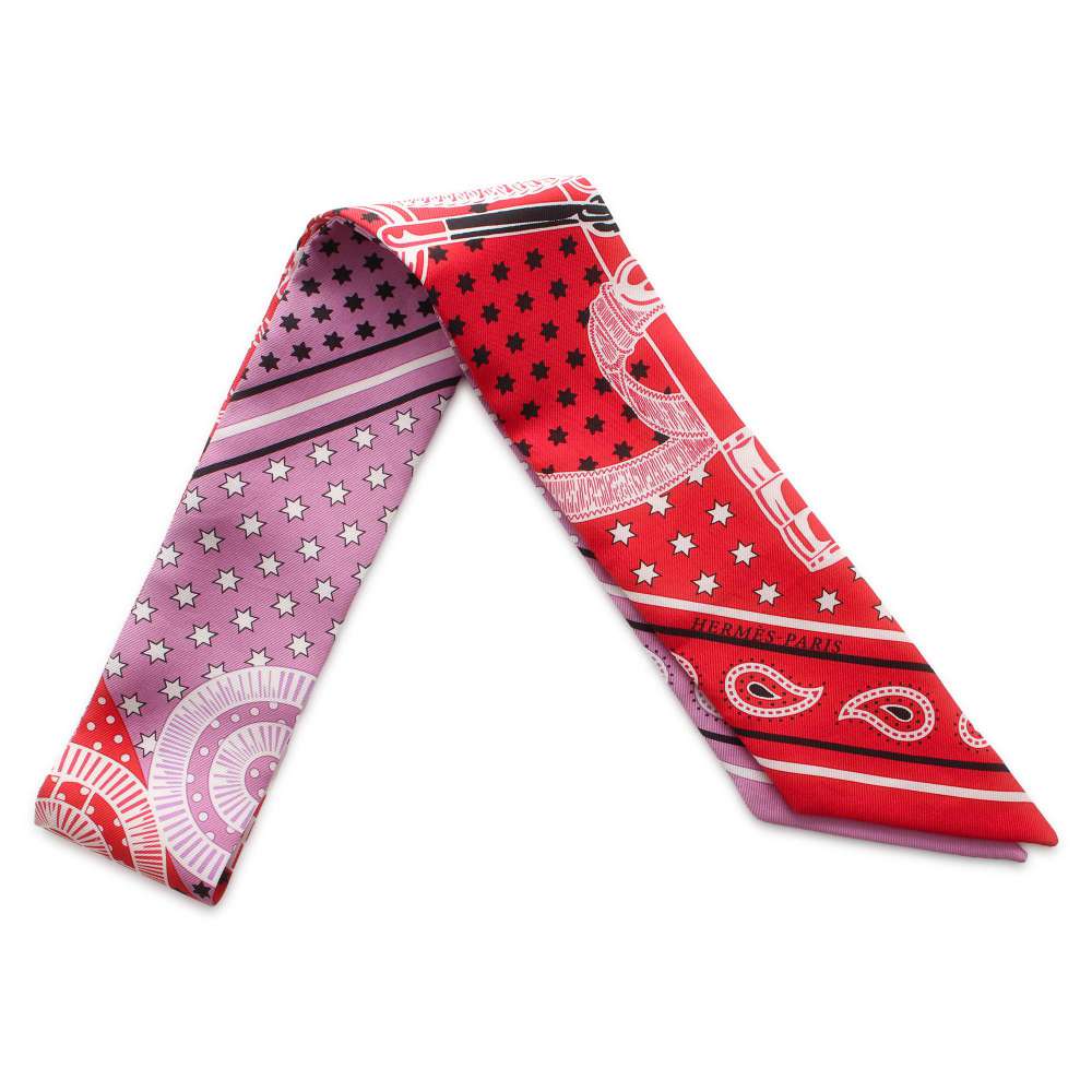 HERMES Twilly Apron d'Or Cut Parme/White/Rouge Silk100%