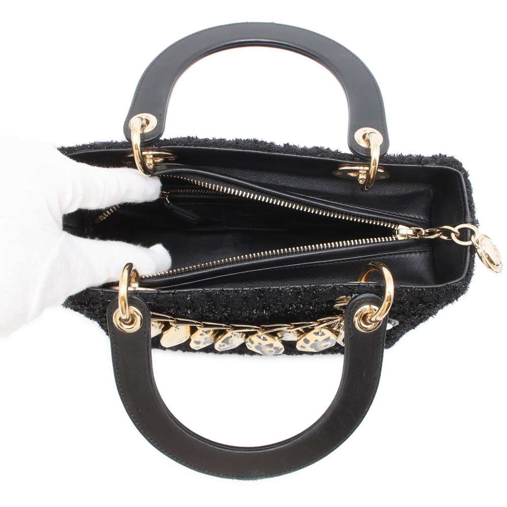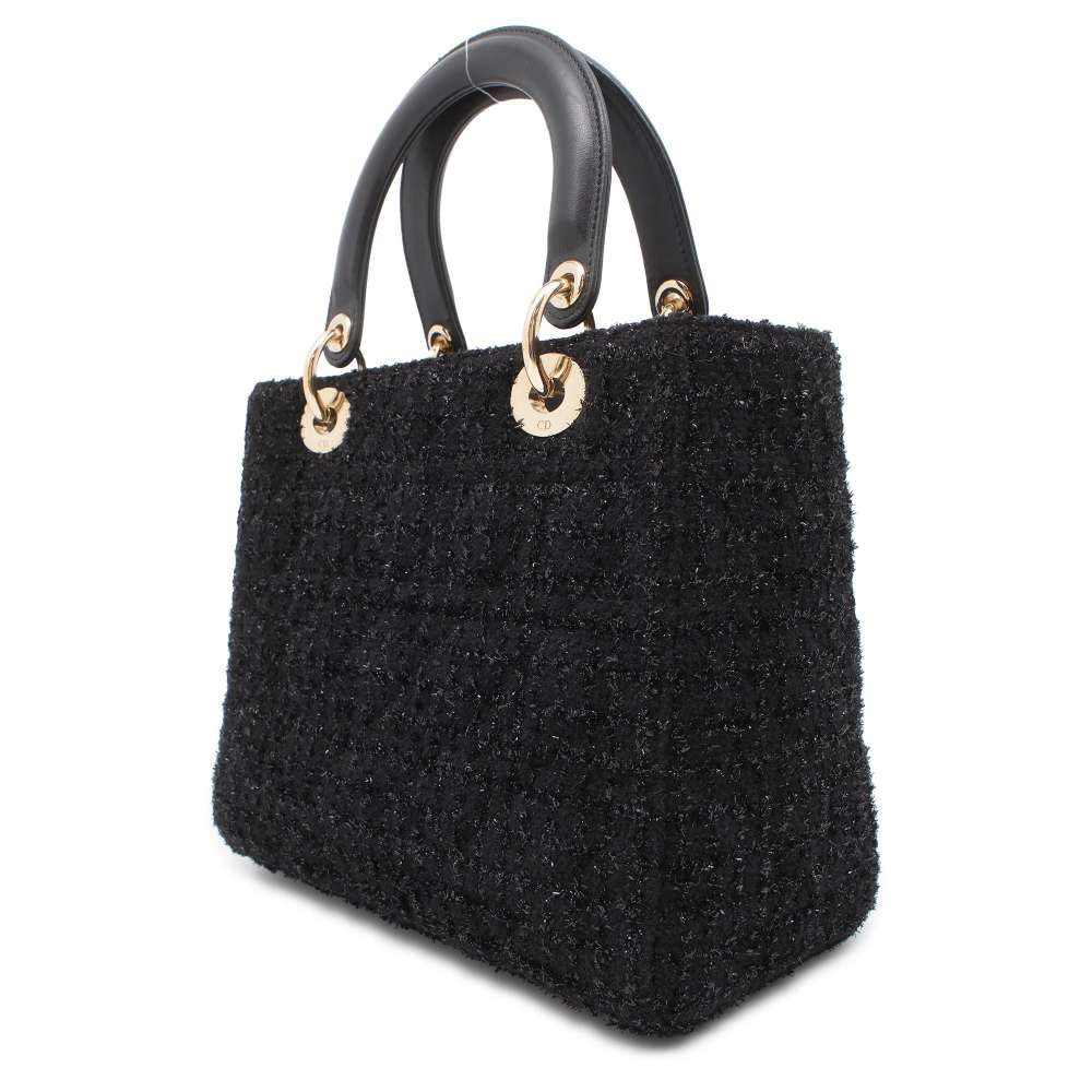 Dior Lady Dior Handbags Black Leather Tweed Size Medium