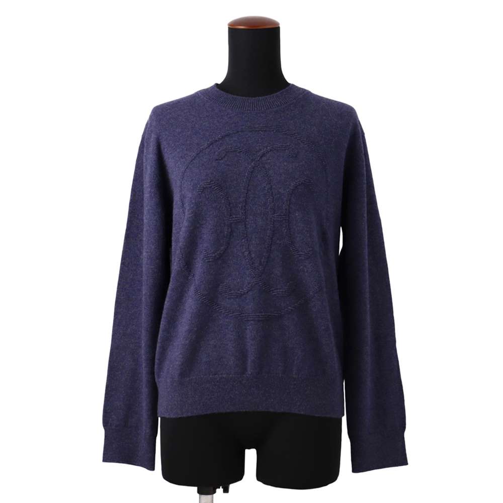 HERMES Sweater [H-Lift] Size 42 Blue Cashmere