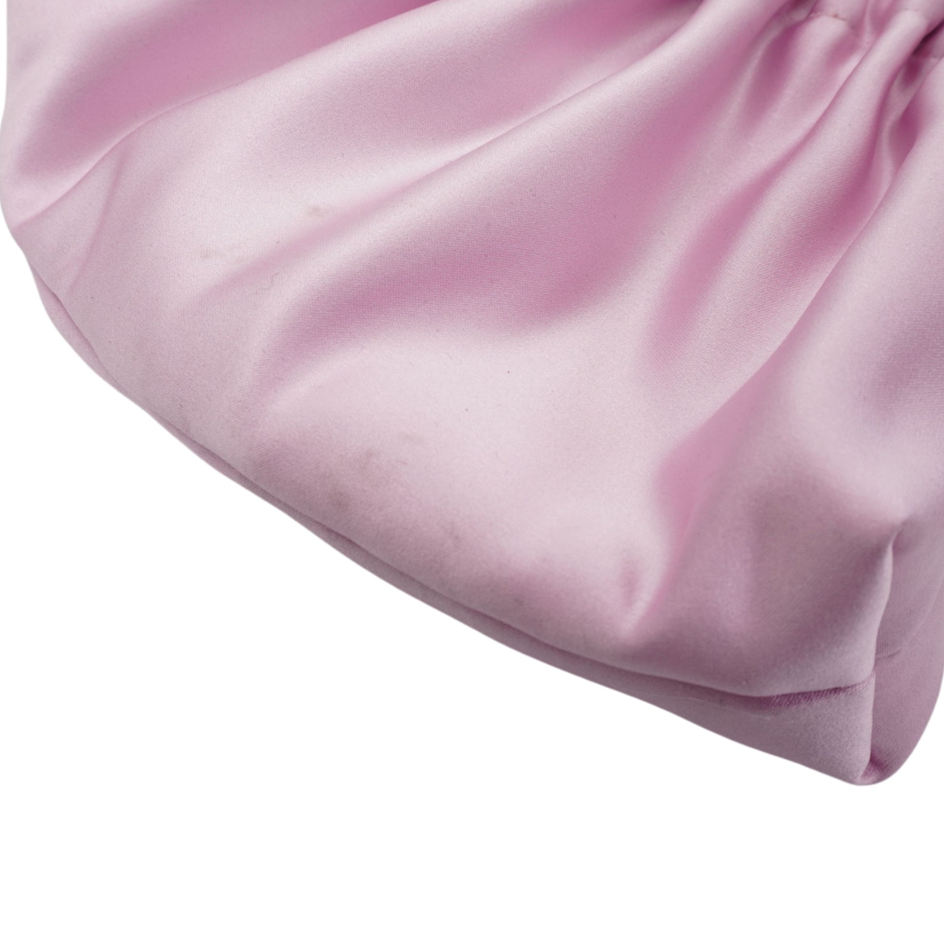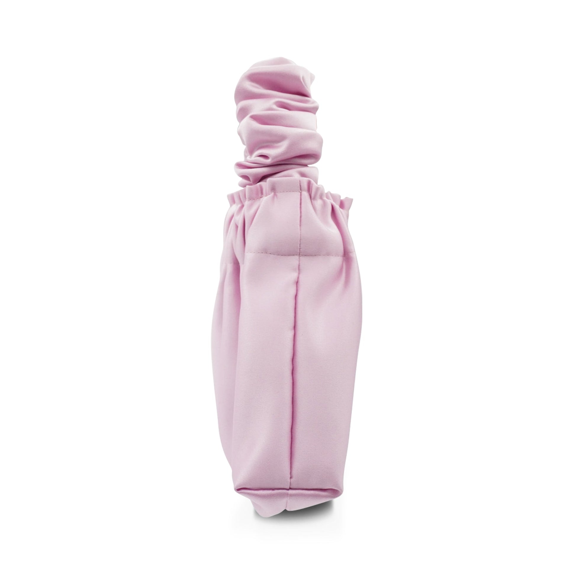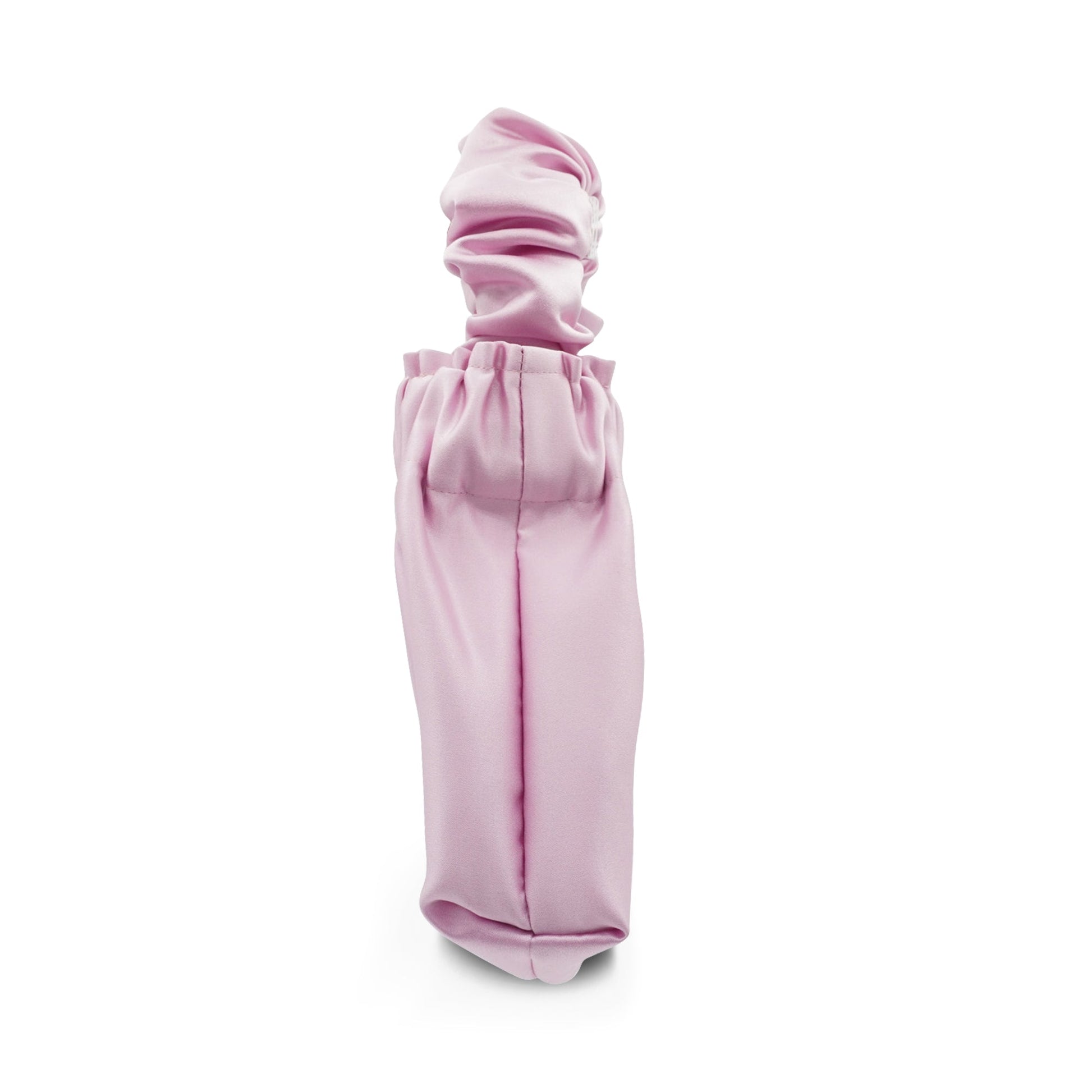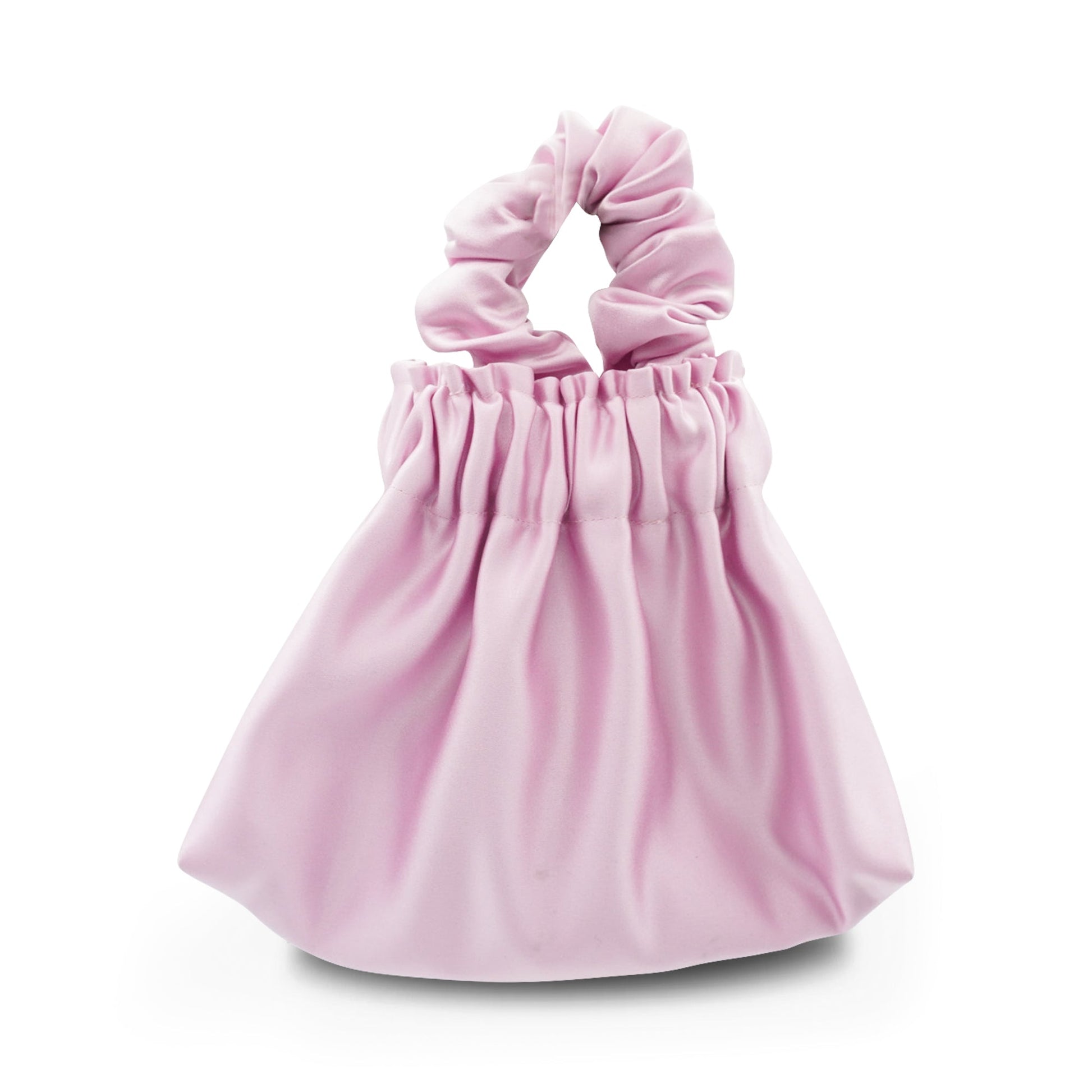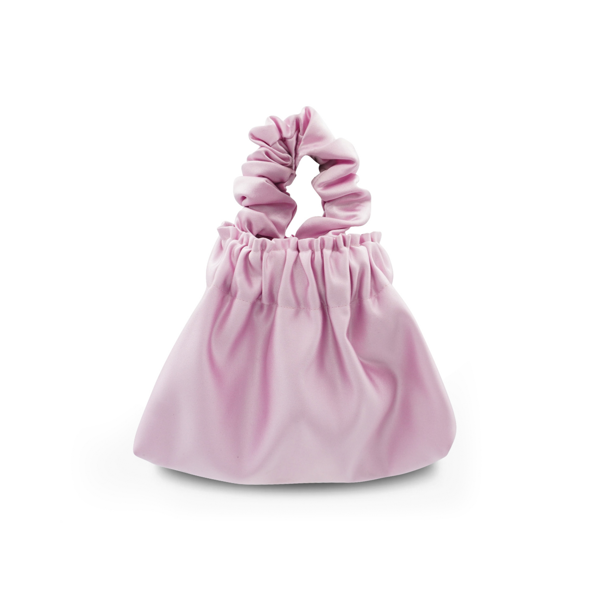 A Bronze Age 'Halo' lilac satin handbag with scrunchy handle and elastic scrunch top.