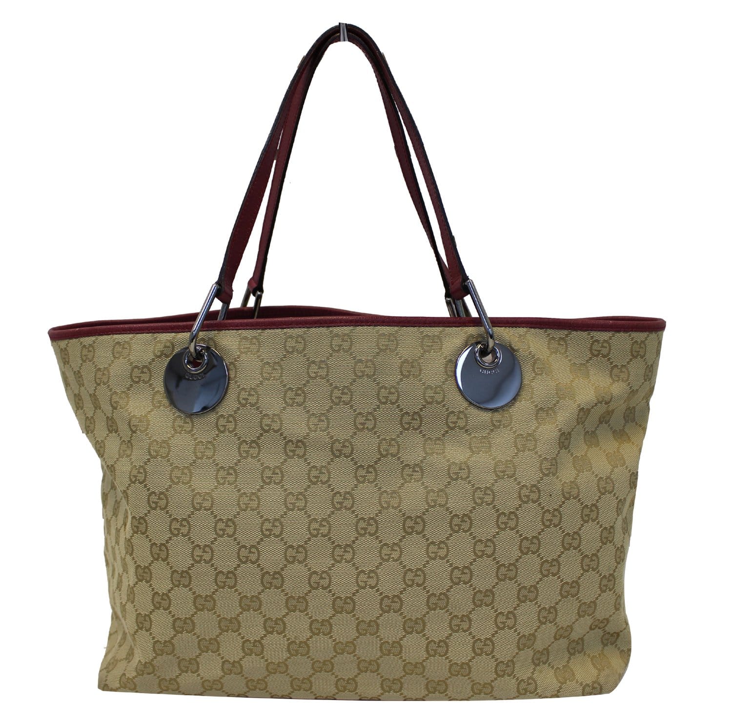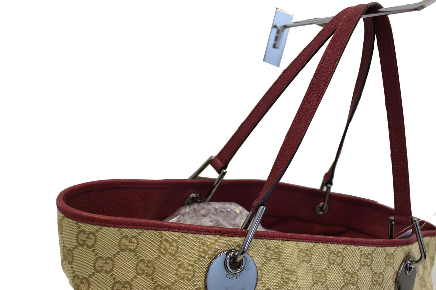 GUCCI Eclipse Beige Red GG Canvas Leather Tote Bag