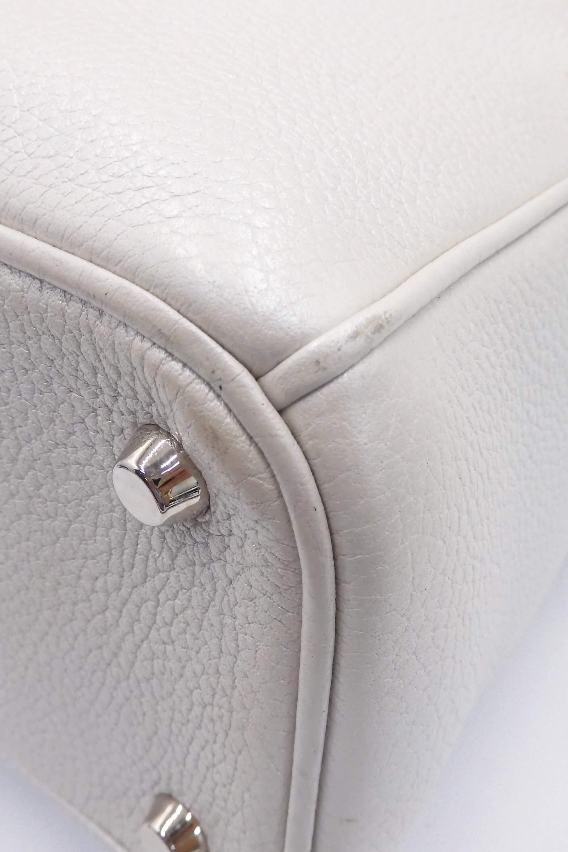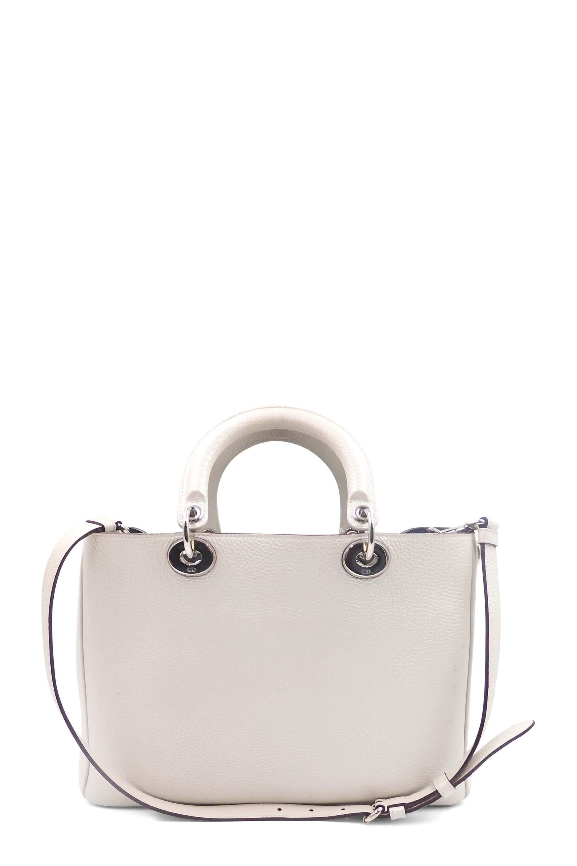 The new and iconic "Diorissimo" line highlights all the craftsmanship of Dior. The luxurious pebbled calfskin leather, two handle options to carry in the hand or on the shoulder, make this "Diorissimo" bag a truly unique model. A dangling Dior charm completes the look. Interior is made of calfskin leather with a pouch.