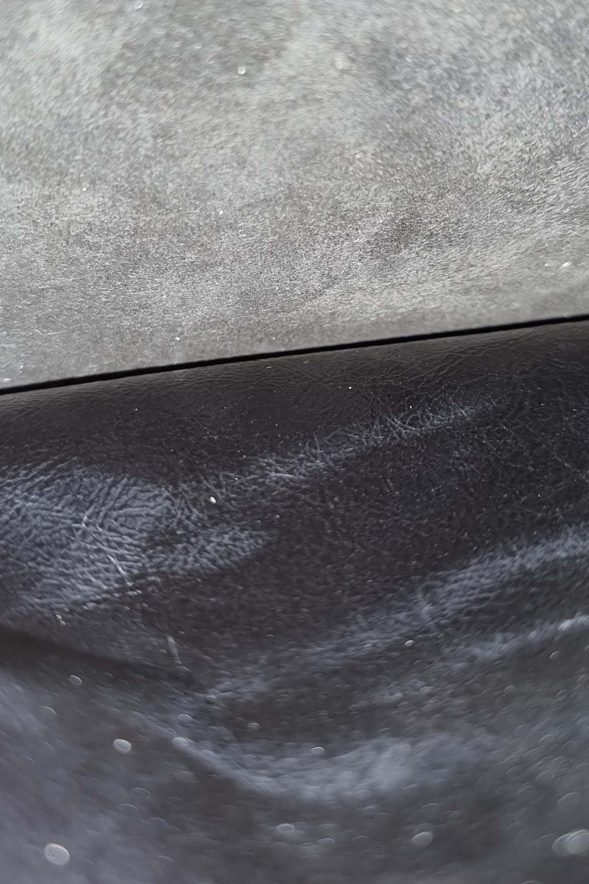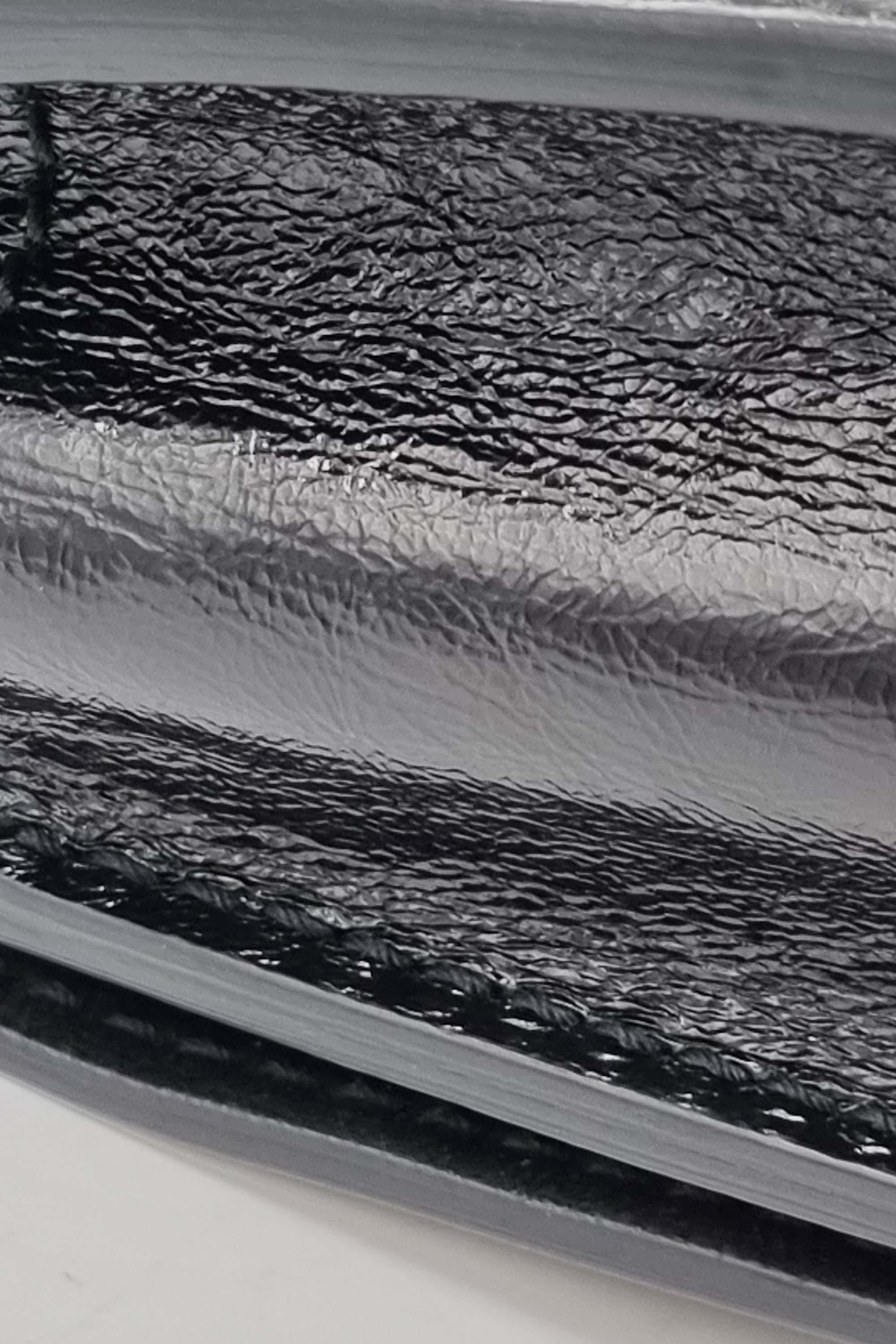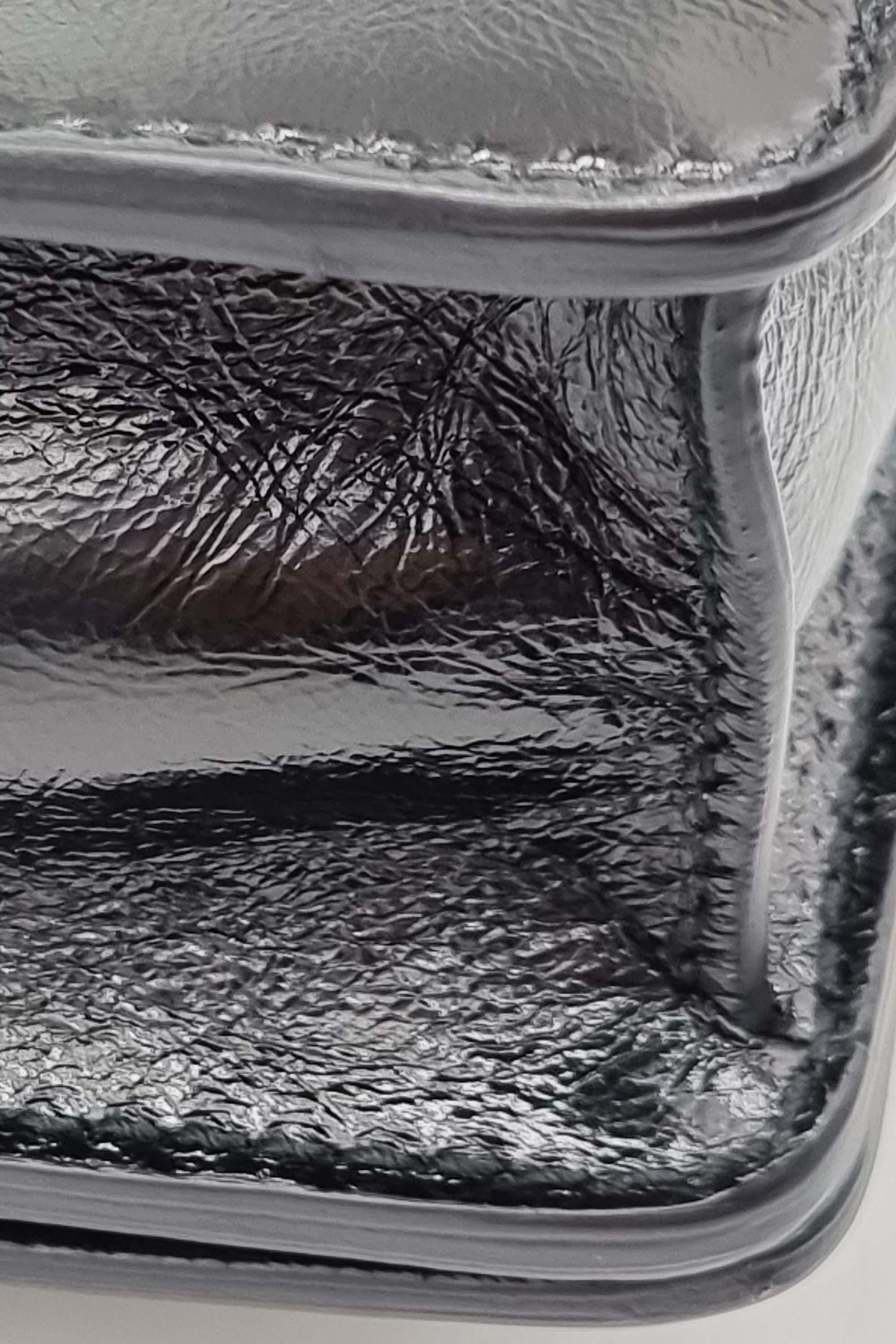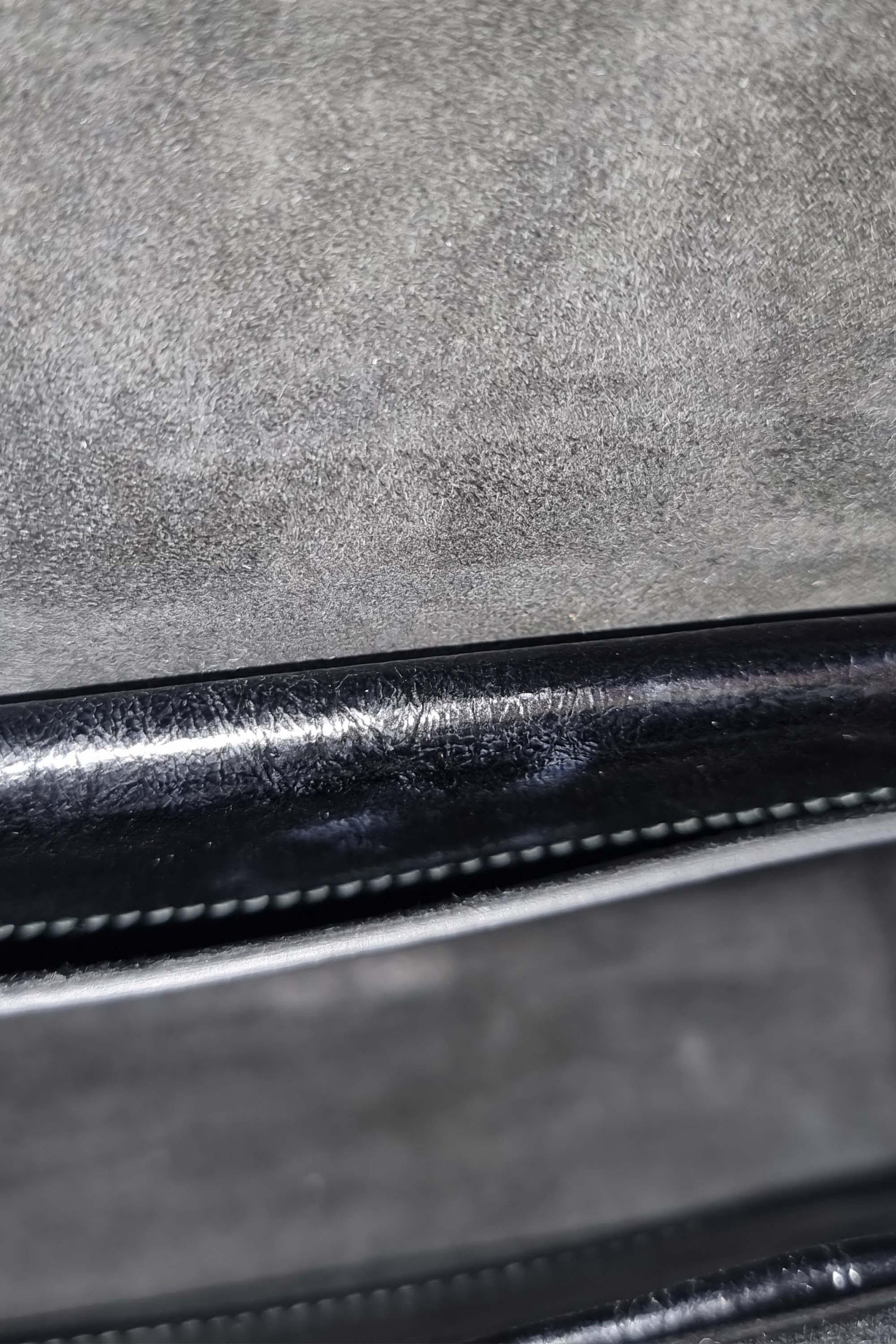 Exterior front is scratched. Exterior front, back, sides and bottom have creases. Interior lining has discoloration. Logo hardware is scratched and has some discoloration.