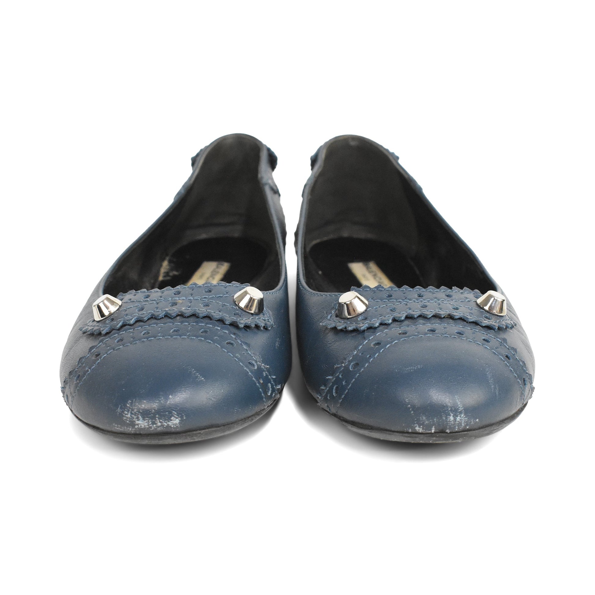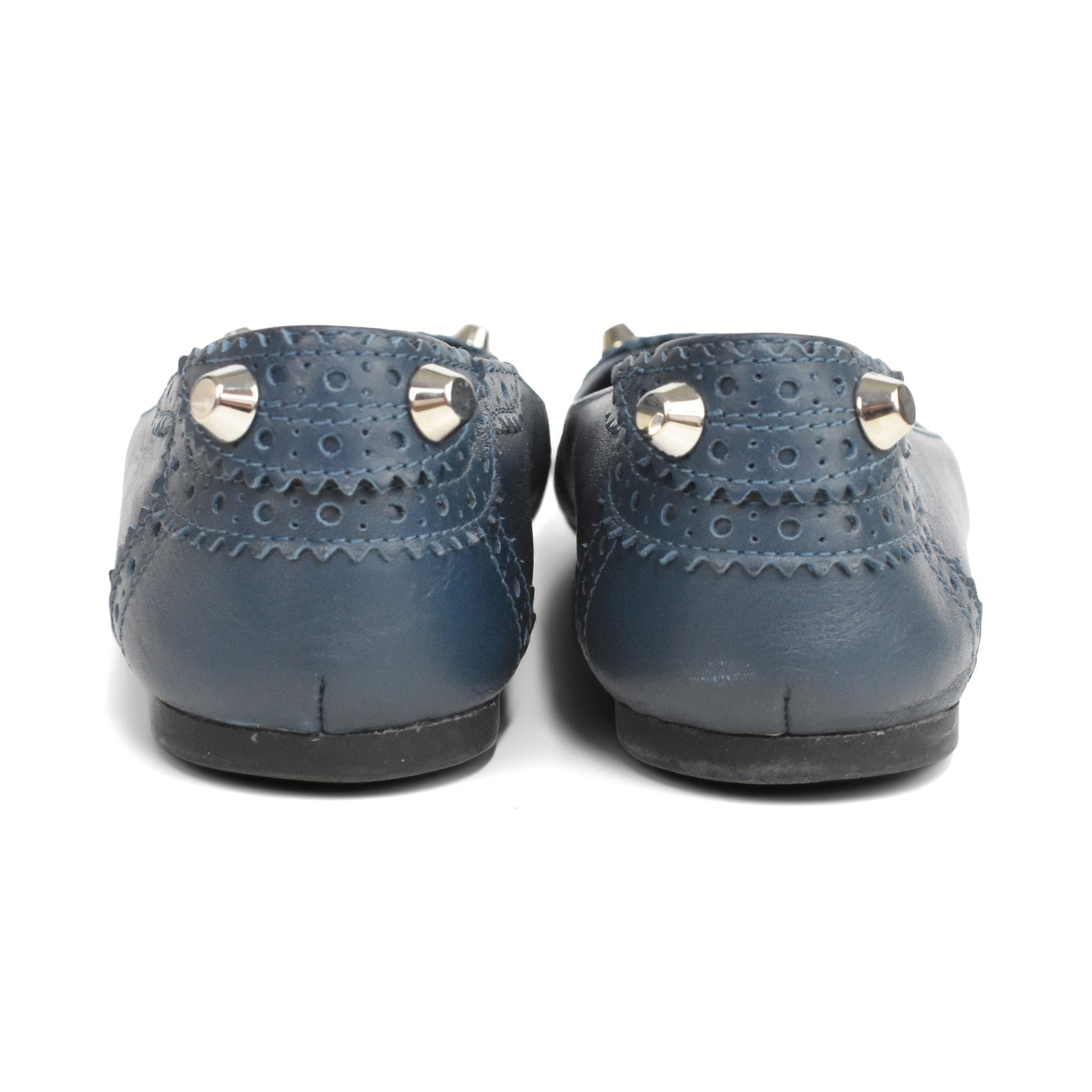 Balenciaga 'Arena' flats in blue leather with a perforated lace-like trim and silver stud hardware.