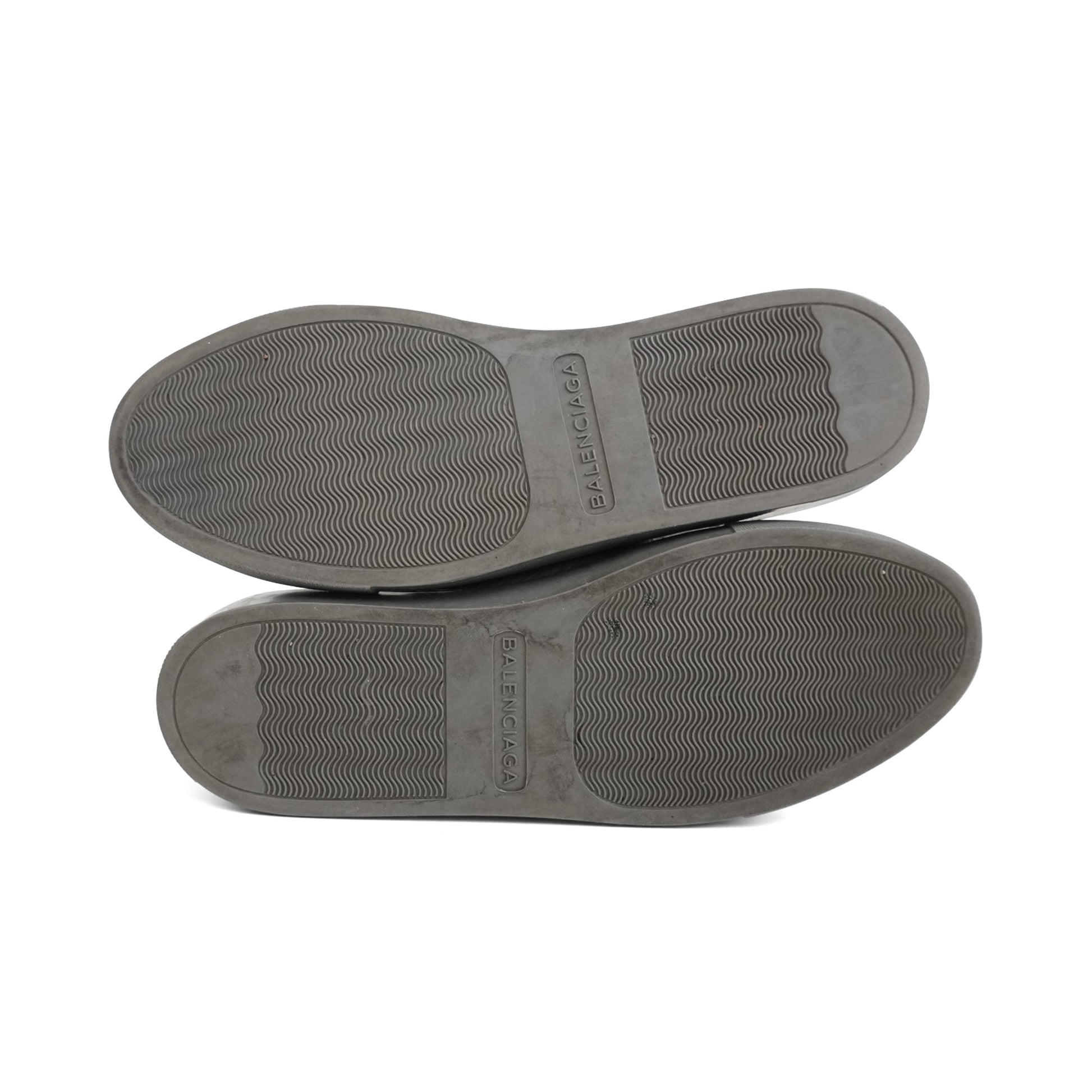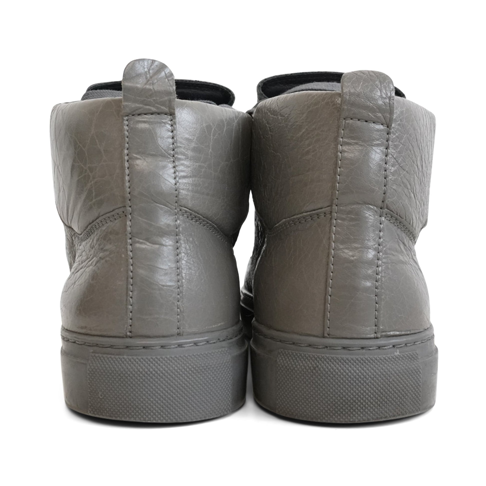 Balenciaga 'Arena' high-top sneakers in grey leather with silver hardware trim at the laces and a tonal rubber sole.