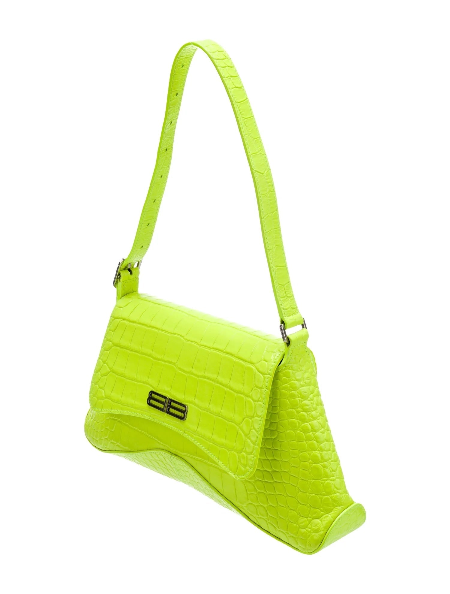 BALENCIAGA CROC EMBOSSED CALFSKIN MEDIUM XX FLAP BAG IN NEON GREEN