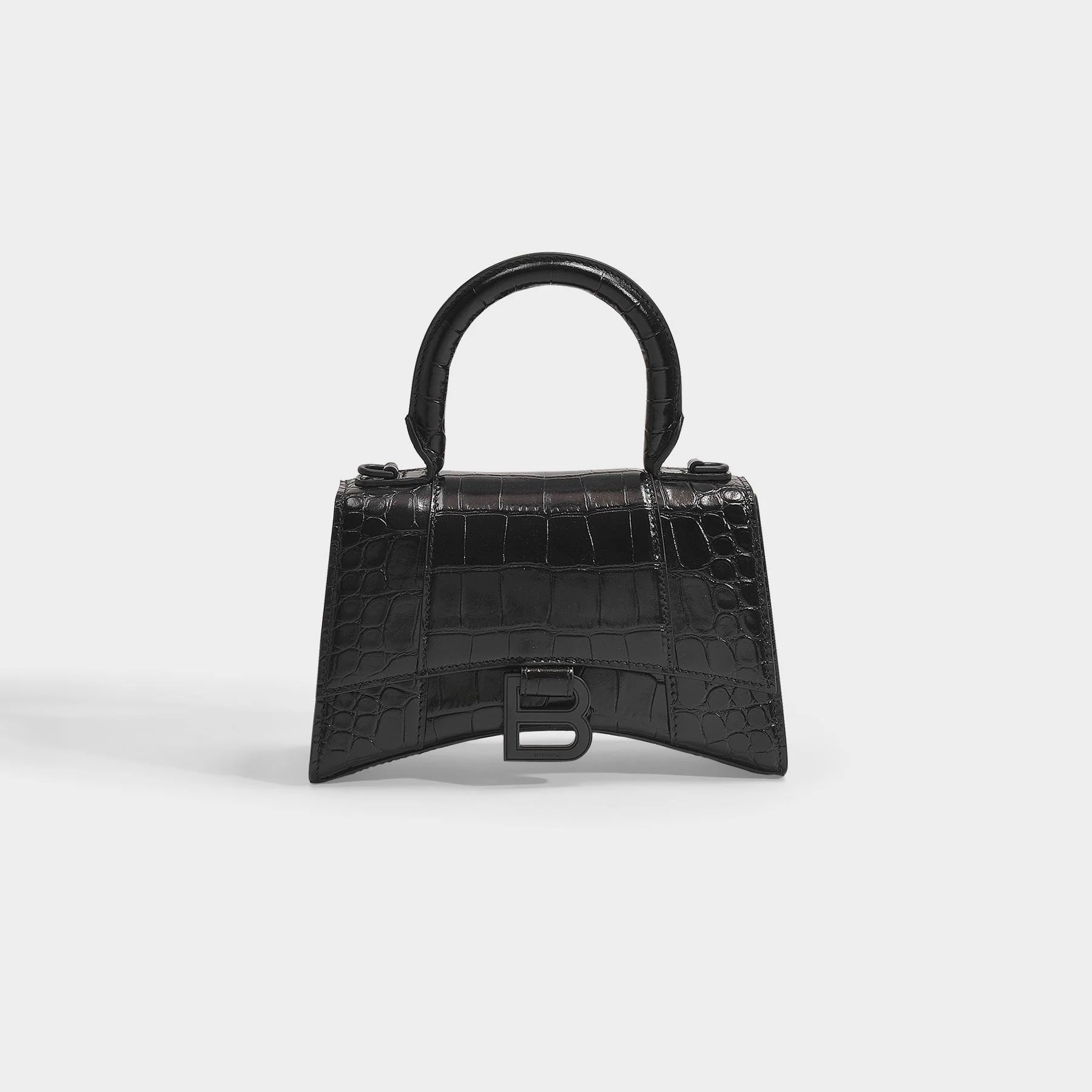 - Balenciaga "Hourglass" top handle bag in shiny croc-embossed calf leather