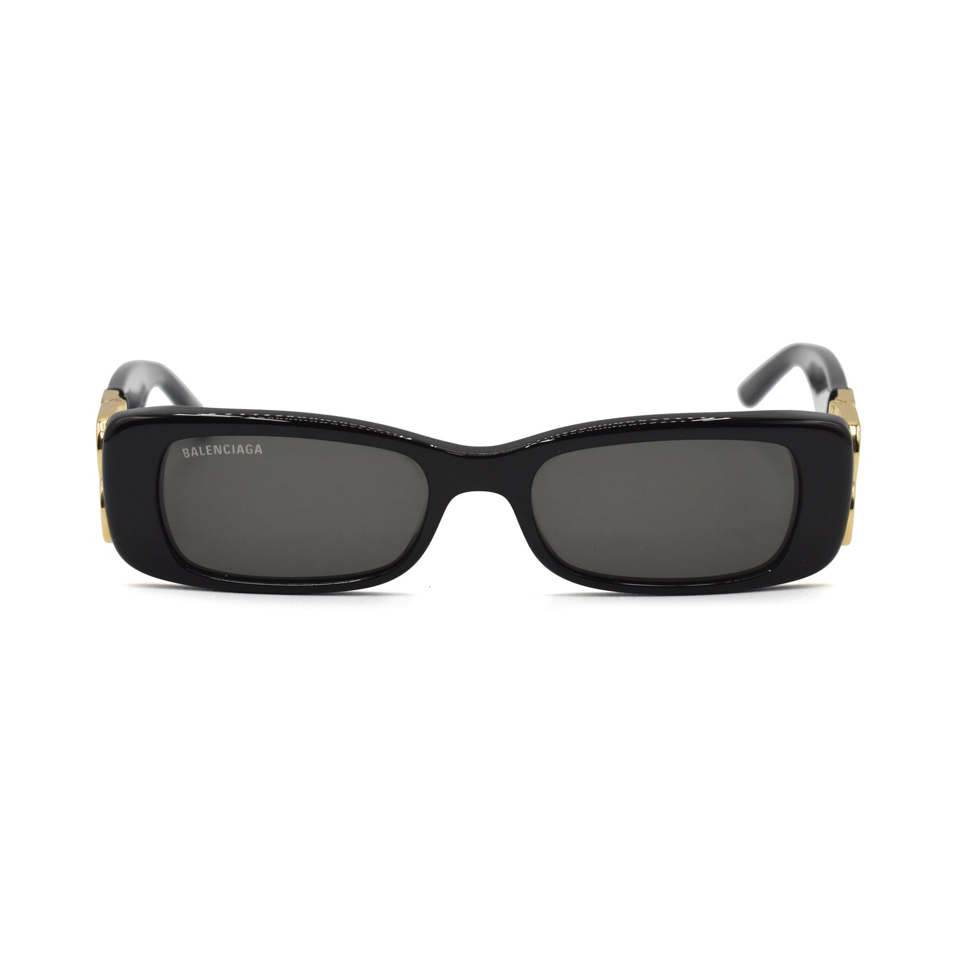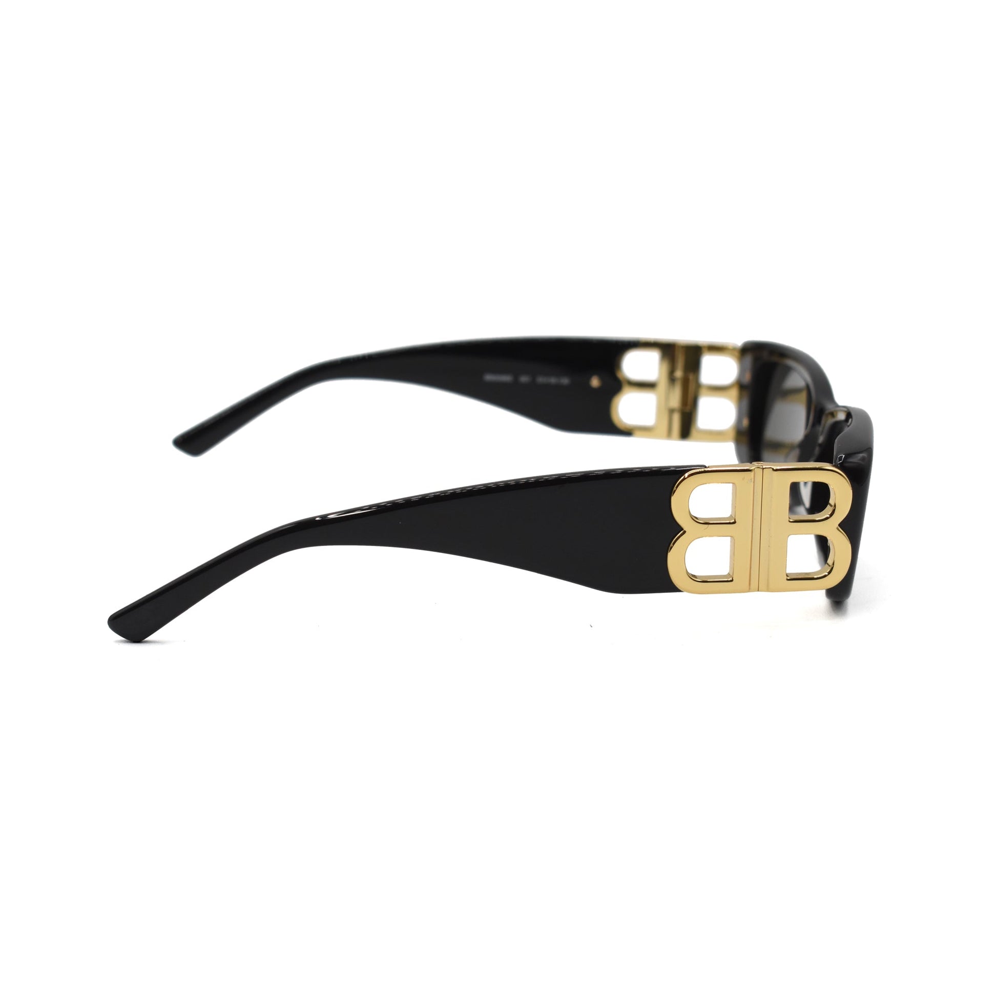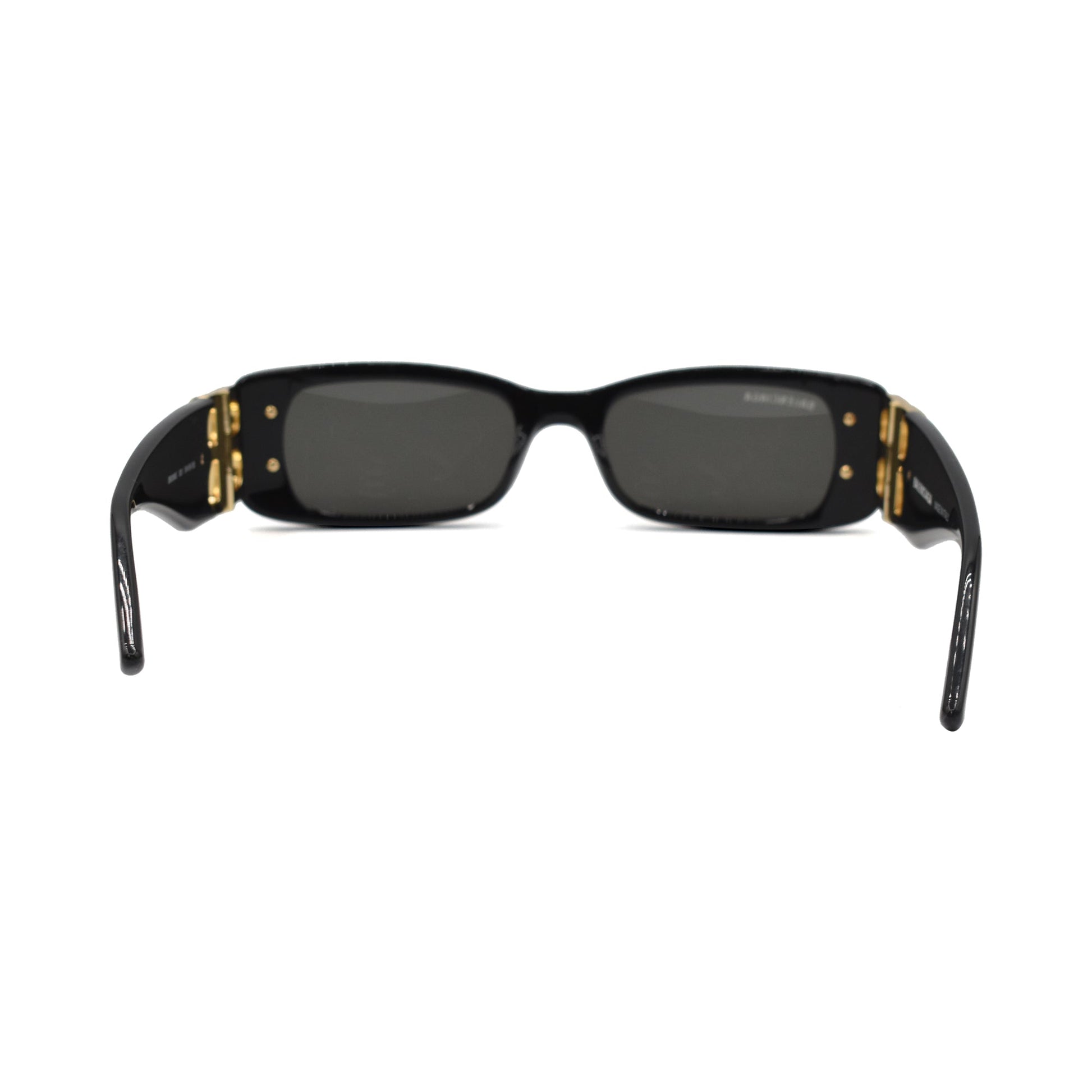Balenciaga 'Dynasty' sunglasses in black acetate with rectangular lenses and gold 'BB' hardware on the arms.