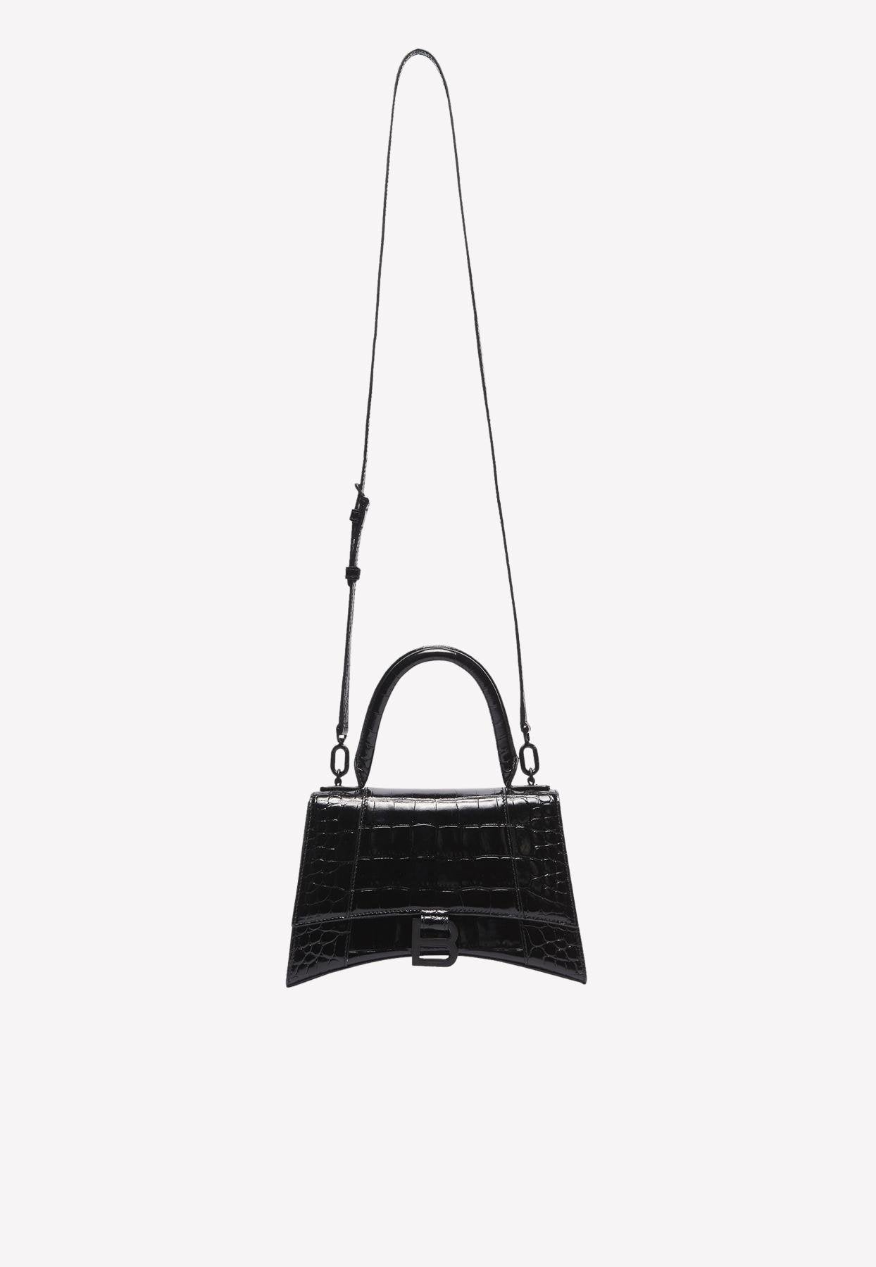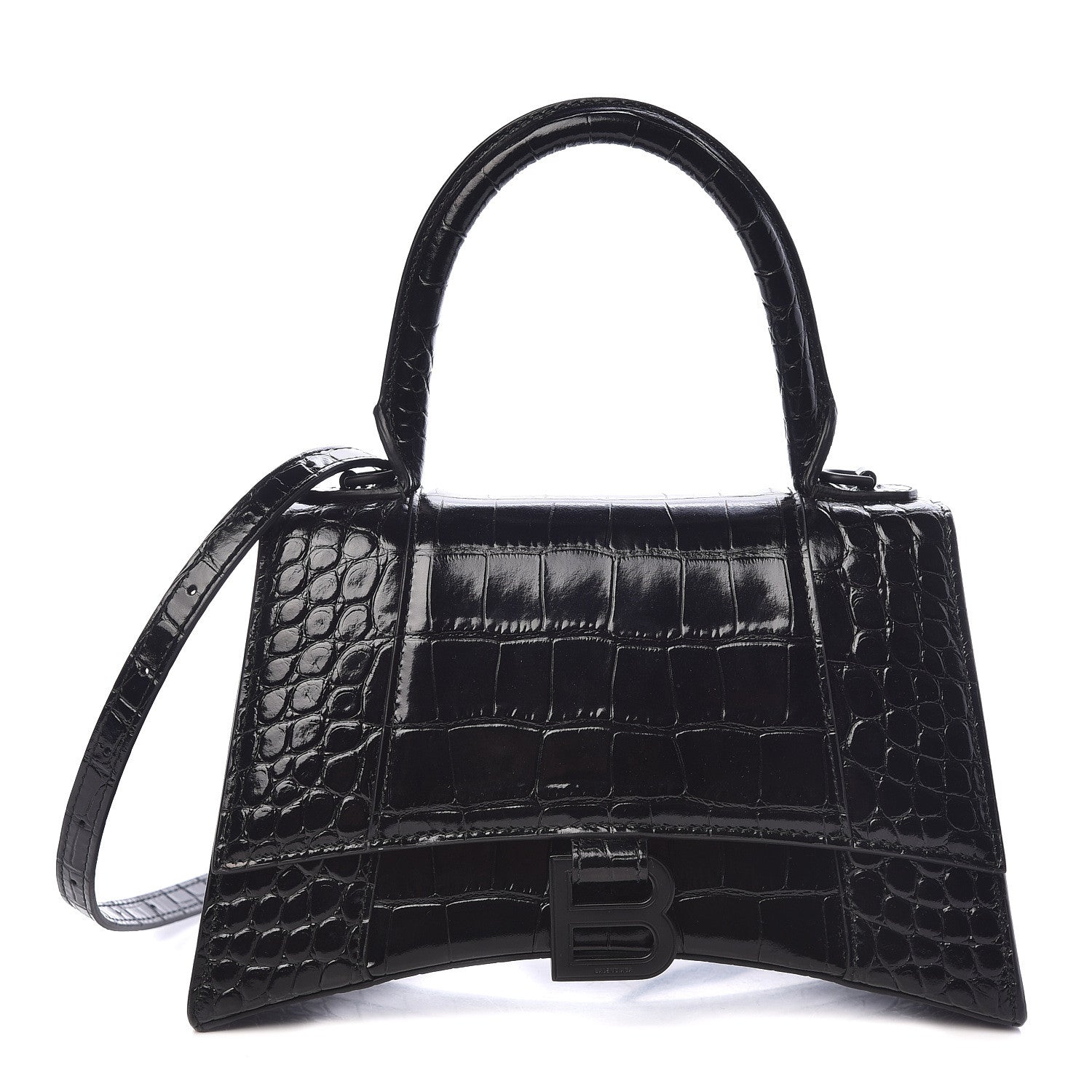 BALENCIAGA HOURGLASS CROC EMBOSSED TOP HANDLE BAG