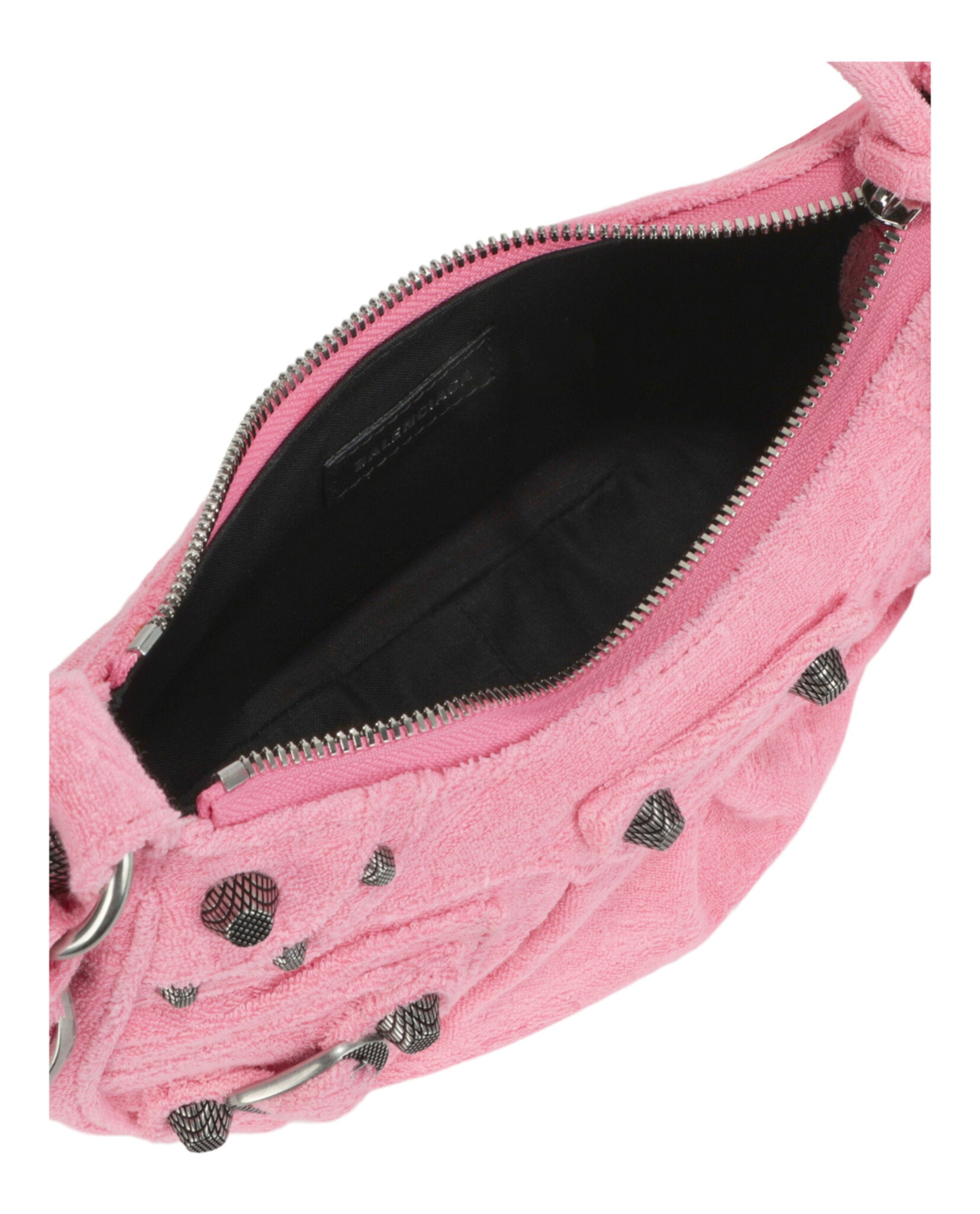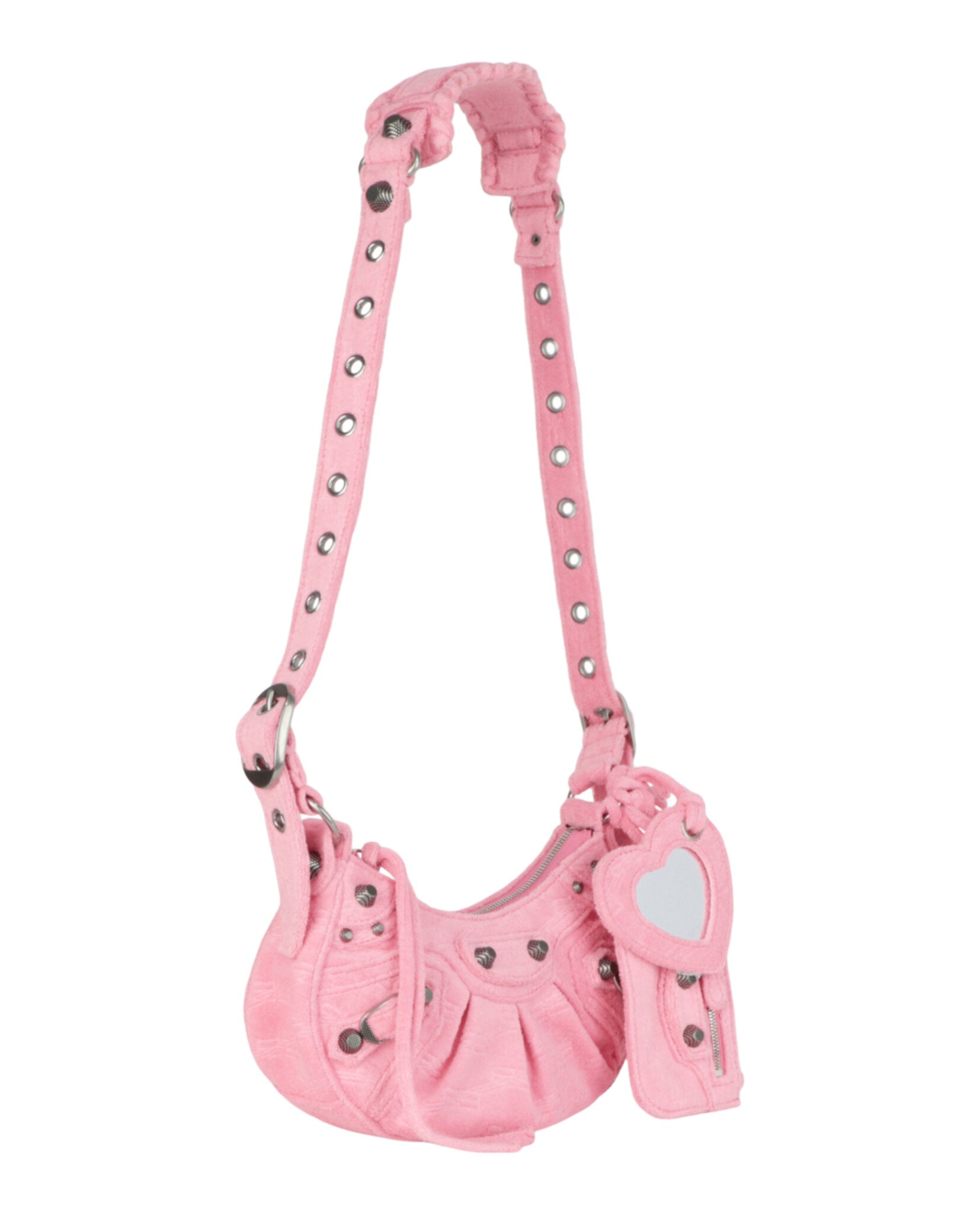 For those seeking a pink designer bag, the brand new Balenciaga Le Cagole Xs Shoulder Bag is a chic blend of style and versatility. Its luxurious pink cotton exterior is complemented by antiqued silver-tone hardware and practical features like a detachable strap and additional accessories. Experience the allure of outlet deals with this exquisite designer piece!