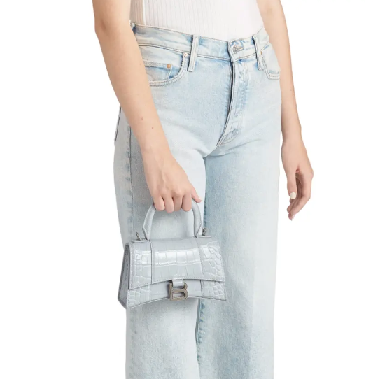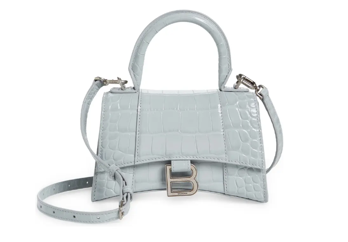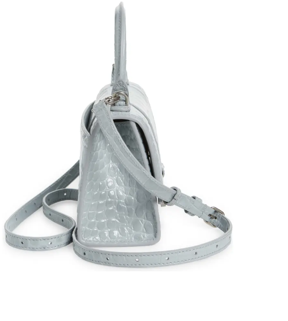 BALENCIAGA XS HOURGLASS CROC EMBOSSED LEATHER TOP HANDLE BAG-ASH BLUE