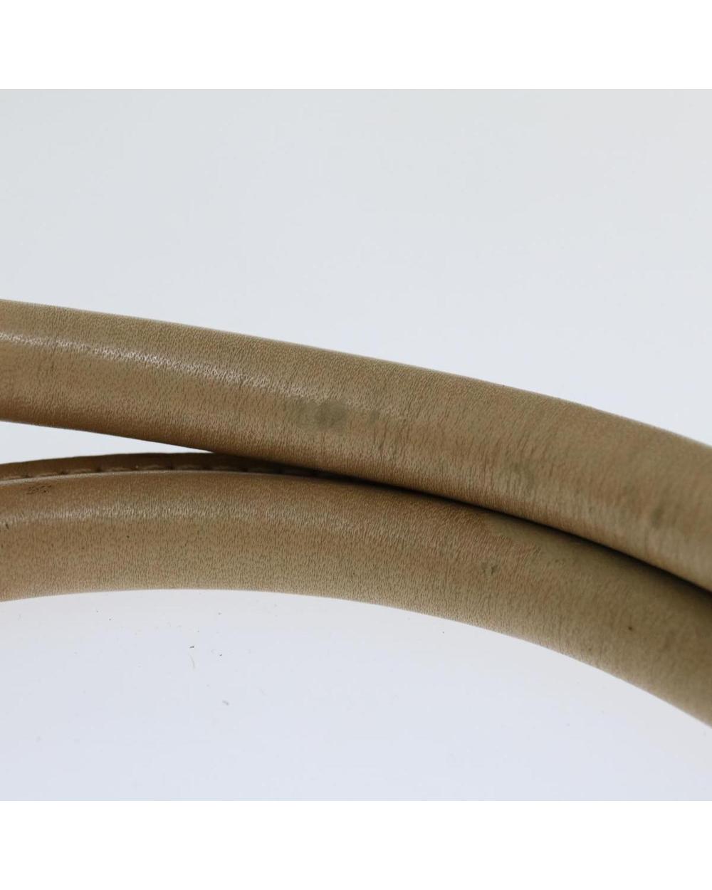 Gold-tone hardware complements the beige canvas