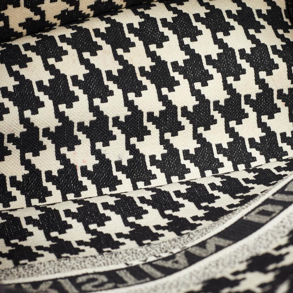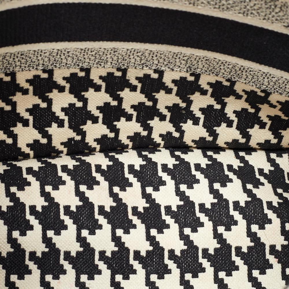 Designed by Maria Grazia Chiuri, the Dior Book Tote is a travel accessory for people with style. The bag here is crafted using canvas into a beautiful structure and covered in the Houndstooth motif. Two handles, the Christian Dior Paris signature, and a spacious interior complete the tote. - Good - Overall in good condition with minor scuffs/marks in some areas, darkening/stains on exterior & wear on metal.