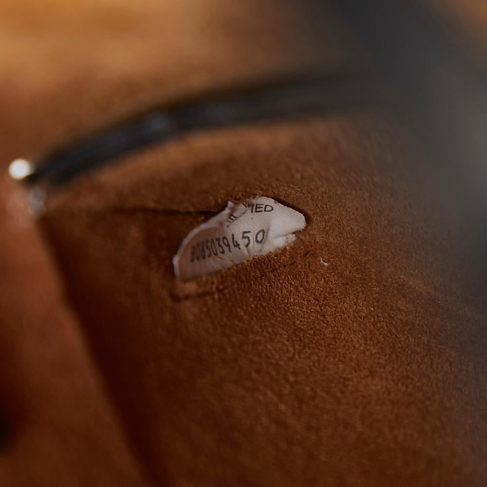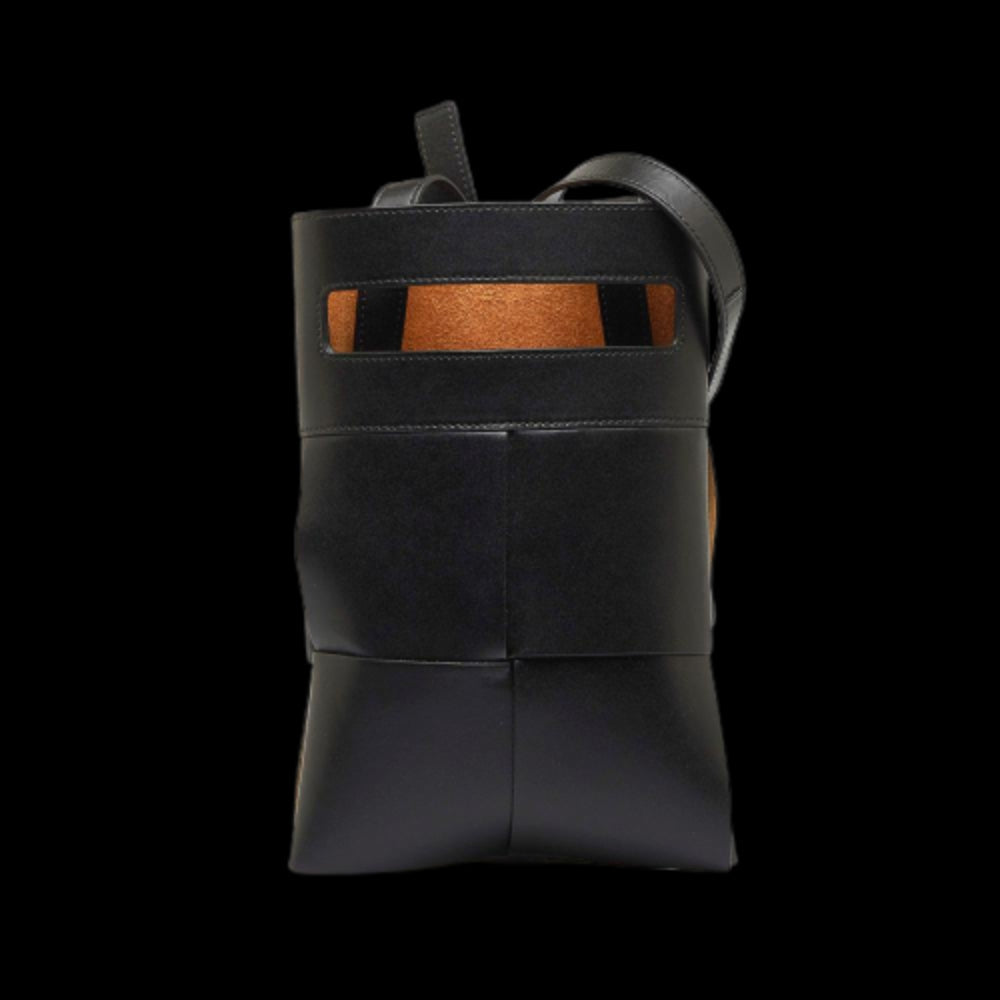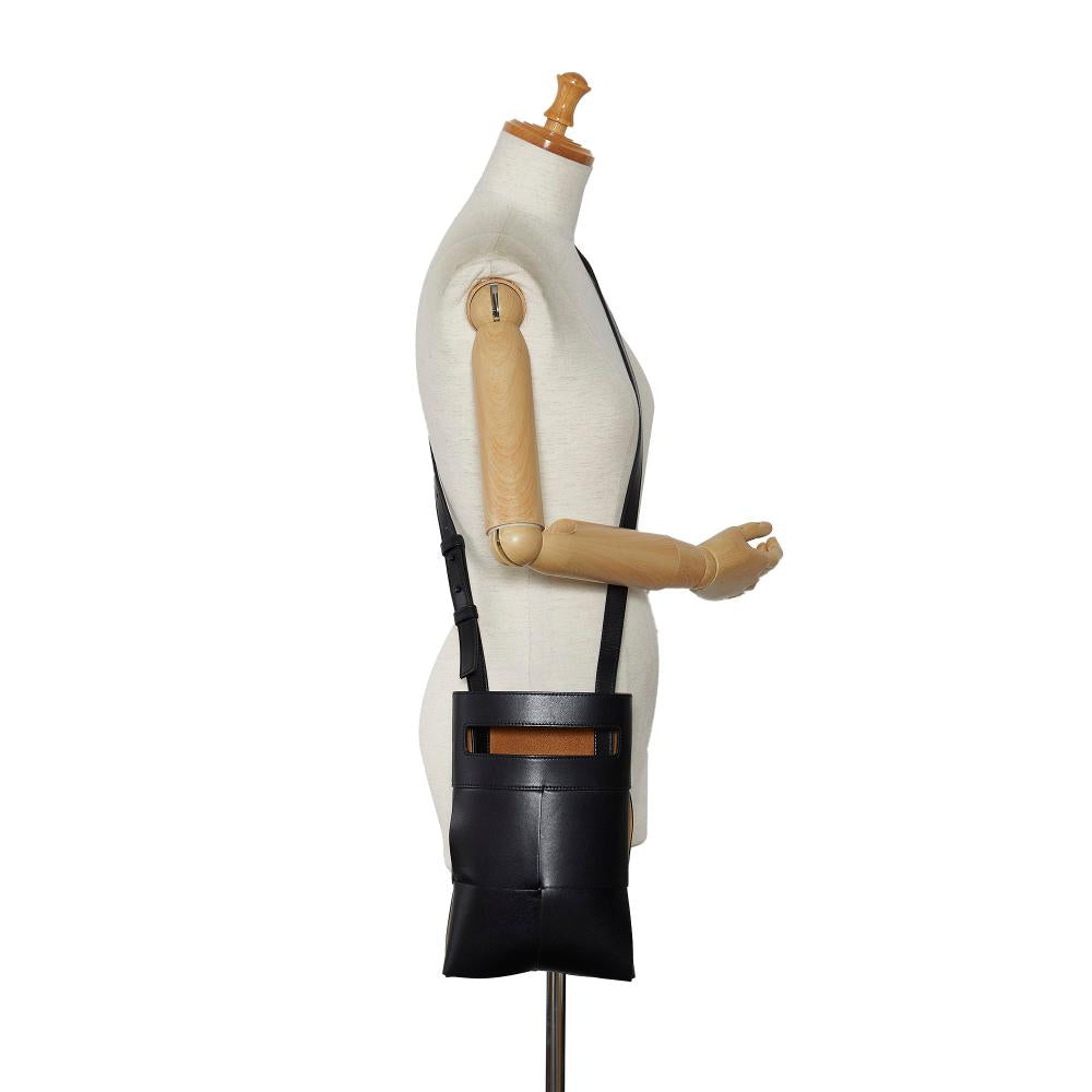 This crossbody features a woven leather body, an adjustable flat leather shoulder strap, and an open top. It carries a B+ condition rating.Exterior Back Worn. Exterior Bottom Worn. Exterior Front Worn. Exterior Handle Out Of Shape, Worn. Interior Lining Discolored, Worn. Exterior Side Worn. Exterior Top Worn. Dimensions:Length 18cmWidth 2cmHeight 27cmShoulder Drop 55cmOriginal Accessories: Dust BagSerial Number: B08503945OColor: BlackMaterial: Leather x Calf