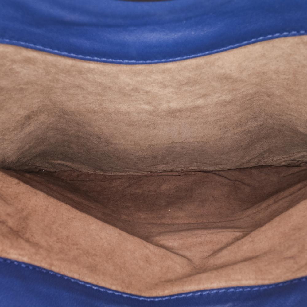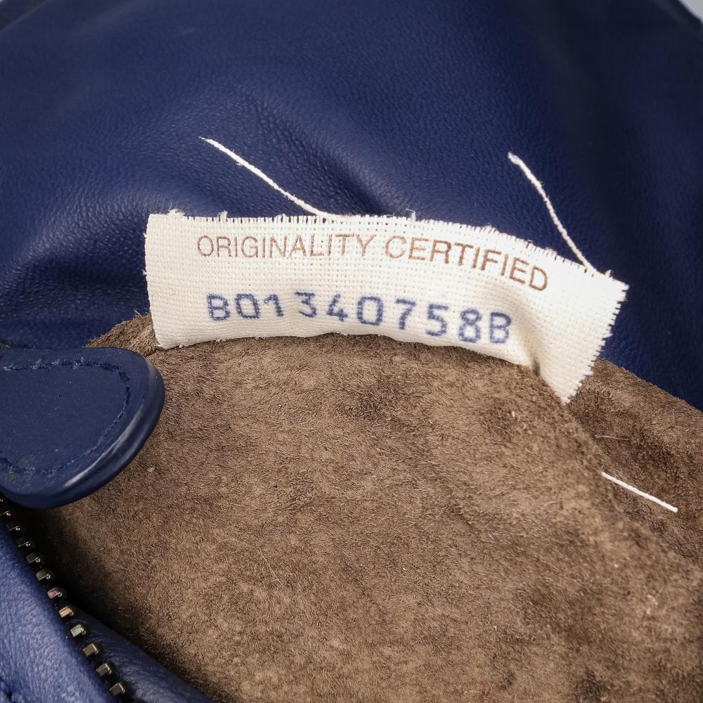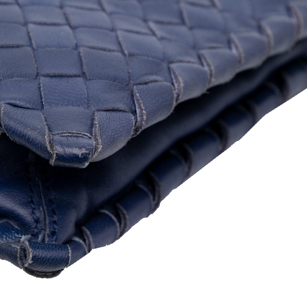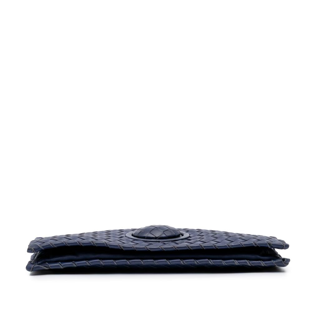 This clutch bag features a woven nappa leather body, a front flap with a turn lock closure, and an interior zip compartment. It carries a B+ condition rating.Exterior Corners Worn. Interior Lining Creased. Dimensions:Length 28cmWidth 1.5cmHeight 15cmOriginal Accessories: This item has no other original accessories.Serial Number: B01340758BColor: Blue x Midnight BlueMaterial: Leather x Nappa Leather