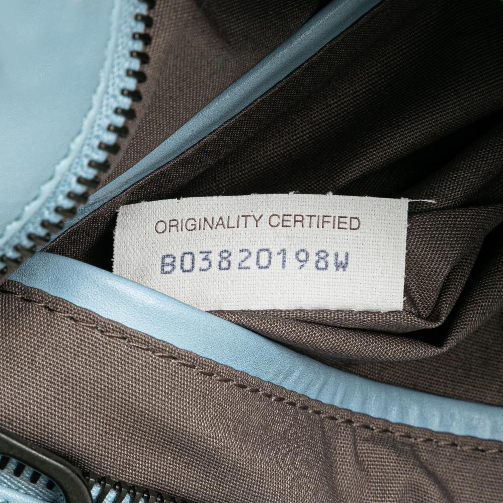 This crossbody bag features a woven leather body, an adjustable and detachable flat shoulder strap, a top zip closure, and an interior slip pocket. It carries a B+ condition rating.Exterior Back Worn. Exterior Bottom Worn. Exterior Corners Worn. Exterior Front Worn. Exterior Handle Creased, Worn. Interior Pocket stained with Other. Interior Lining stained with Other. Practical Attachment Scratched. Exterior Side Worn. Exterior Top Worn. Zipper Scratched. Dimensions:Length 25cmWidth 1.5cmHeight 28cmShoulder Drop 65cmOriginal Accessories: This item has no other original accessories.Serial Number: B03820198WColor: Blue x Light BlueMaterial: Leather x Nappa Leather