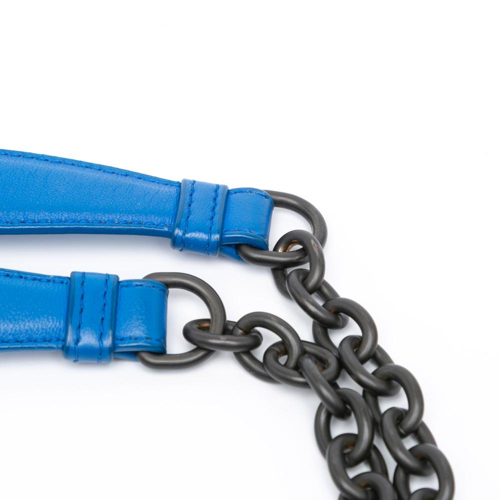This shoulder bag features a woven leather body, a chain link and leather shoulder strap, a top flap with magnetic closure, and interior zip and slip pockets. It carries a B+ condition rating.Exterior Back Creased, Worn. Exterior Bottom Worn. Lock Scratched. Exterior Corners Worn. Exterior Front Creased, Worn. Exterior Handle Worn. Interior Pocket Worn. Interior Lining Worn. Interior Lining stained with Transfer Of Color. Practical Attachment Scratched. Exterior Side Creased, Worn. Exterior Top Cracked, Worn. Zipper Scratched. Dimensions:Length 29cmWidth 10cmHeight 21cmHand Drop 13cmShoulder Drop 58cmOriginal Accessories: This item has no other original accessories.Serial Number: B04916028UColor: BlueMaterial: Leather x Nappa Leather