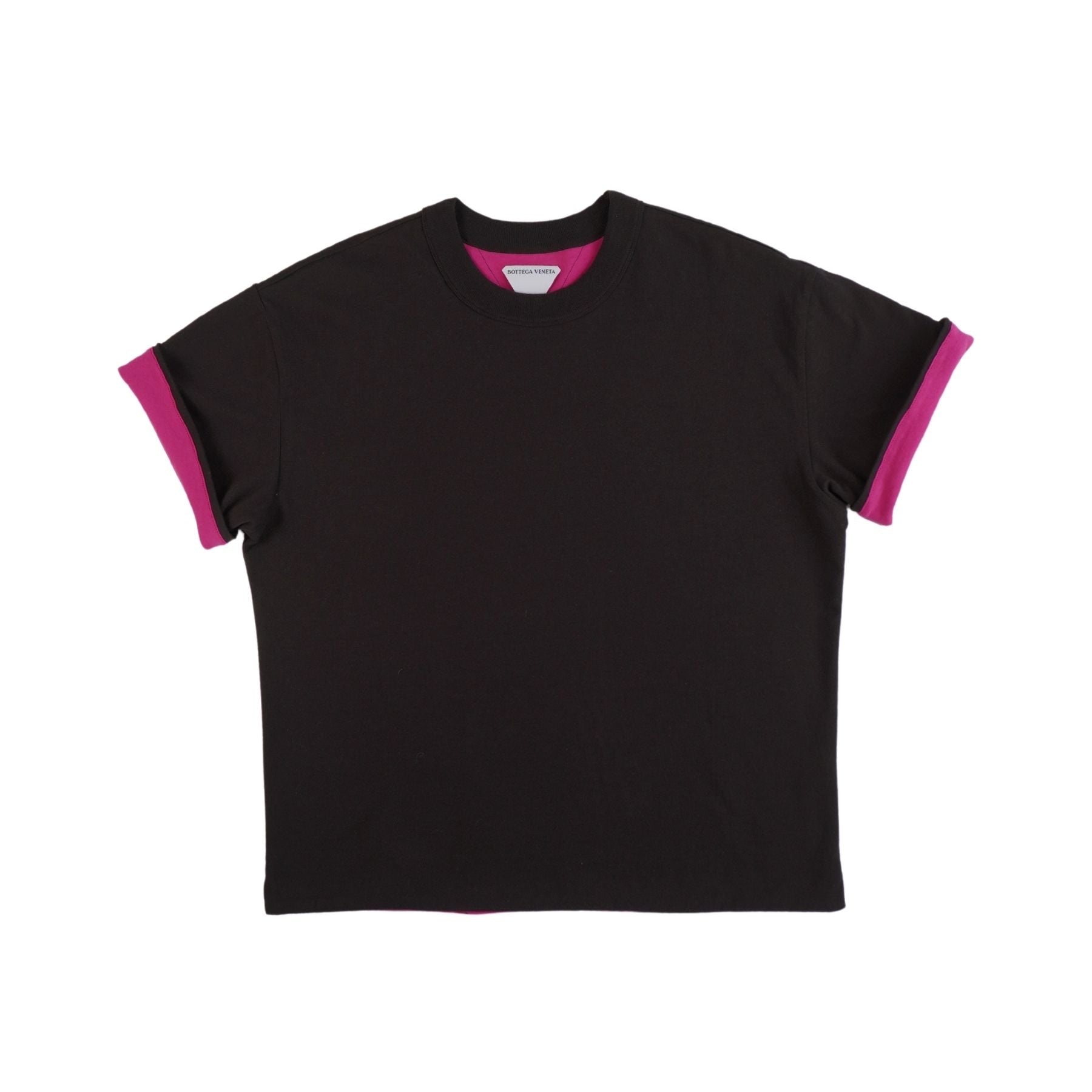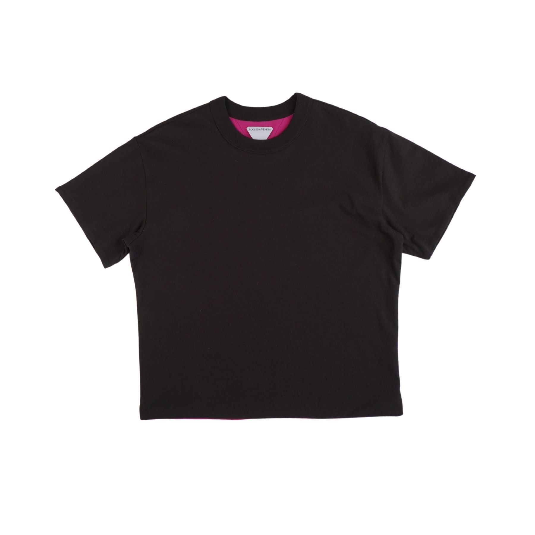Bottega Veneta Boxy T-Shirt in brown cotton with a pink interior and side slits.