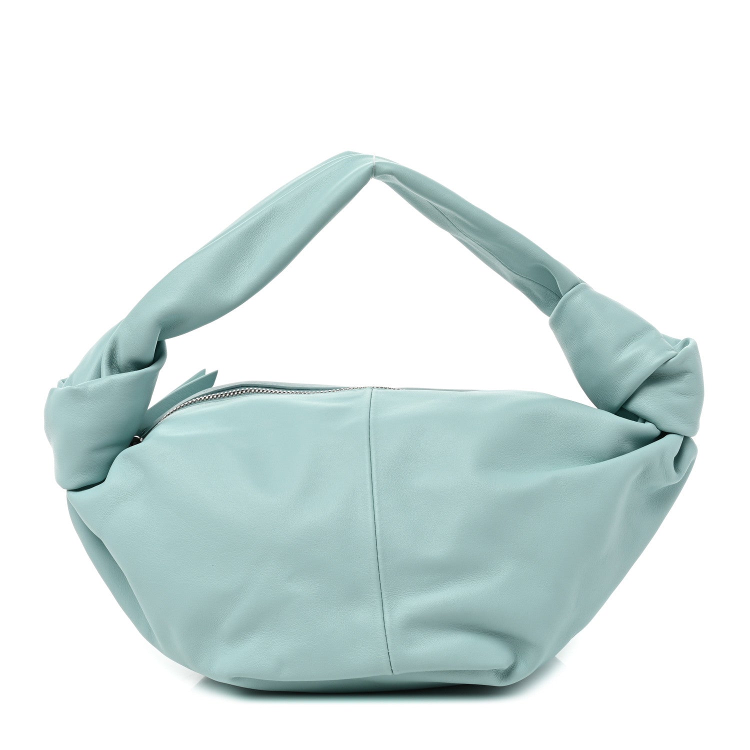 Crafted from supple spearmint calfskin leather, this sculptural piece reimagines the classic Veneta silhouette with an artful twist—featuring two signature knotted details on the handle.