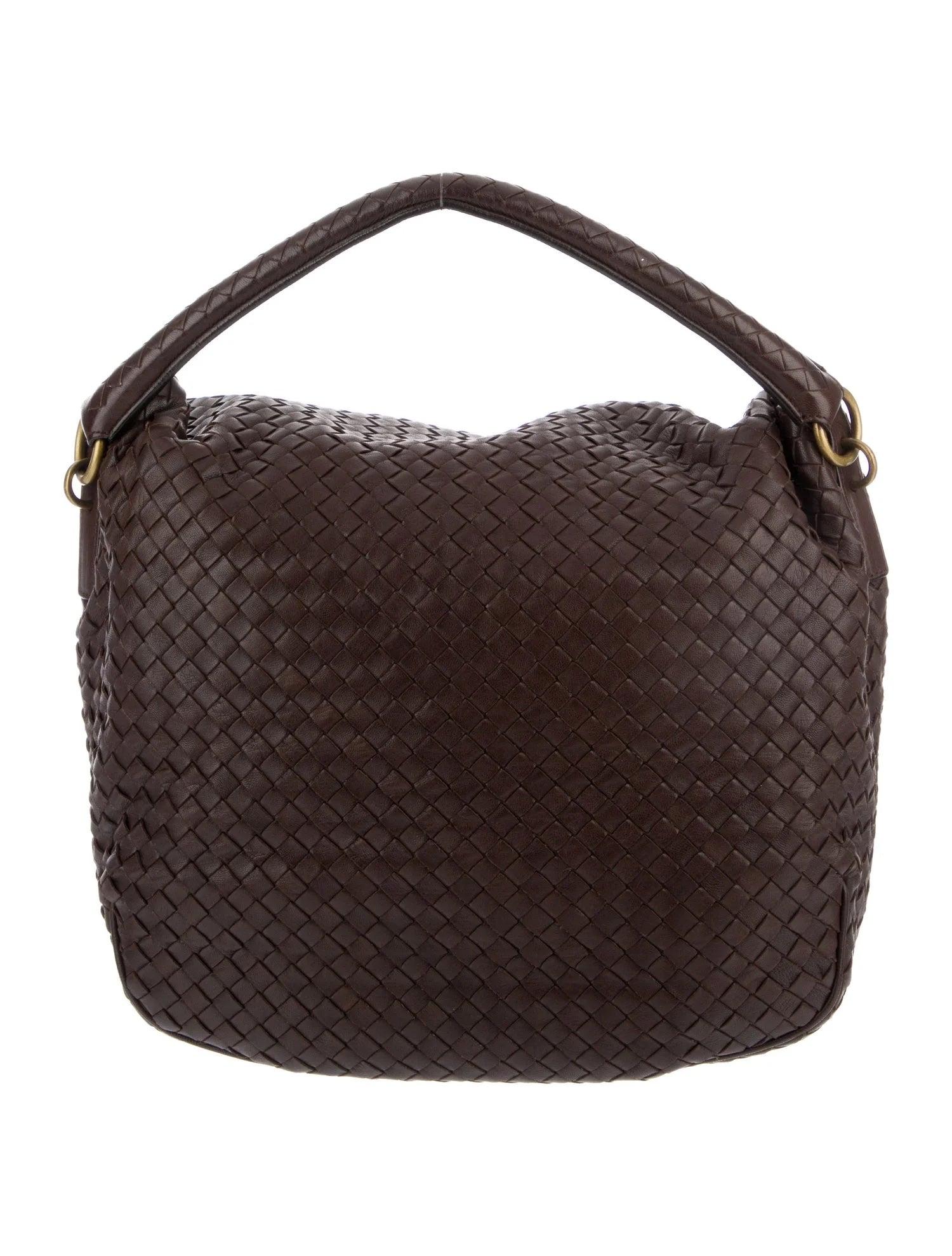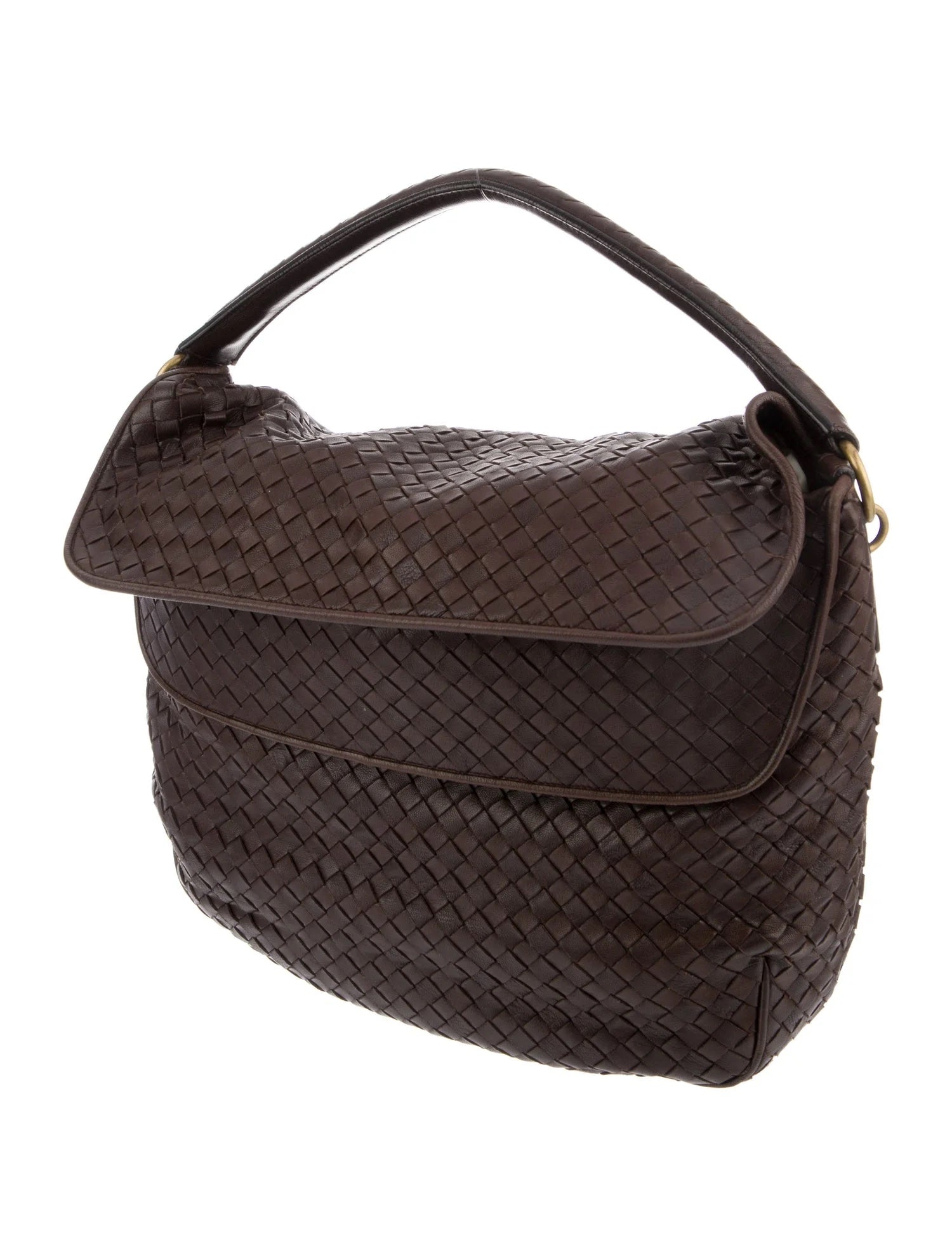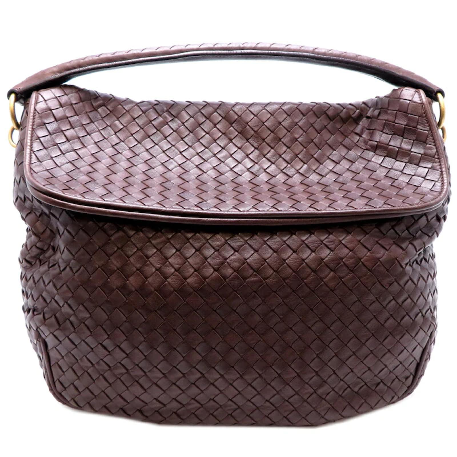 Bottega Veneta Shoulder Bag Inrecciato Lambskin Leather in Dark Brown