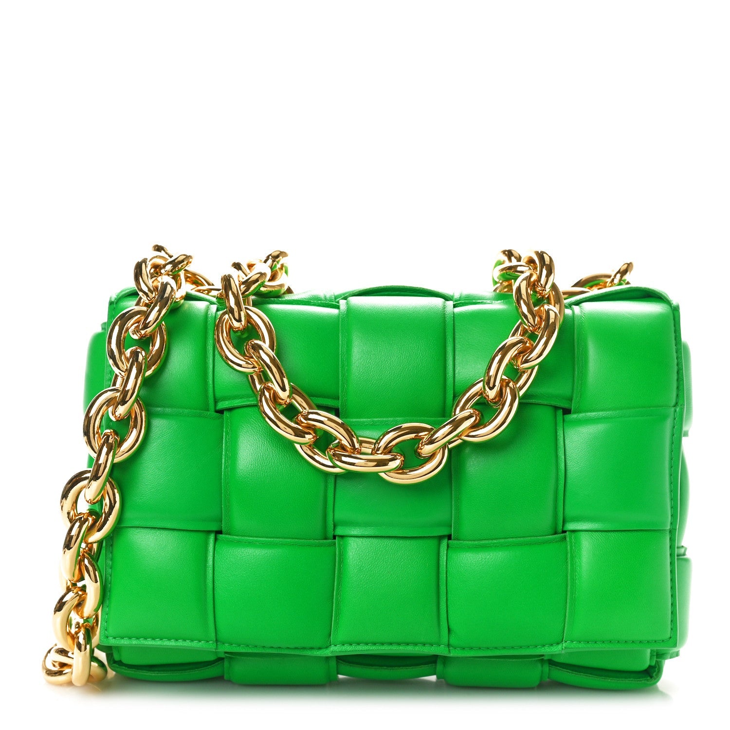 LAMBSKIN MAXI INTRECCIATO PADDED CASSETTE CHAIN BAG IN GRASS