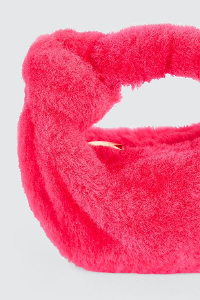 Bottega Veneta Mini Jodie bag in shearling. Hobo bag with top handle. Zip closure. Knot detail on the handle.