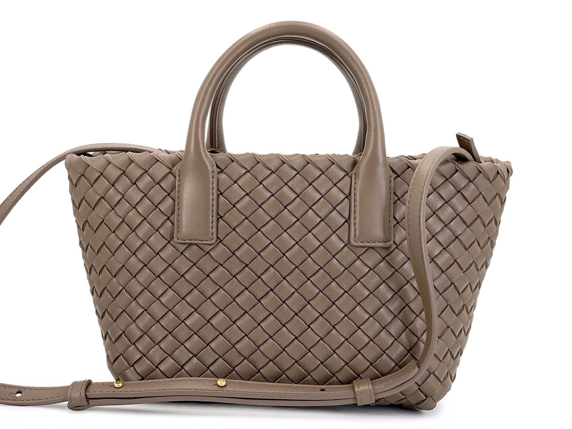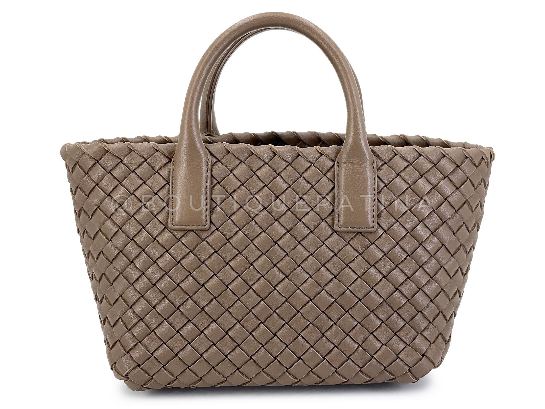 Bottega Veneta Taupe Beige Interciatto Mini Cabat Tote Crossbody Bag