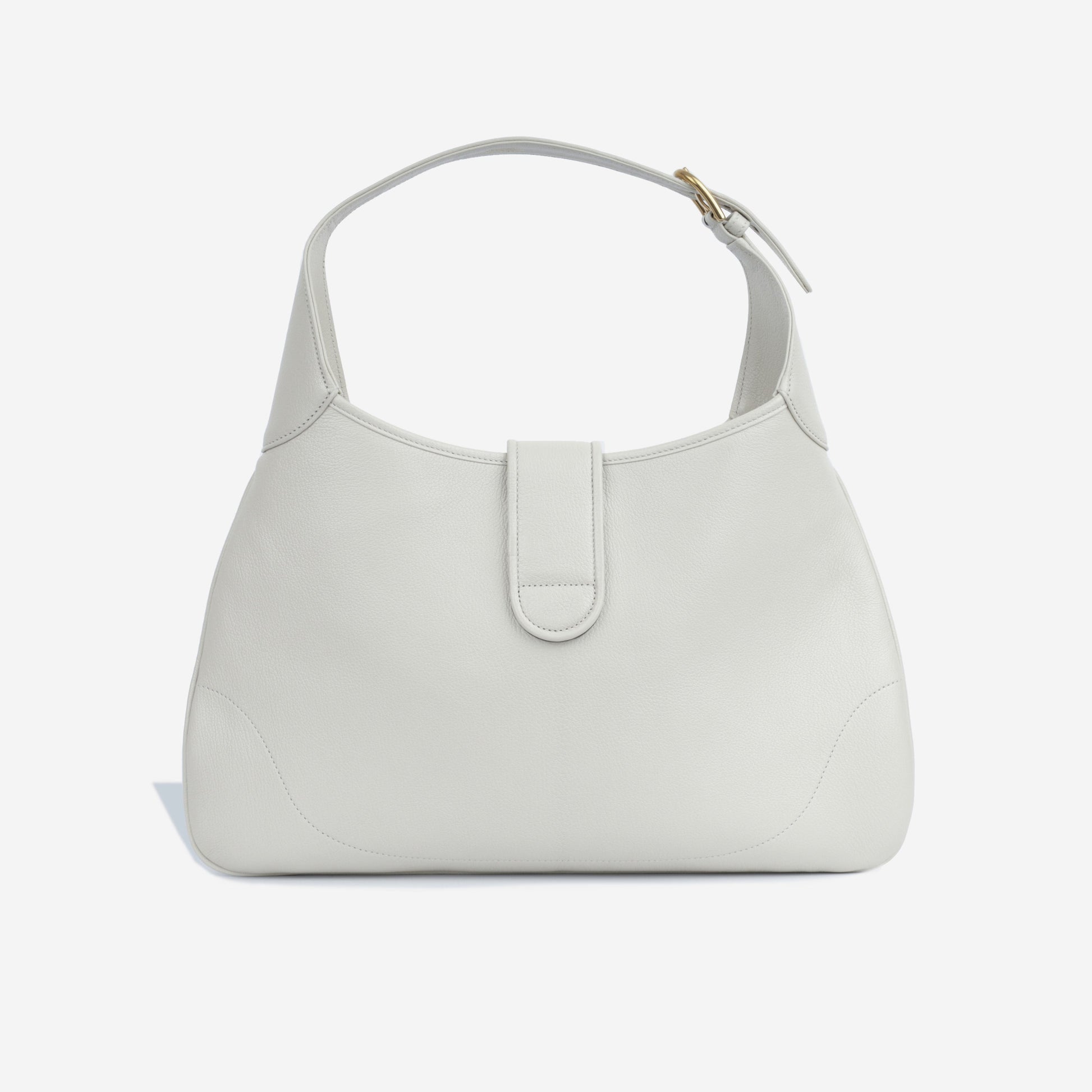 Crafted from soft off-white leather, this new crescent shaped shoulder bag was inspired by the House's archives and took its name from the Greek Goddess of Love and beauty. Offering a spacious interior compartment, a top handle and an overall stunning appearance that's sure to catch everyone's eye, the Aphrodite is a must-have.