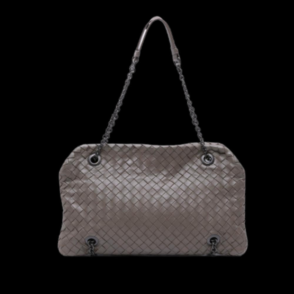 This shoulder bag features a woven leather body, chain link straps with leather guard, and open top with magnetic closures. It carries a B+ condition rating.Exterior Back Creased. Exterior Corners Worn. Exterior Front Creased. Interior Lining stained with Other. Practical Attachment Scratched. Dimensions:Length 30cmWidth 3cmHeight 18cmShoulder Drop 20cmOriginal Accessories: This item has no other original accessories.Serial Number: B007711540Color: Brown x TaupeMaterial: Leather x Nappa Leather