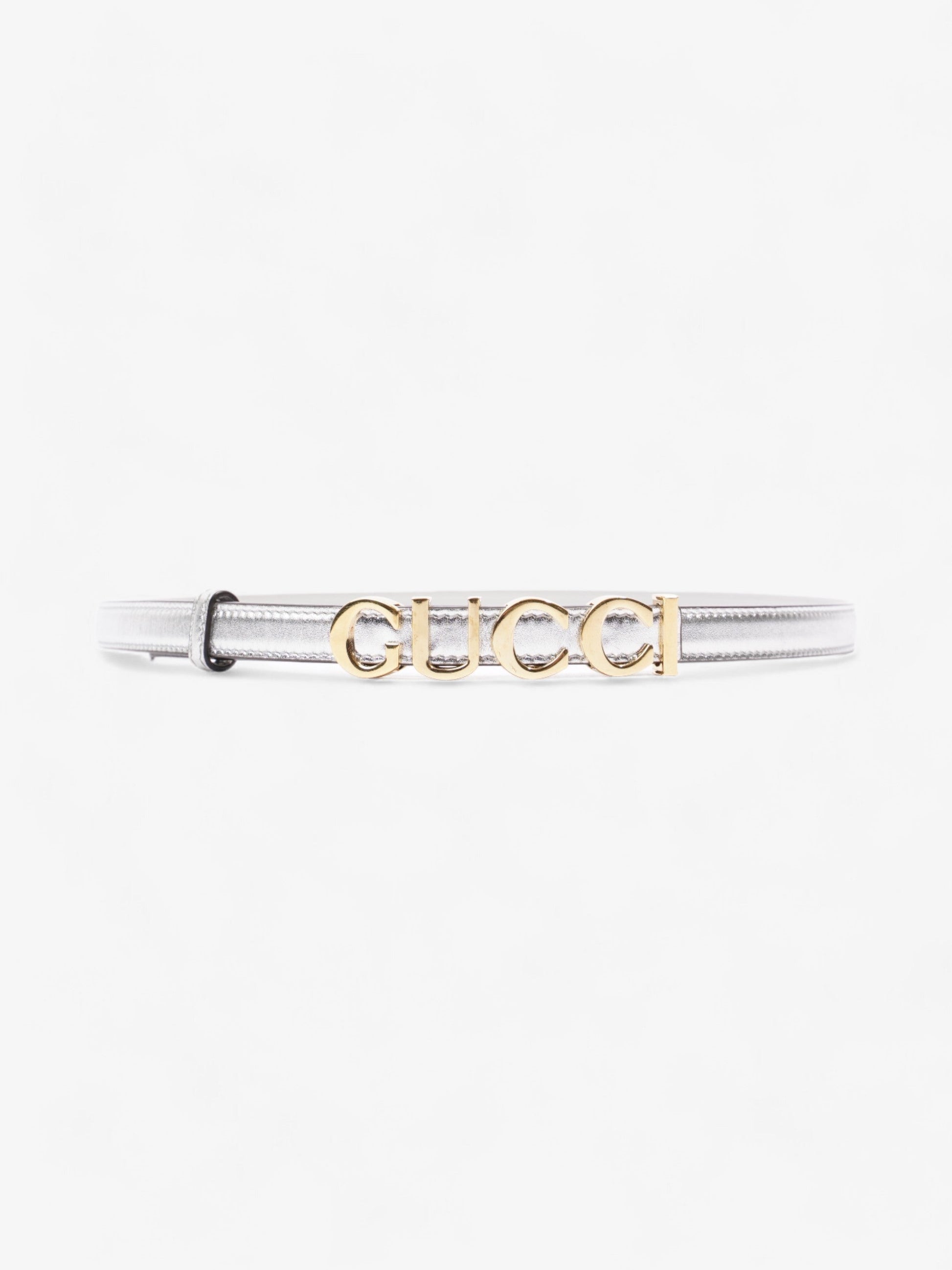 Gucci Buckle Thin Belt Silver Leather 85cm / 34"