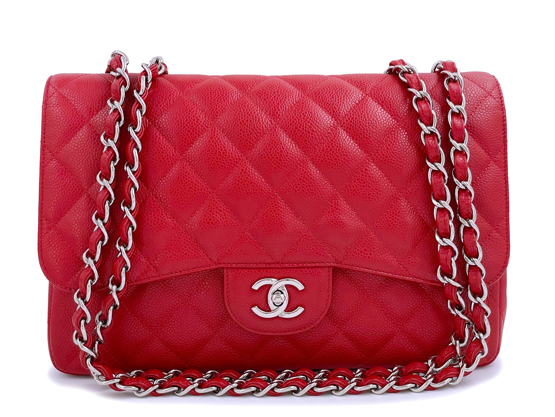 Chanel 10C Red Caviar Jumbo Classic Flap Bag SHW Single