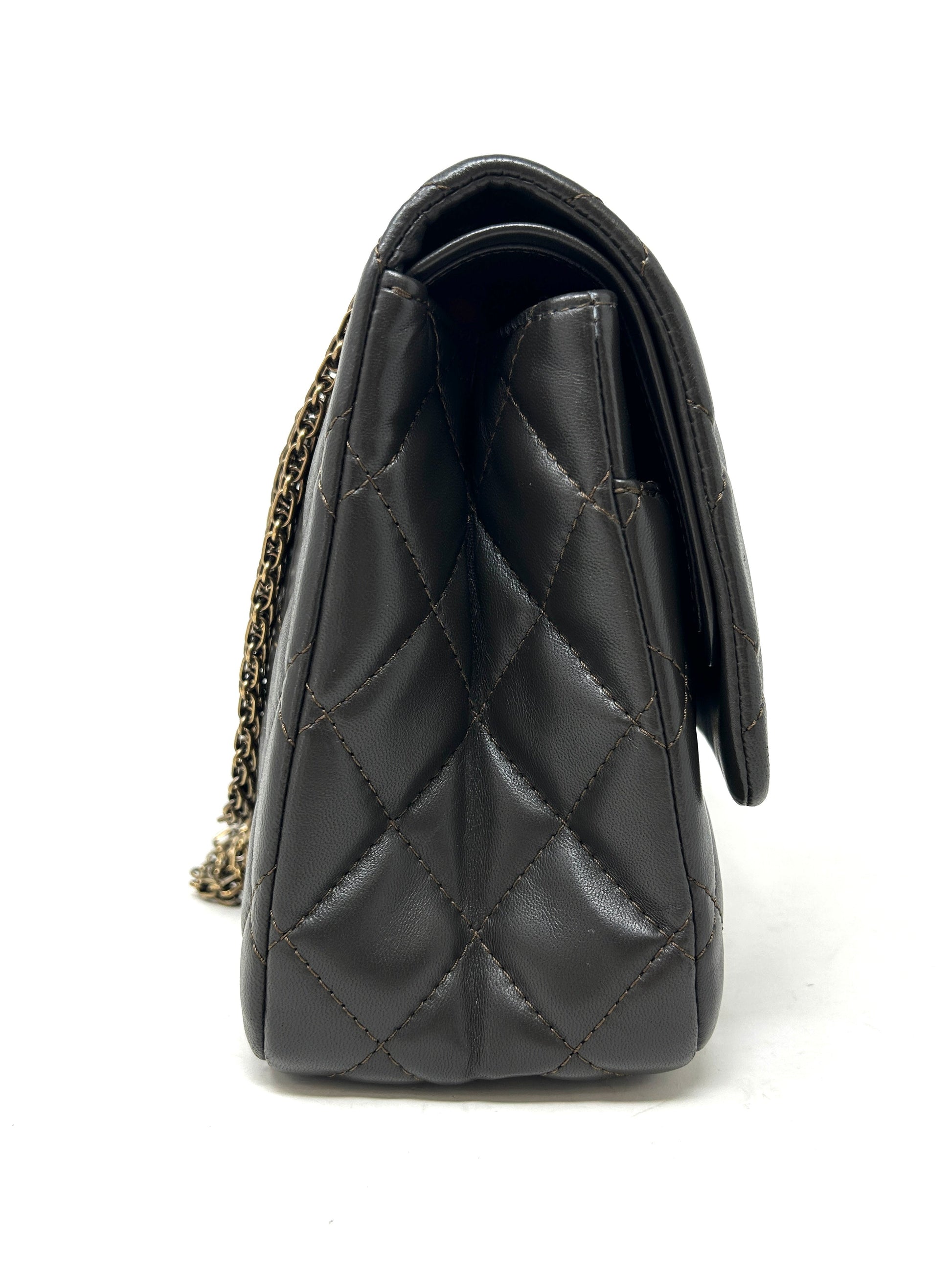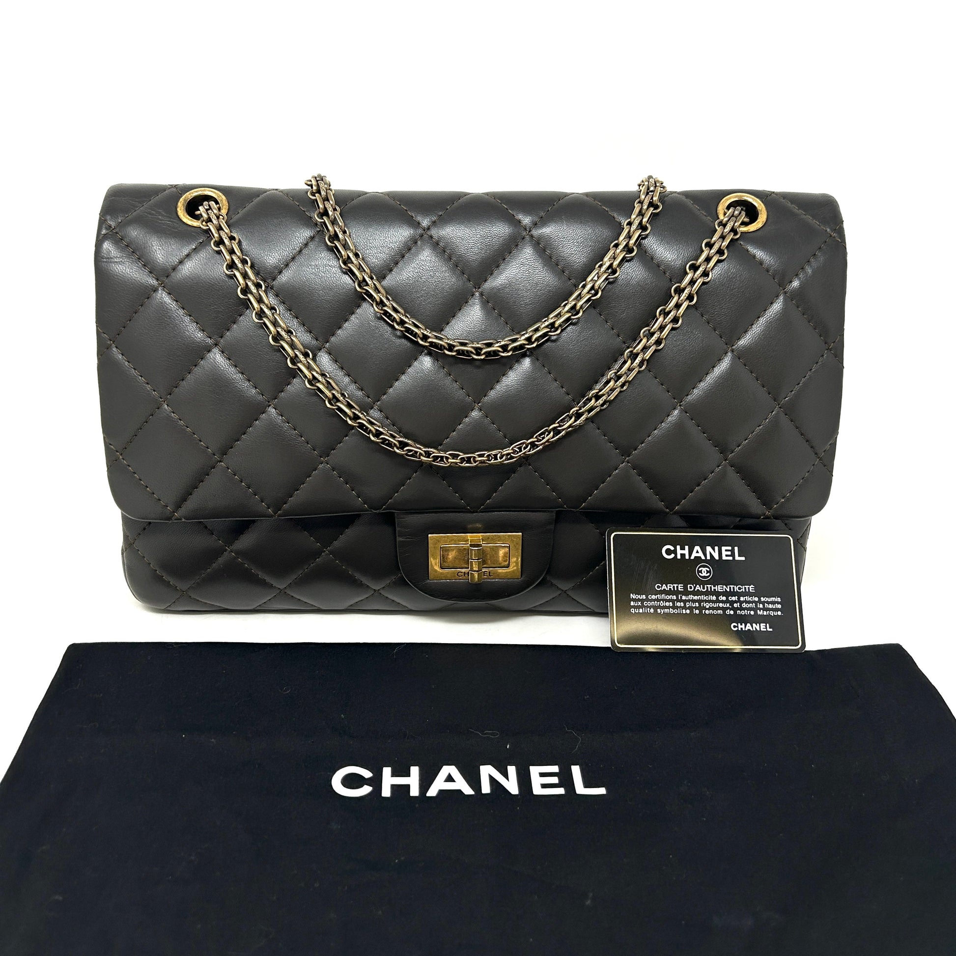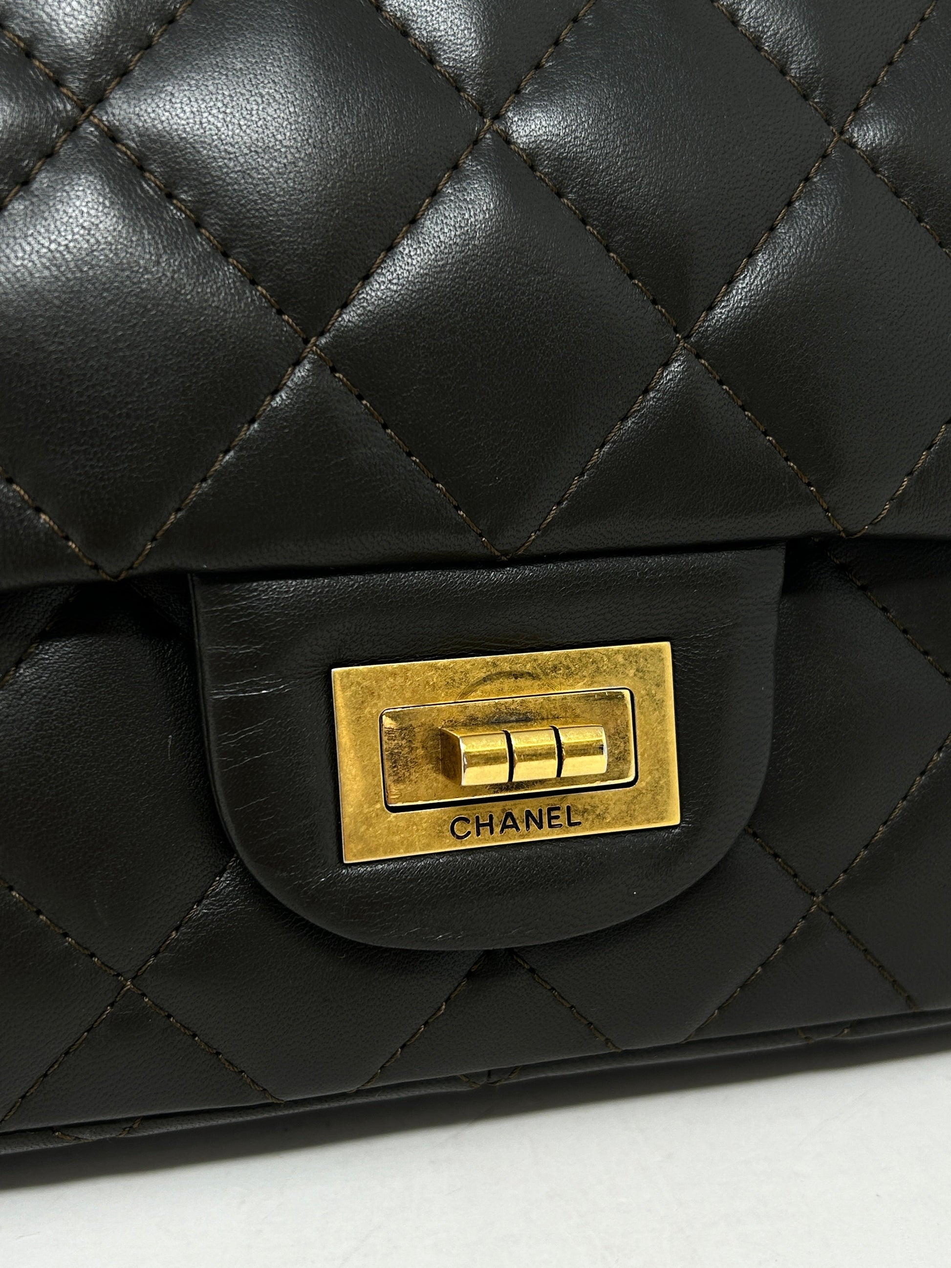 Chanel Reissue 2.55 Maxi Dark Khaki Quilted Leather Antique Gold Flap Shoulder Bag