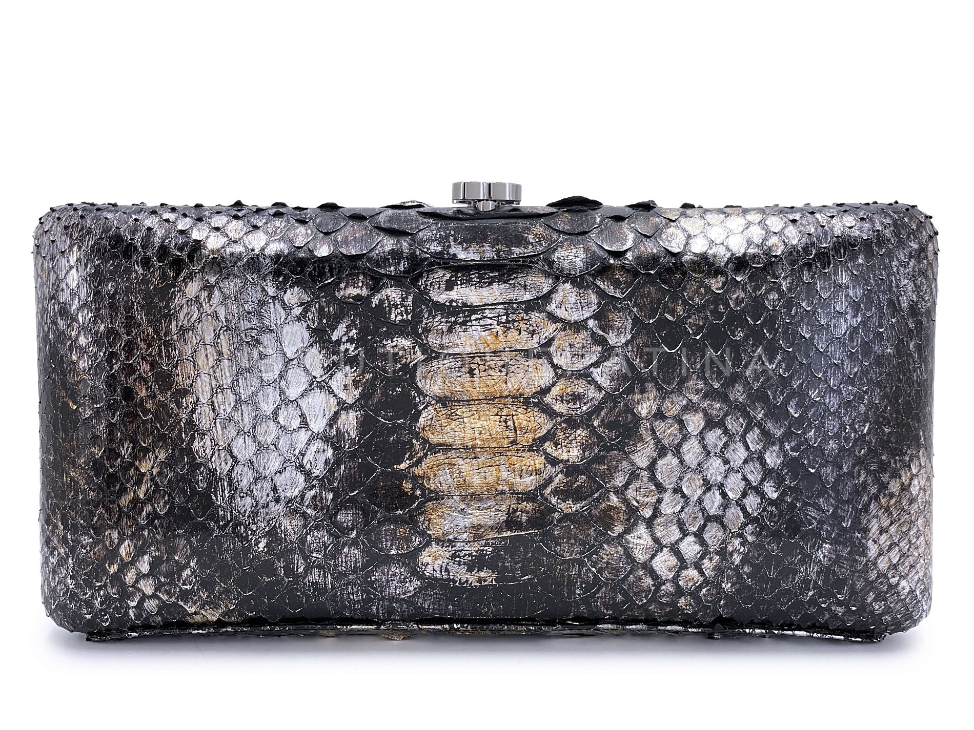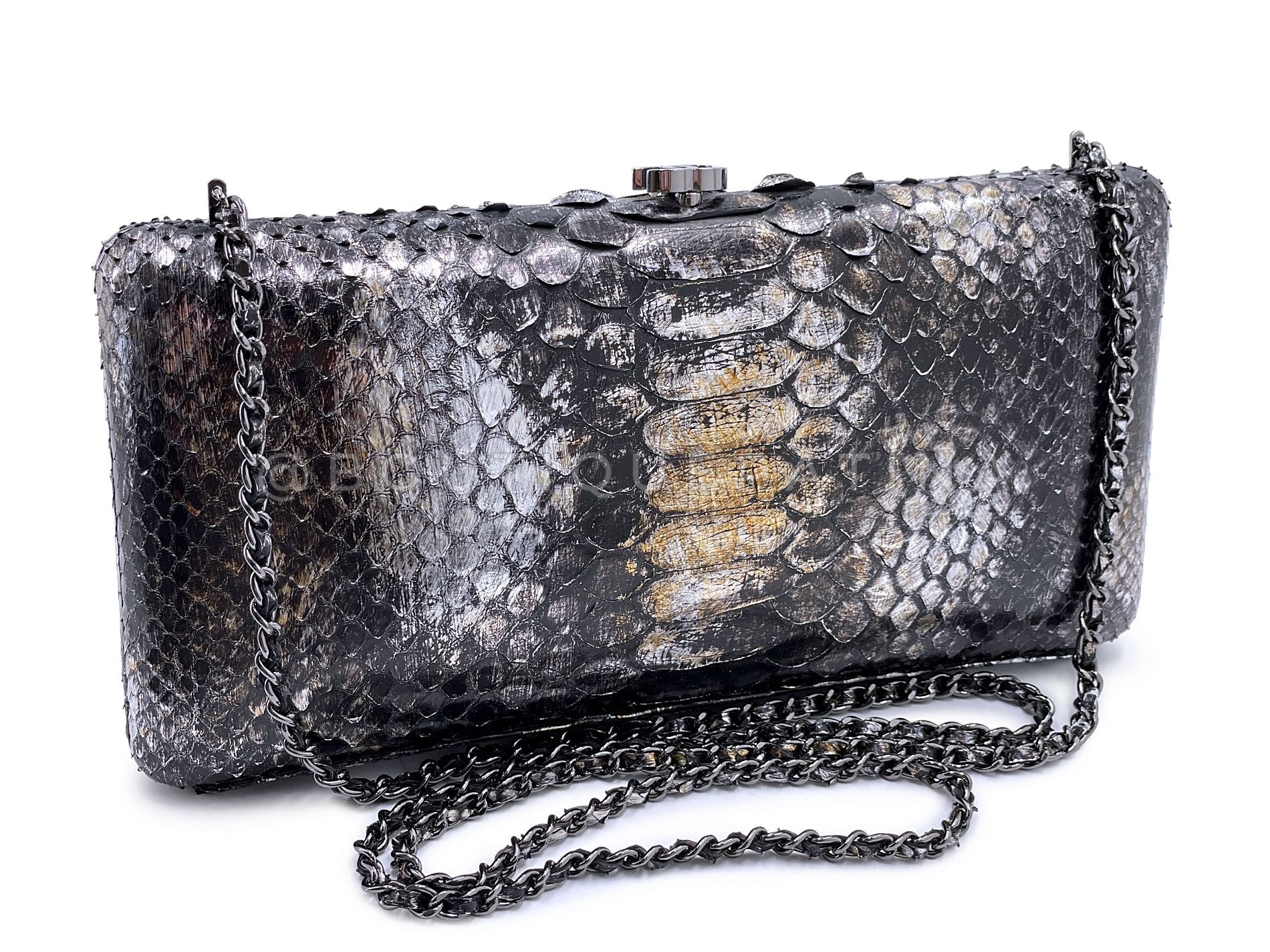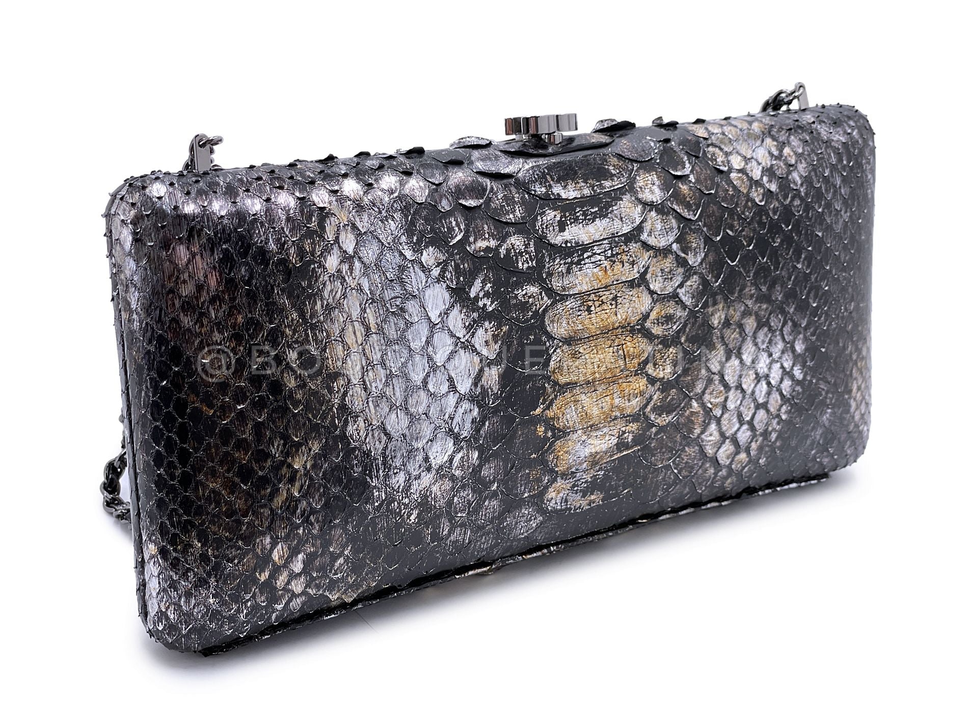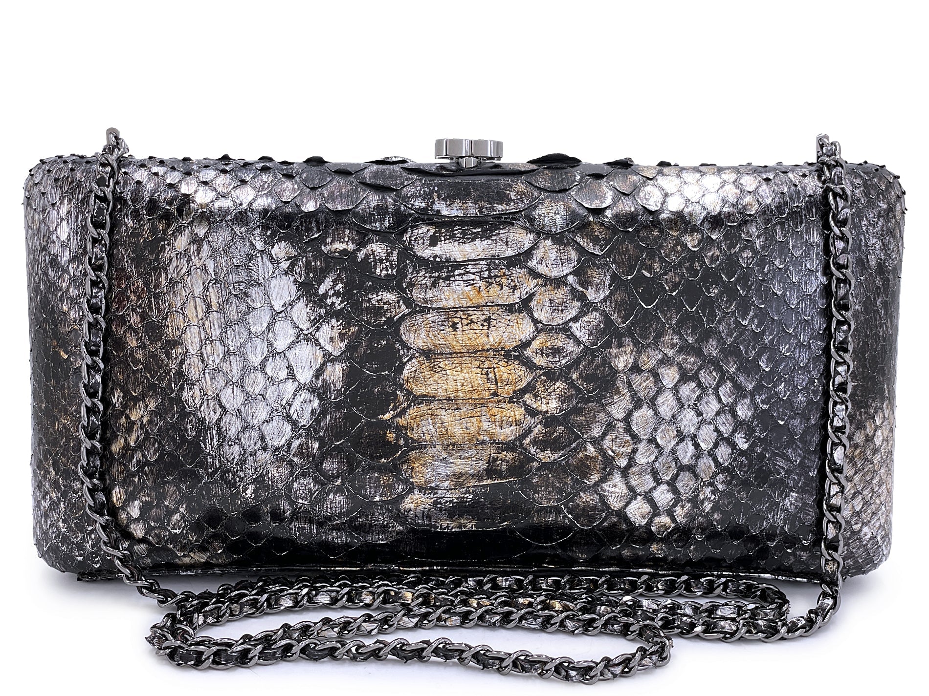 Chanel 13A Paris-Edinburgh Dark Silver Ombre Python Clutch on Chain Evening Bag U75