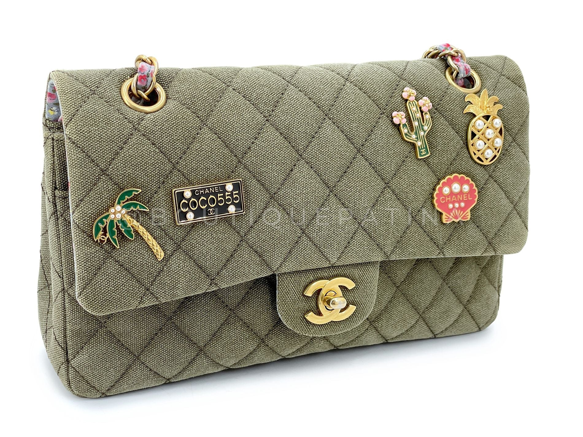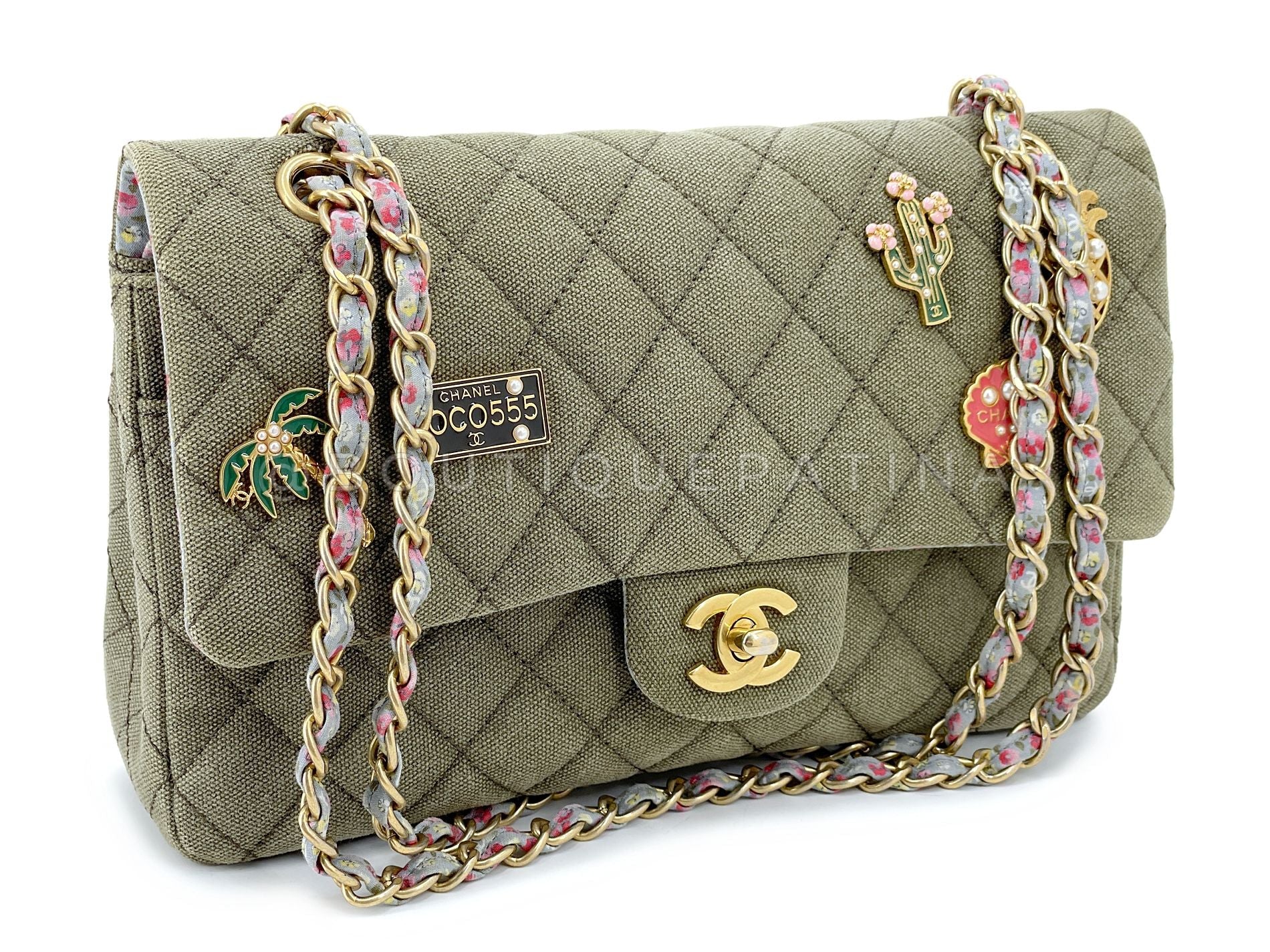 Chanel 17C Coco Cuba Khaki Medium Classic Double Flap Bag GHW CPX