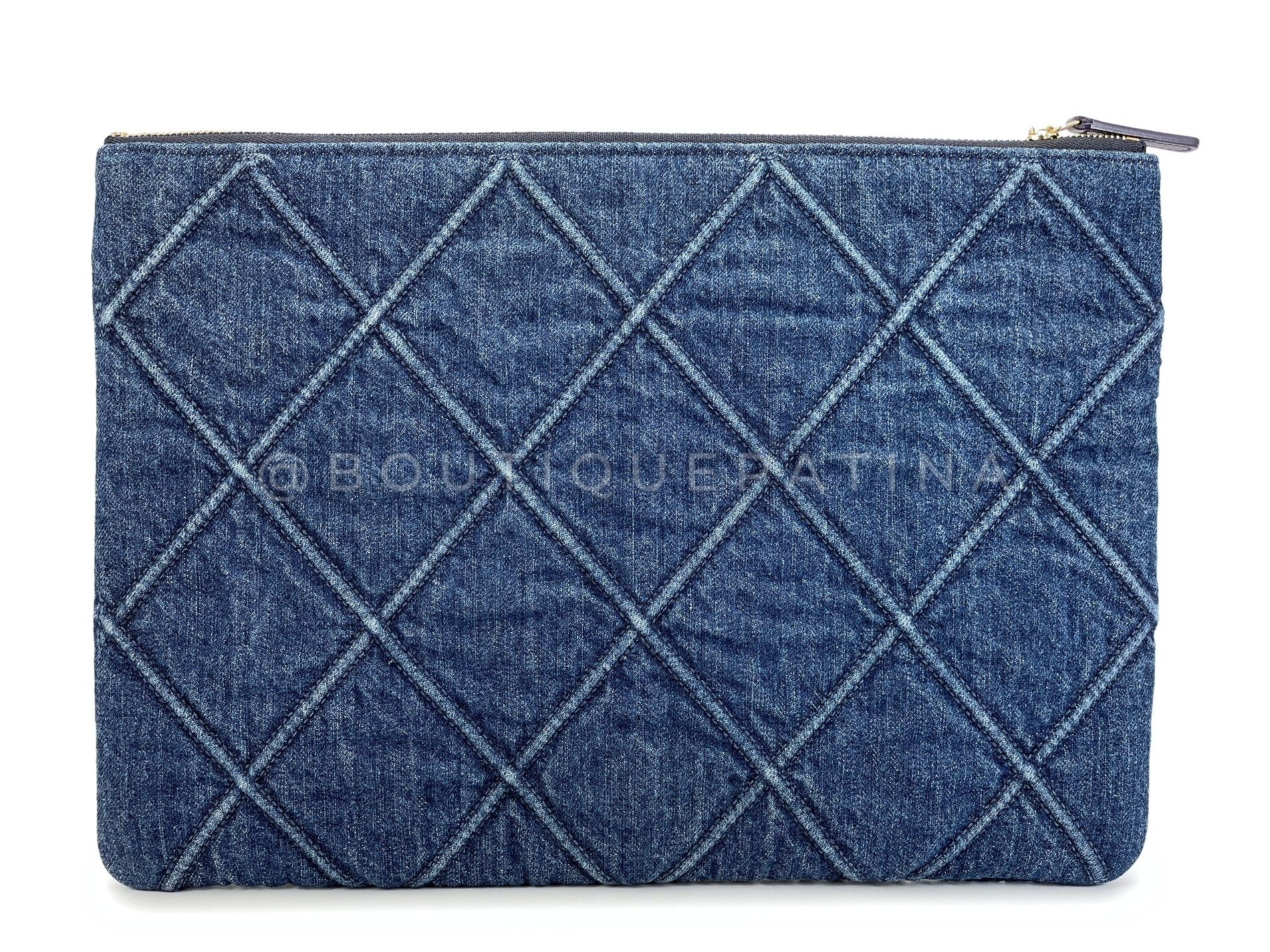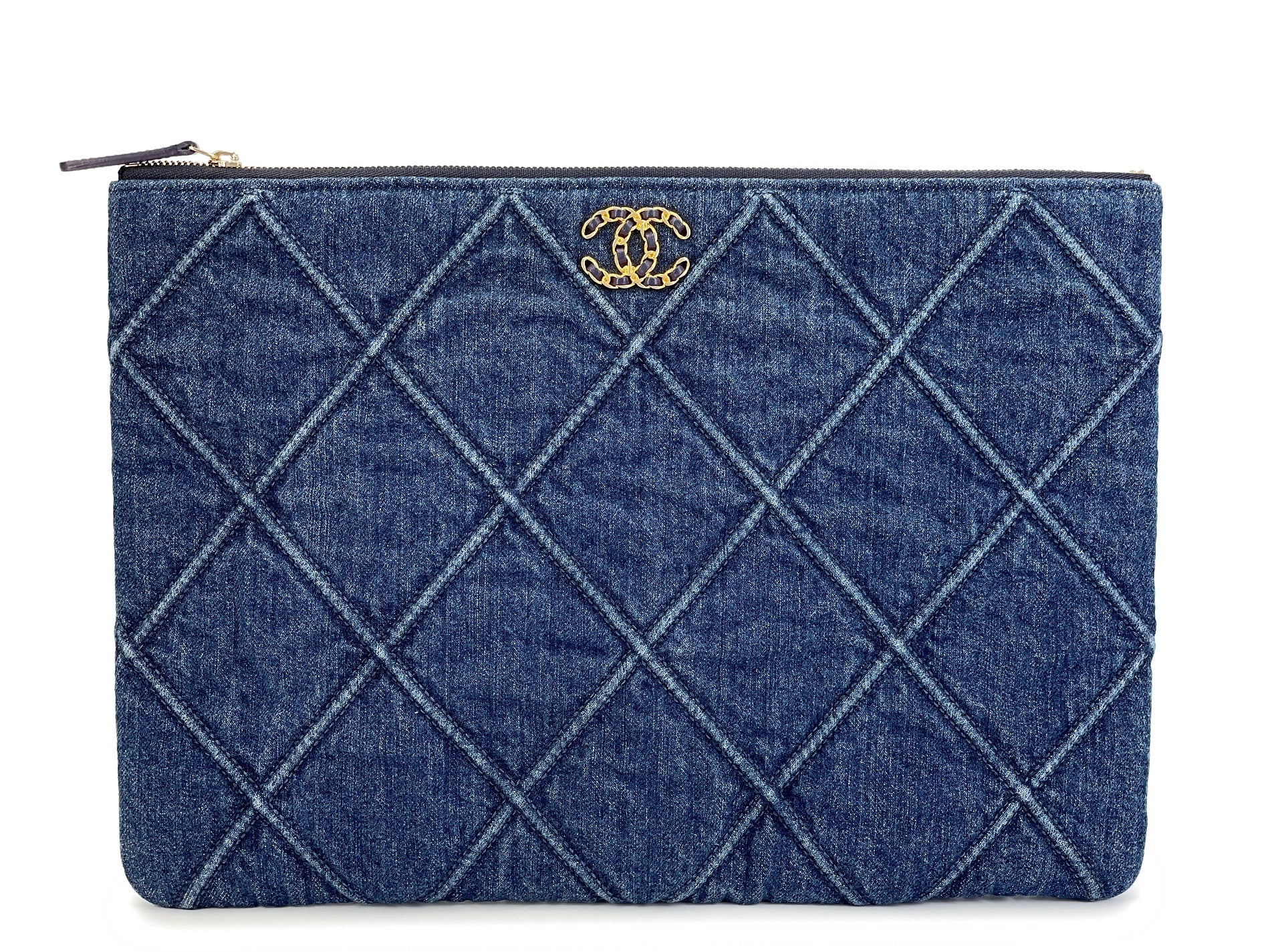 Chanel 19 Blue Denim Large O Case Clutch Bag GHW 6EX