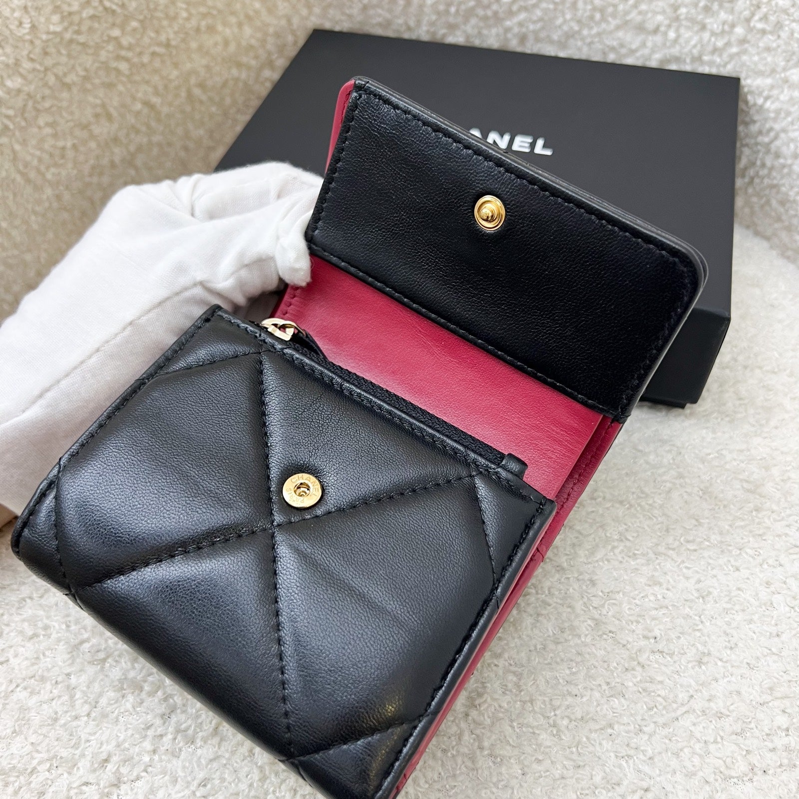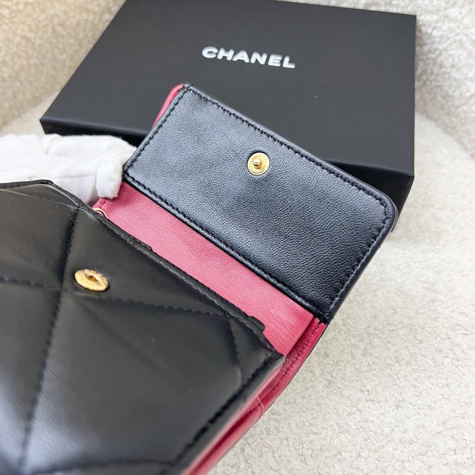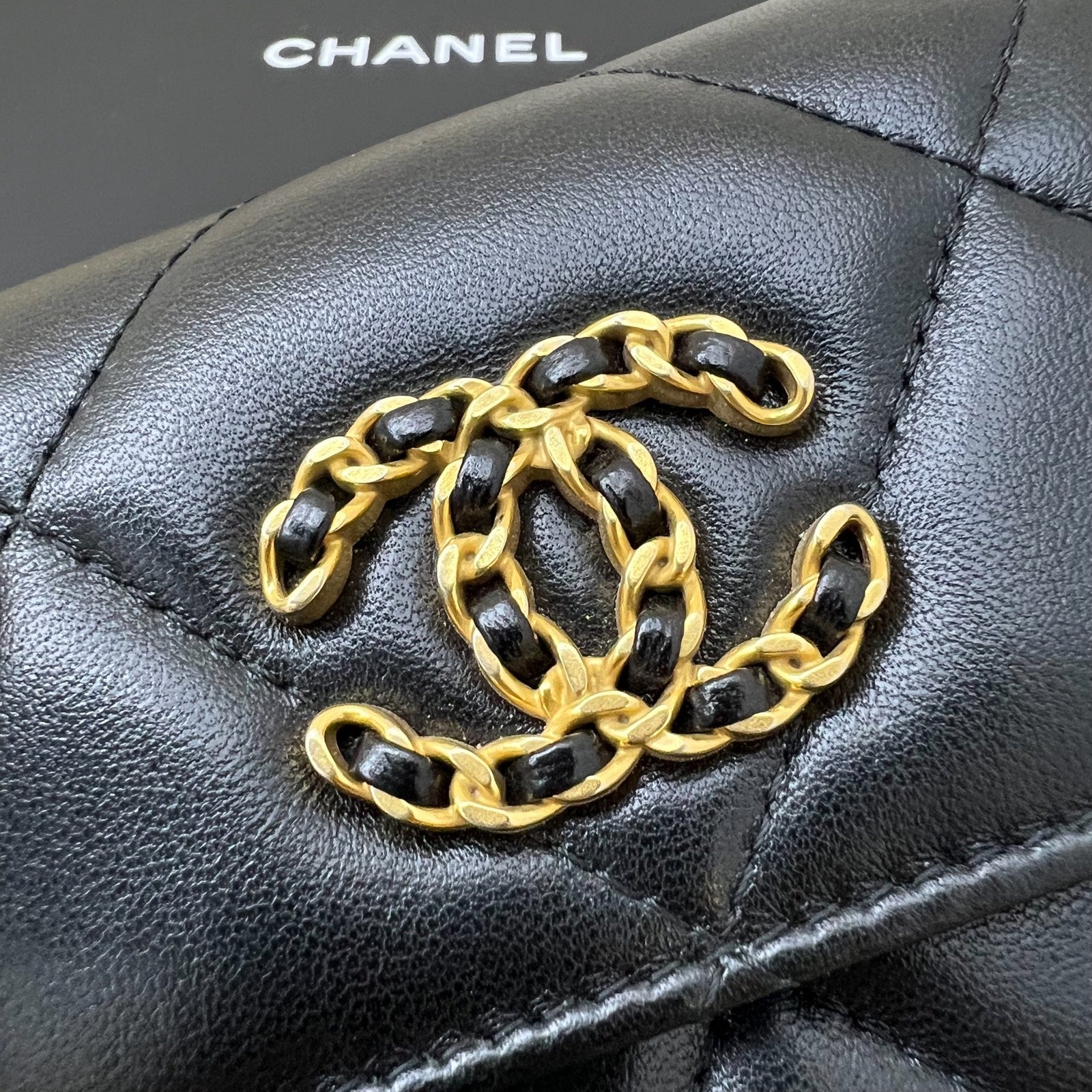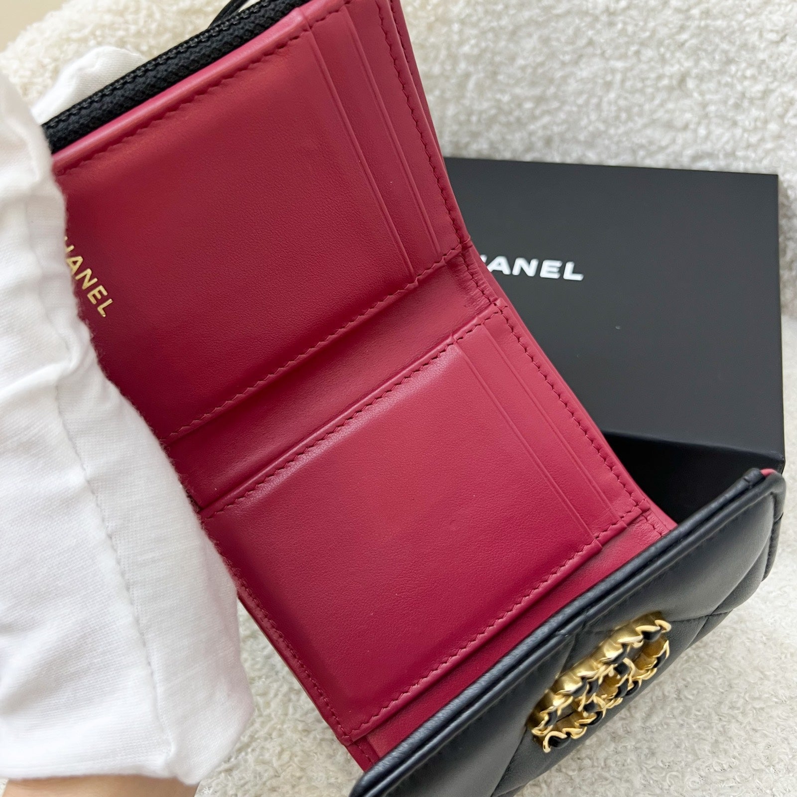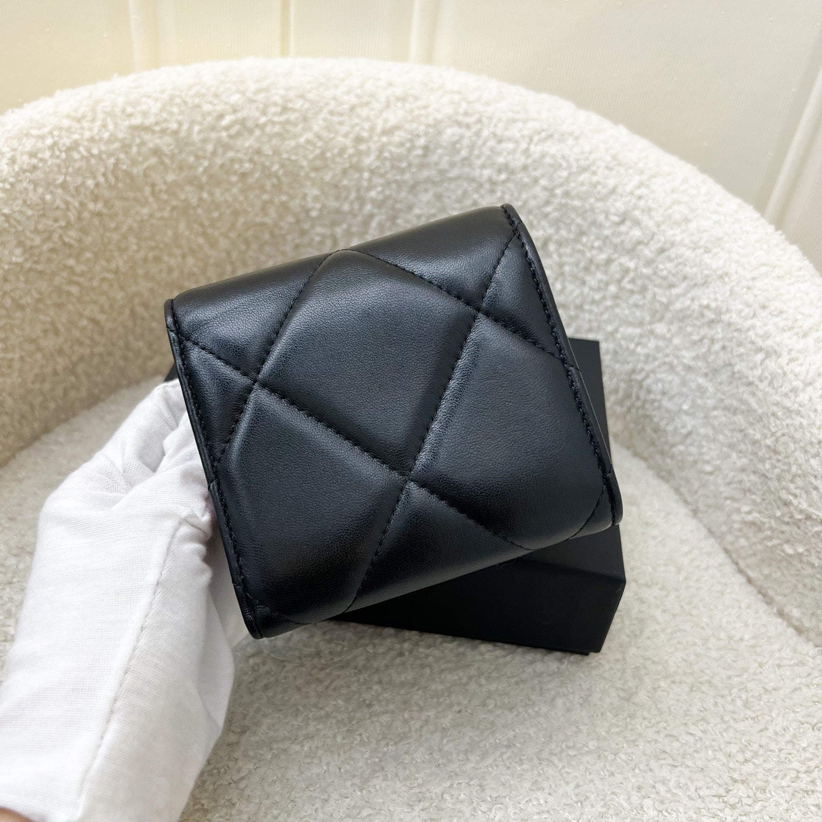 Chanel 19 Compact Trifold Wallet in Black Lambskin and AGHW