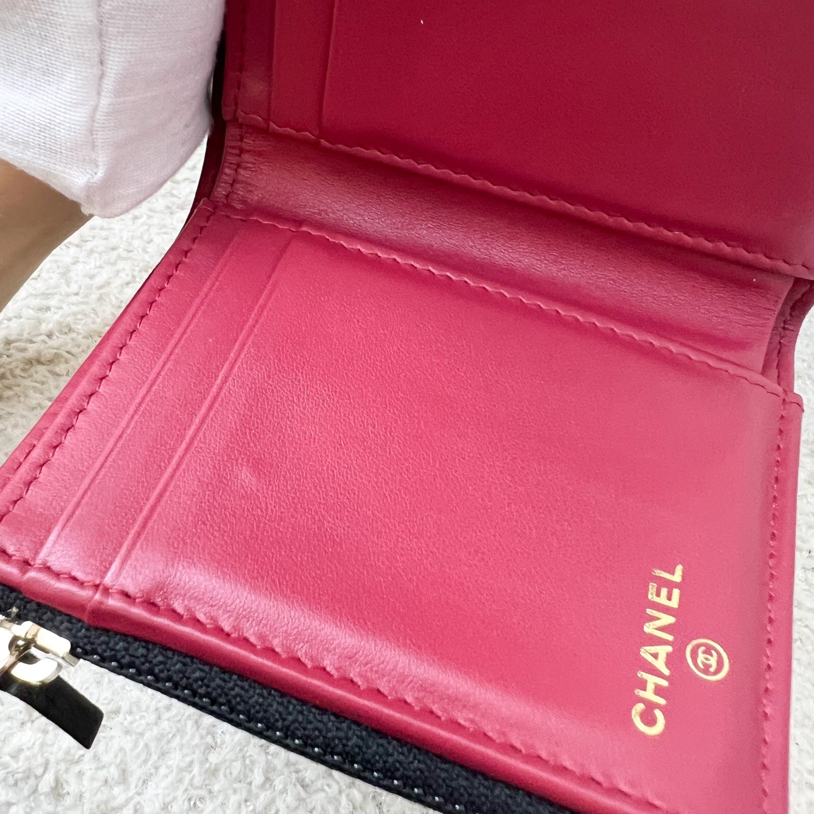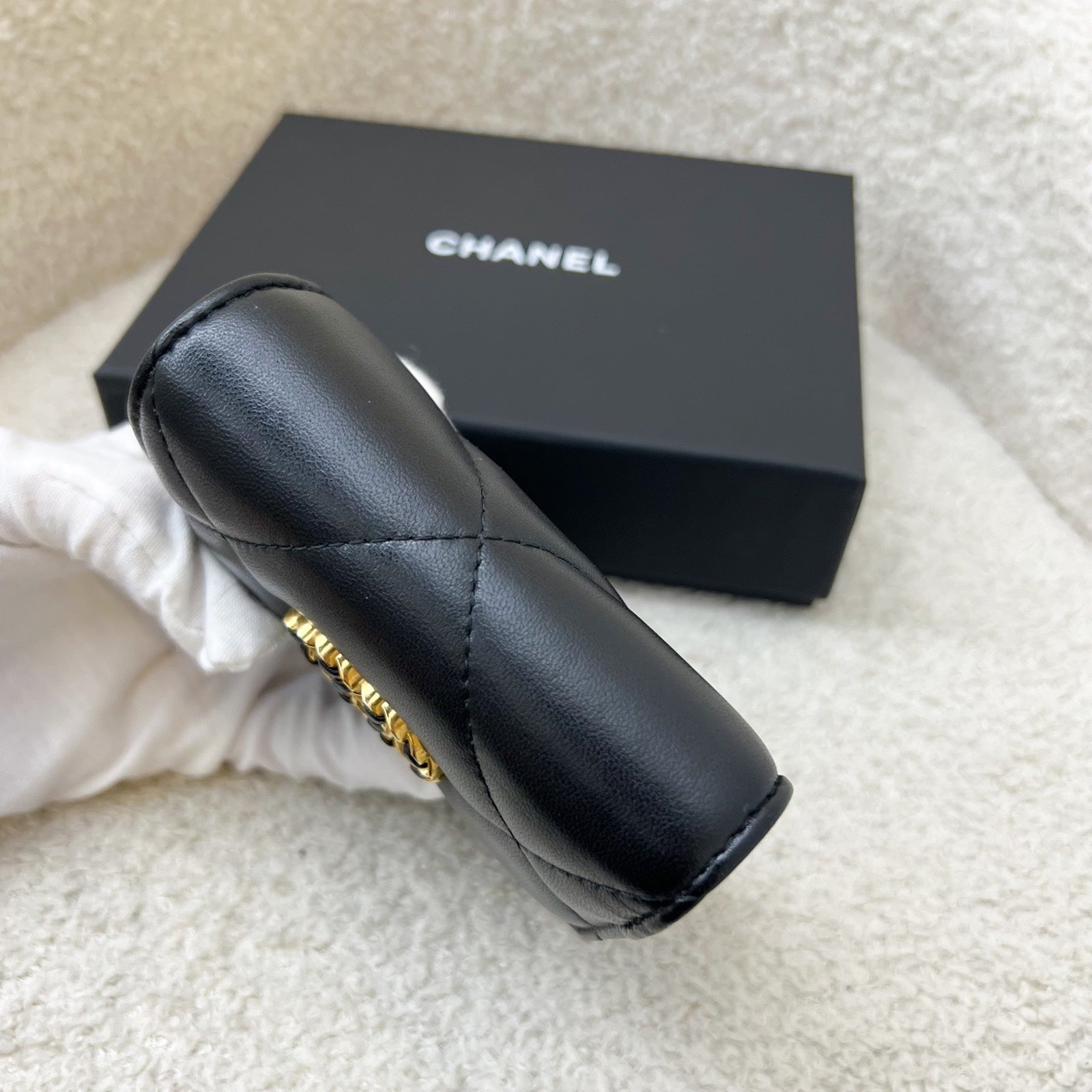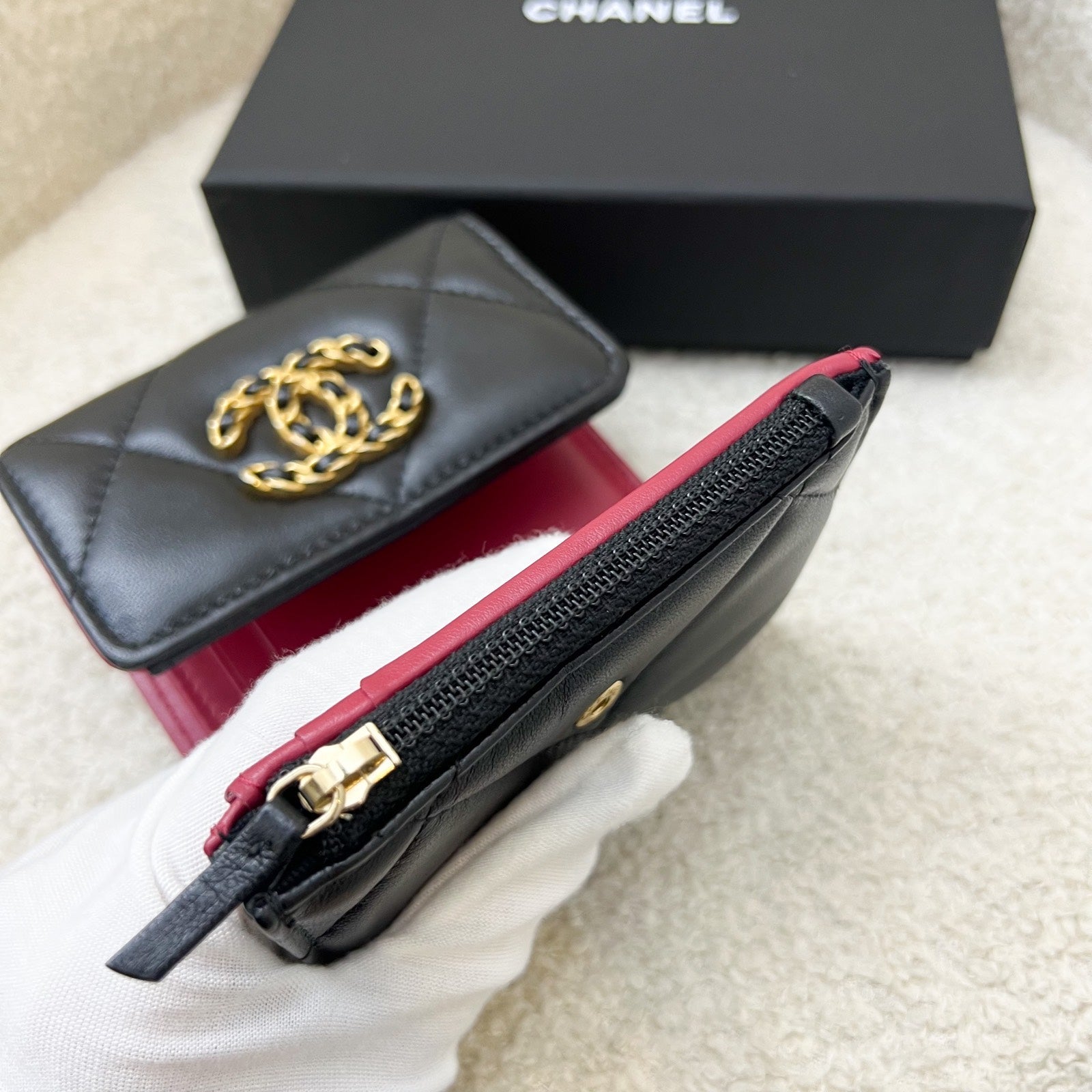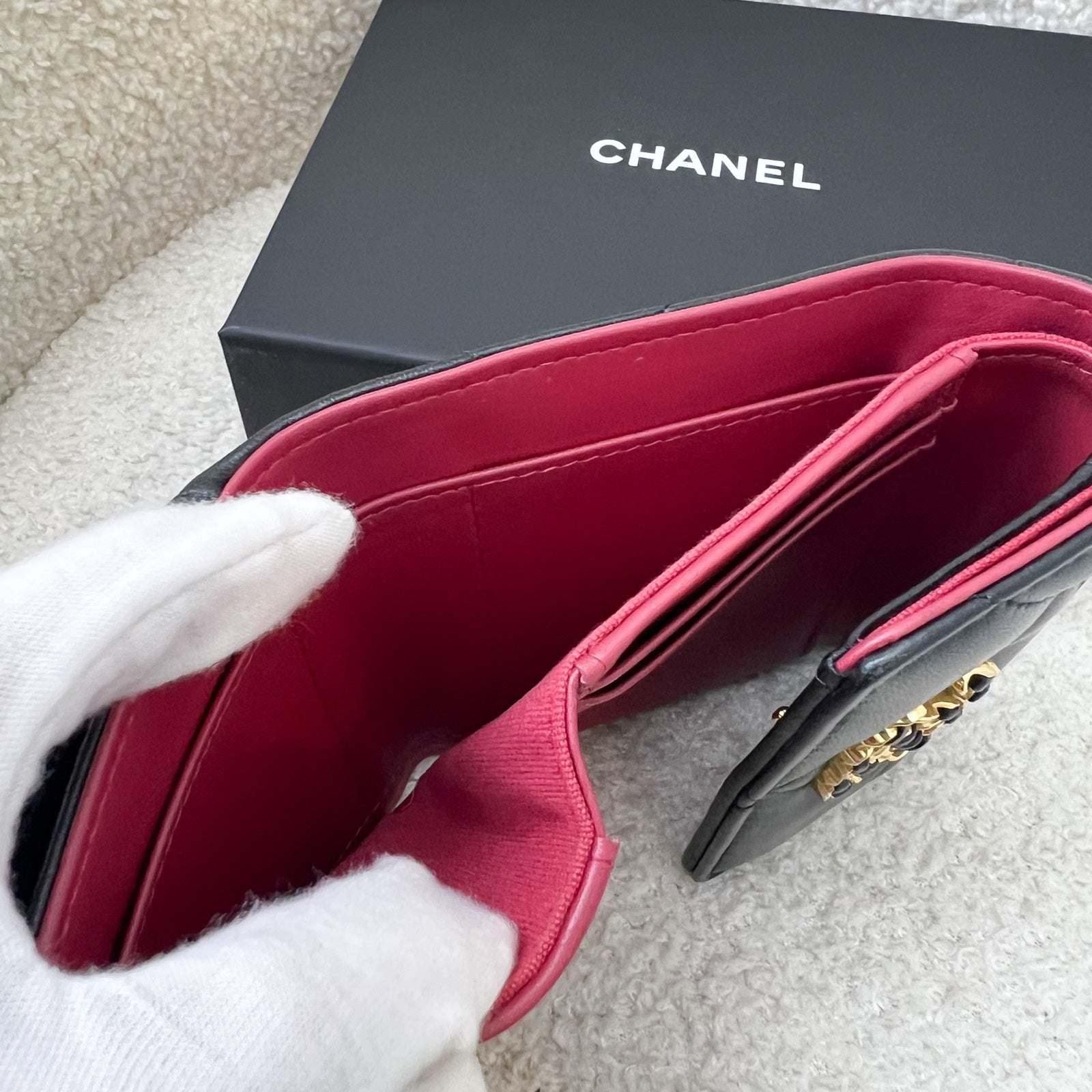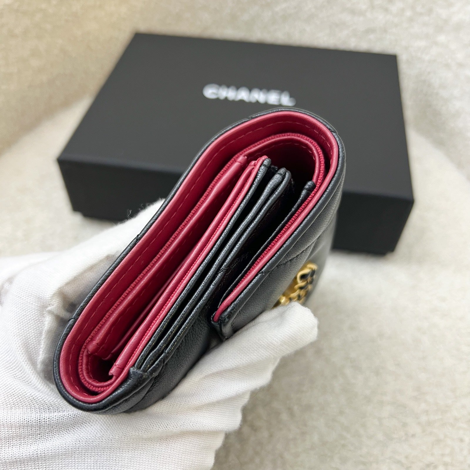 Chanel 19 Compact Trifold Wallet in Black Lambskin and AGHW