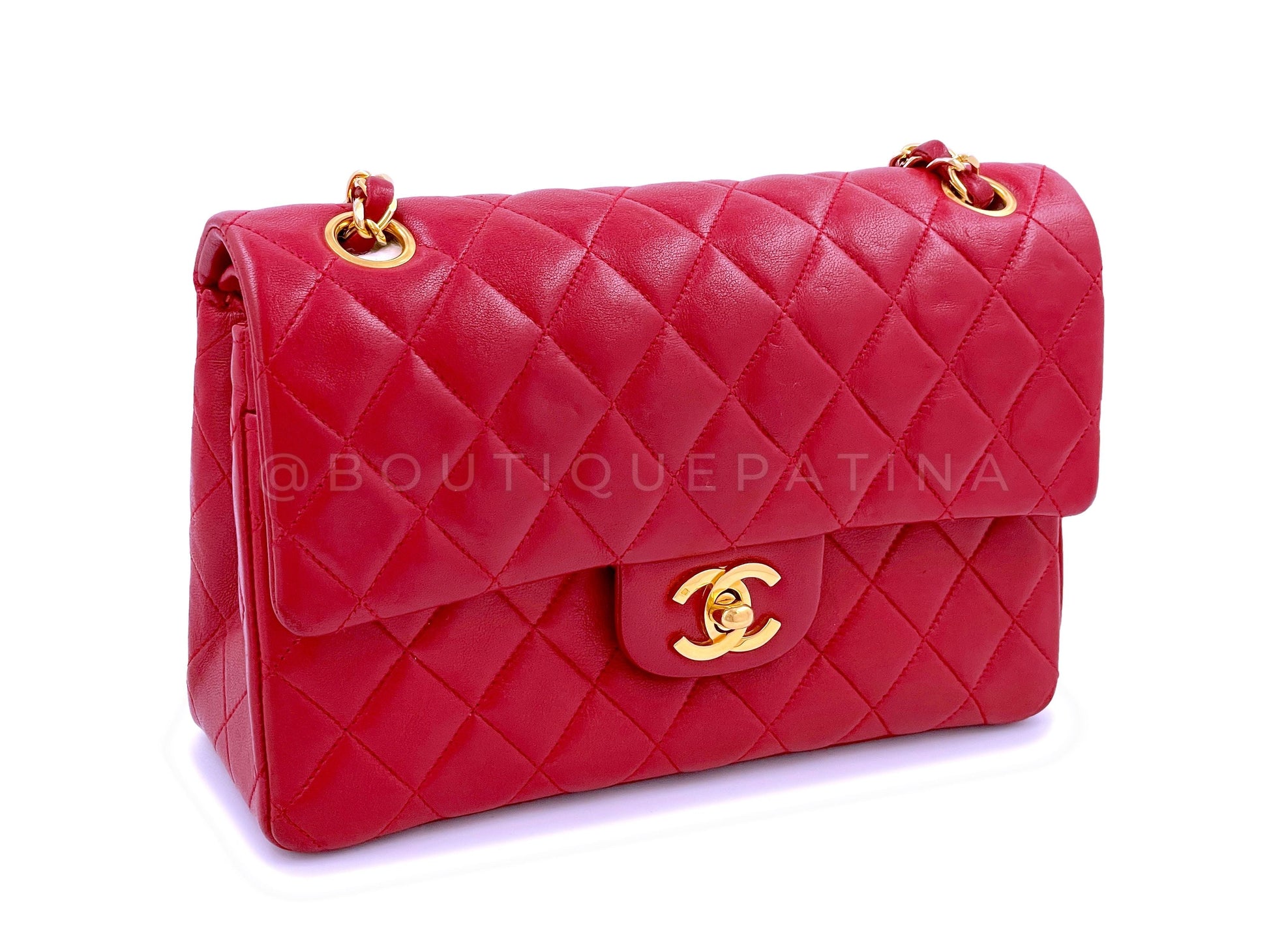 Chanel 1987 Vintage Red Small Classic Double Flap Bag 24k GHW