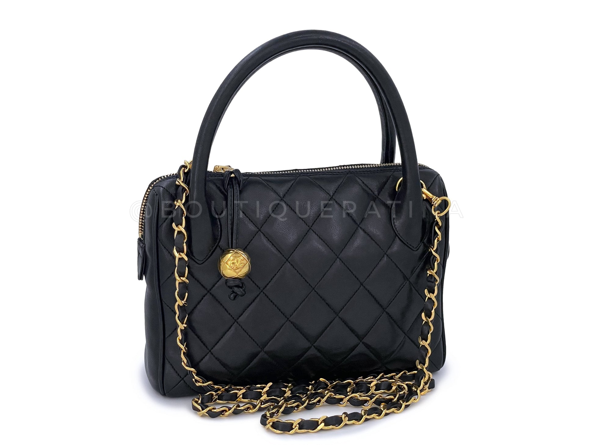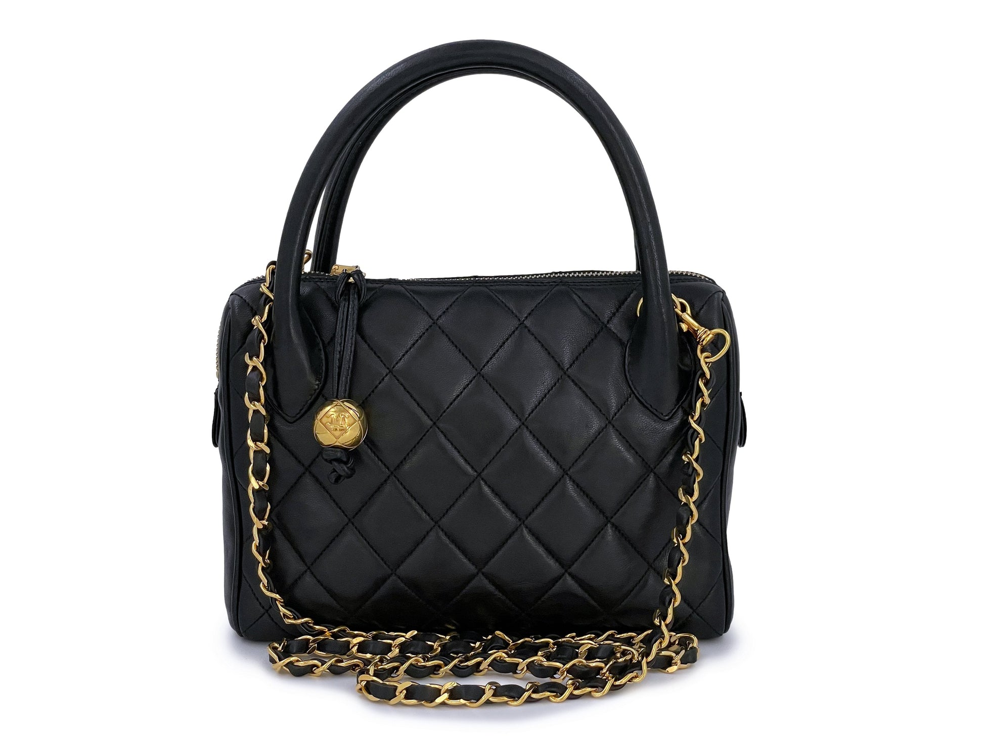 Chanel 1988 Vintage Black Lambskin Small Crossbody Handle Bag 24k GHW