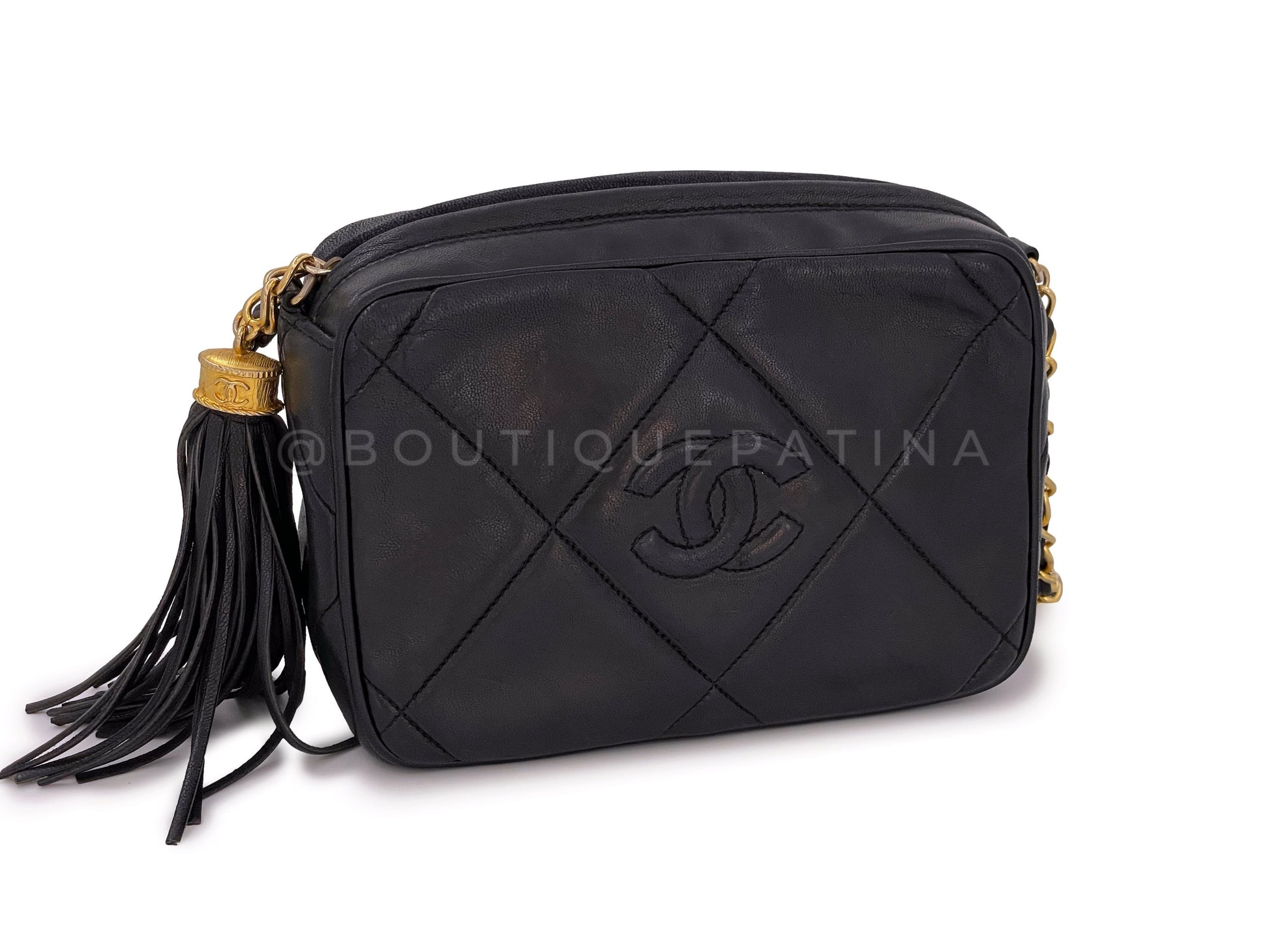Chanel 1988 Vintage Black Mini Classic Camera Case Bag 24k GHW Lambskin