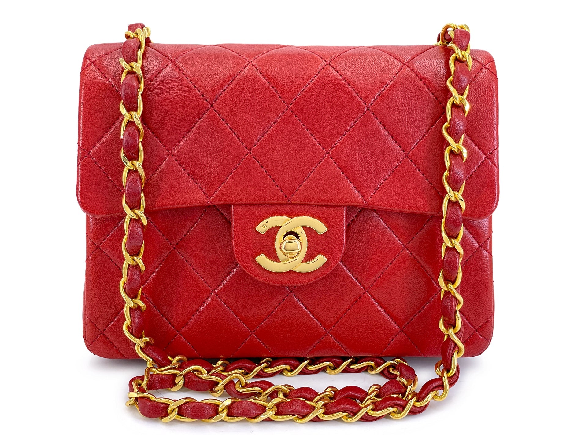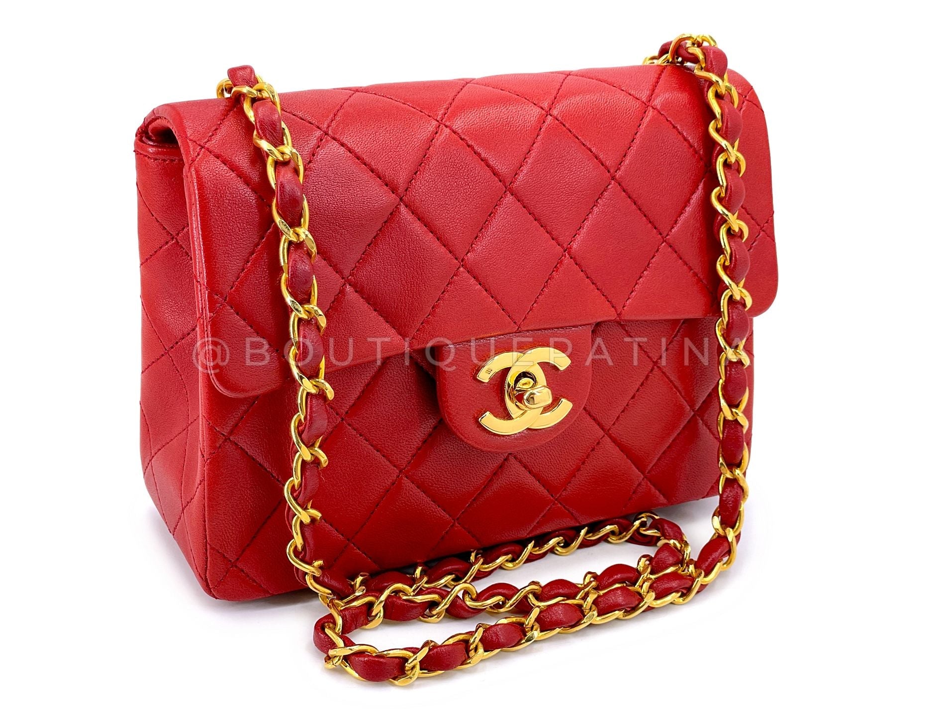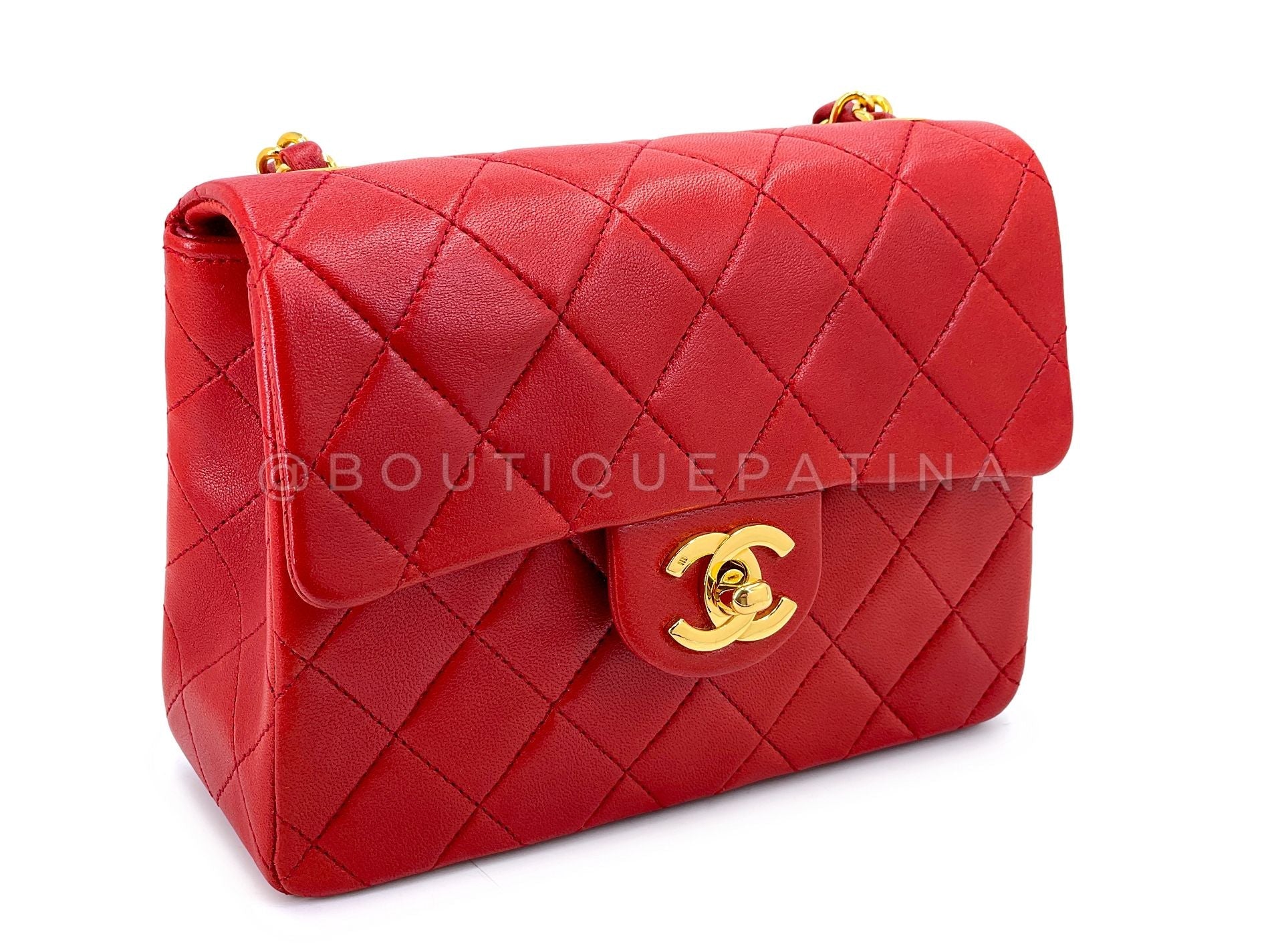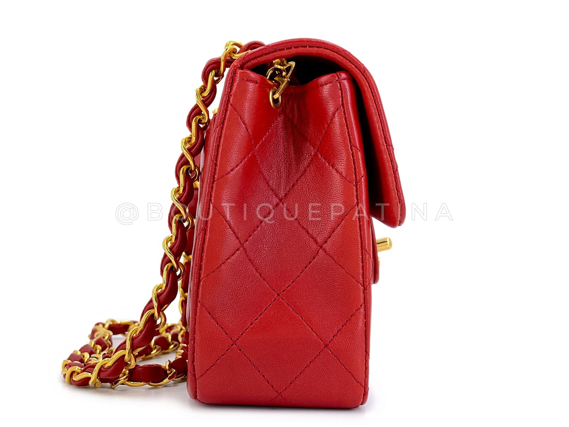 Chanel 1988 Vintage Red Square Mini Flap Bag 24k GHW Lambskin Y0F