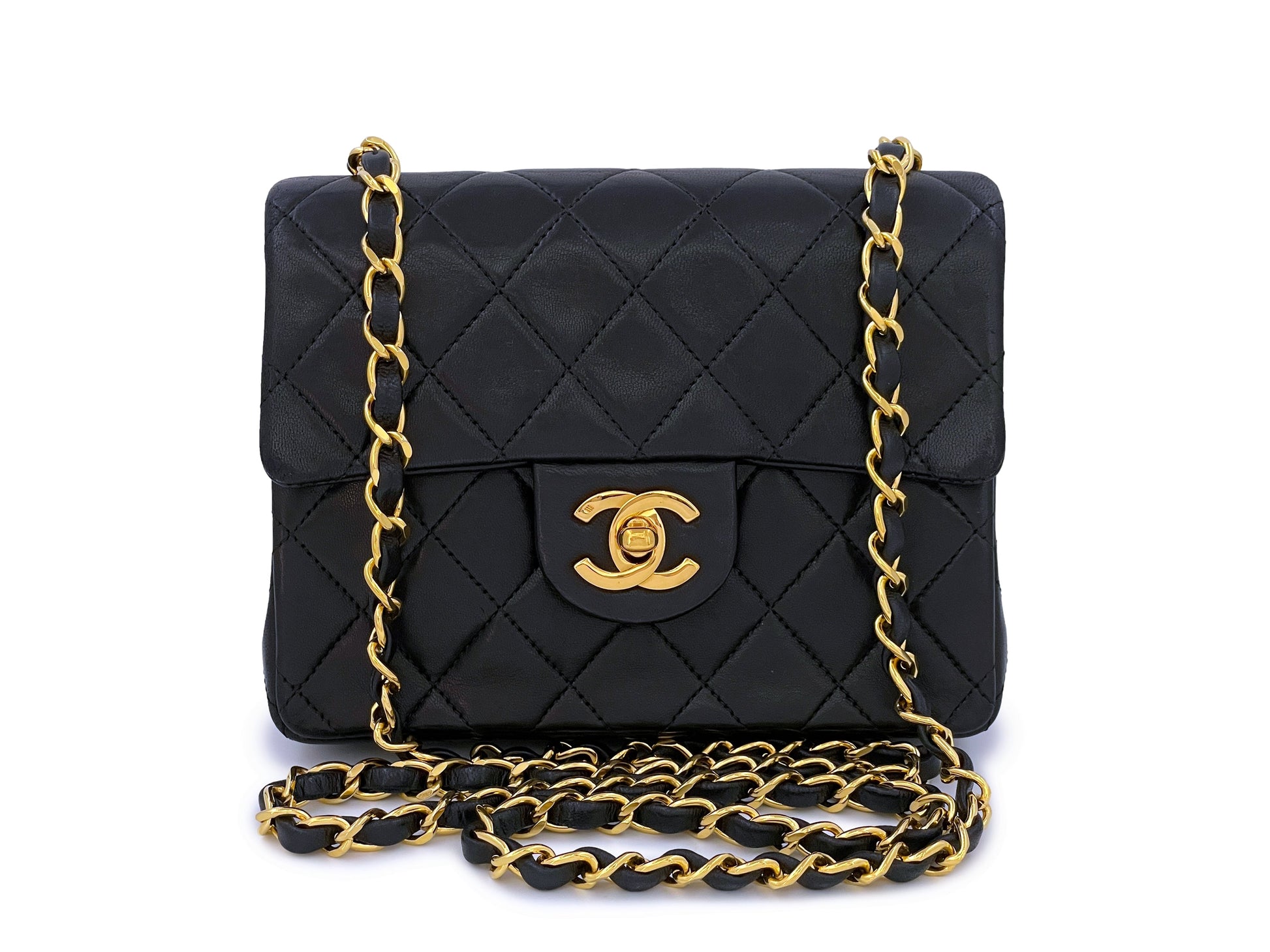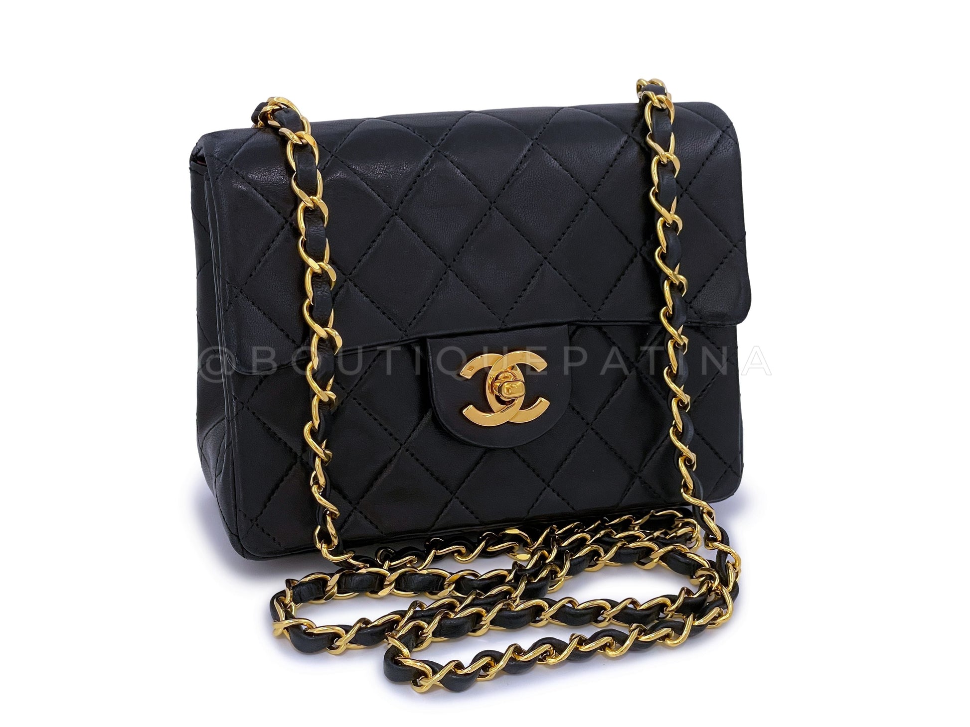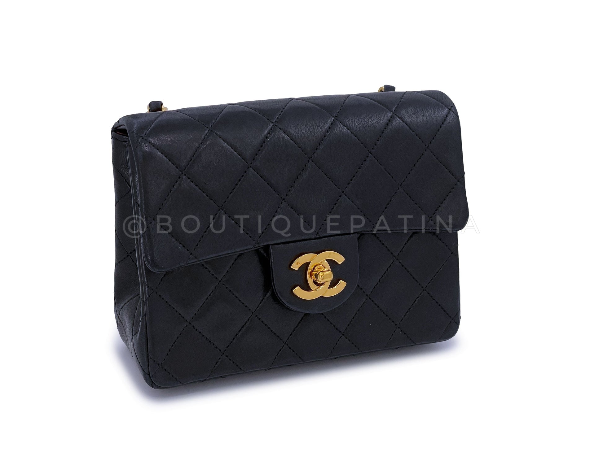 Chanel 1989 Vintage Black Square Mini Flap Bag 24k GHW Lambskin