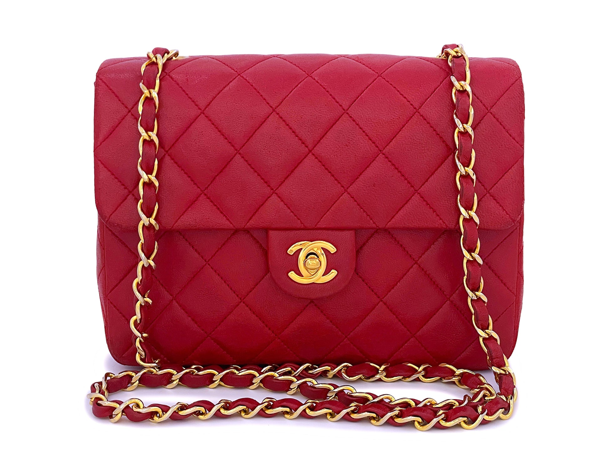 Chanel 1989 Vintage Red 20cm Mini Classic Flap Bag 24k GHW